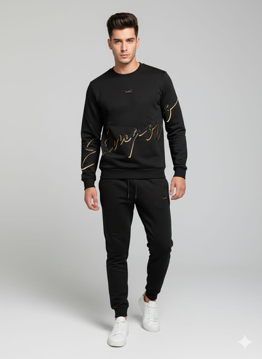 • חליפת טרנינג בצבע שחור עם רקמה זהב שחור זה של EMPORIO VALENTINI