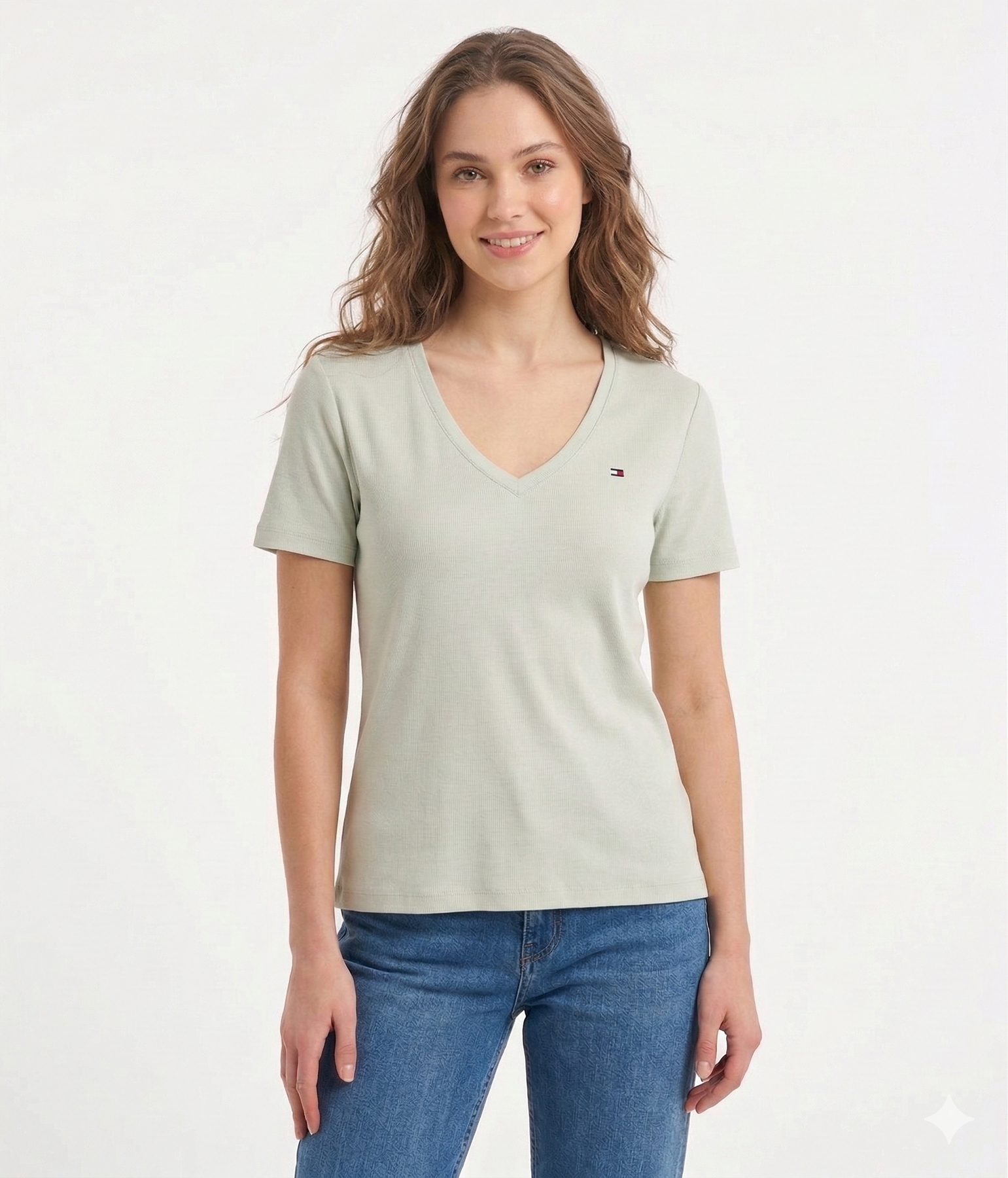 גלה את הטישרט לנשים קצרה בגזרת וי החדשה שלנו, חלק בלתי נפרד מהקולקציה המיוחדת של העונה. עם עיצוב אלגנטי ונעים, הטישרט הזו מתאימה לכל אירוע, החל מהמפגשים היומיומיים ועד ליציאות בערב.