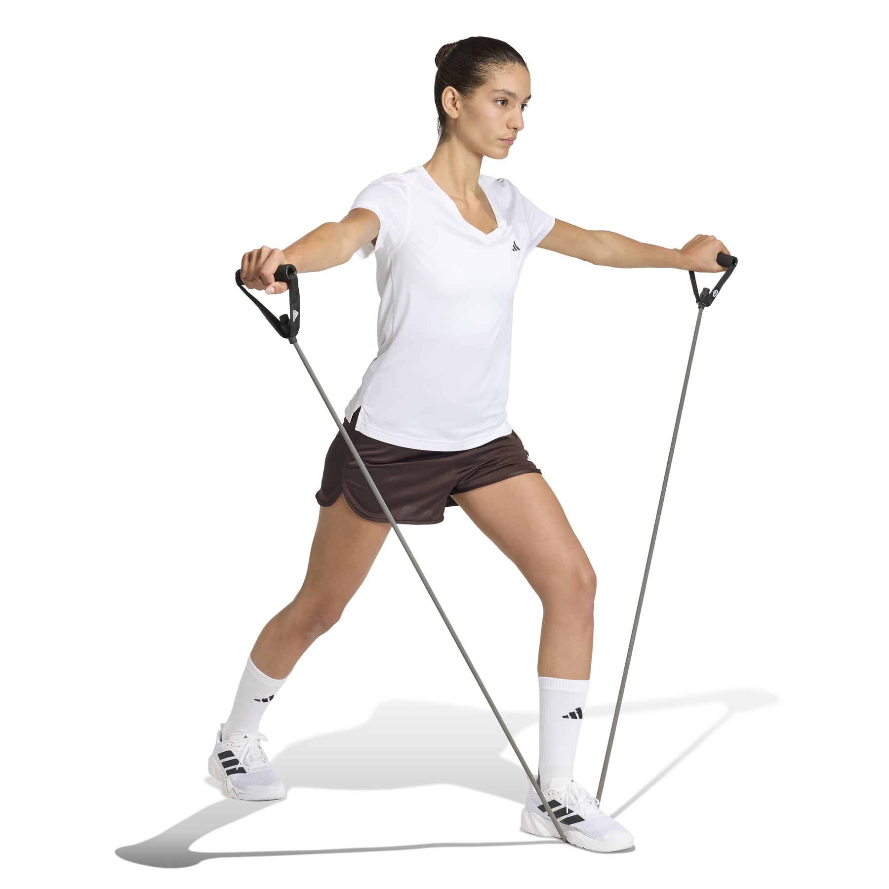 טי שרט וי Workout Essentials -לבן