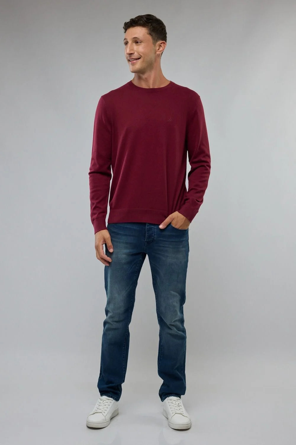 סוודר איכותי לגברים עם צווארון עגול, מעוצב בסגנון נקי ועדין.