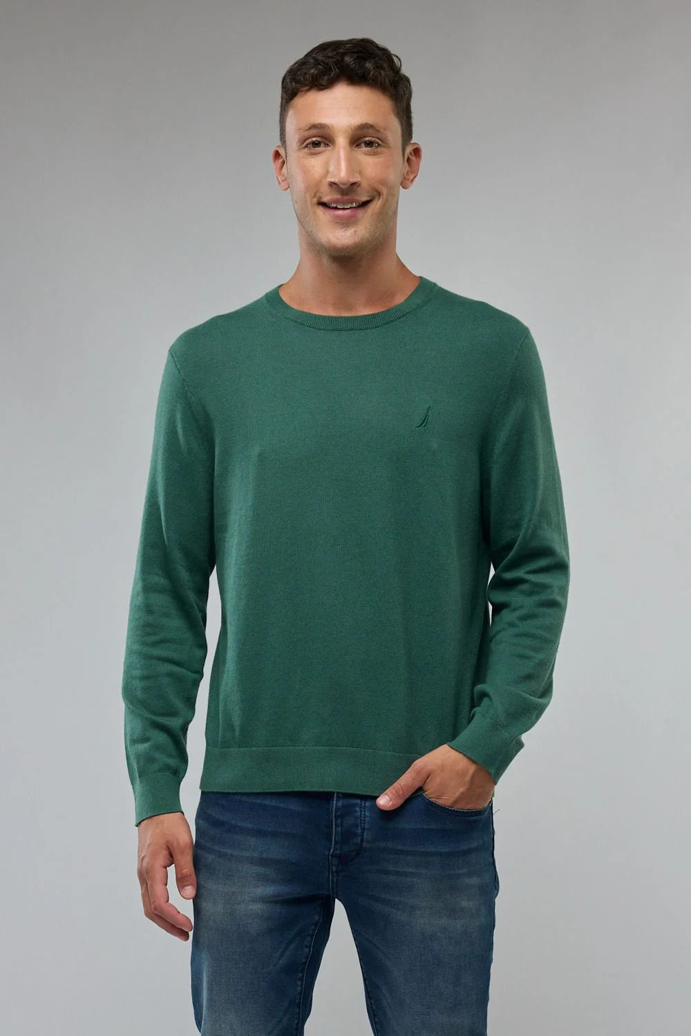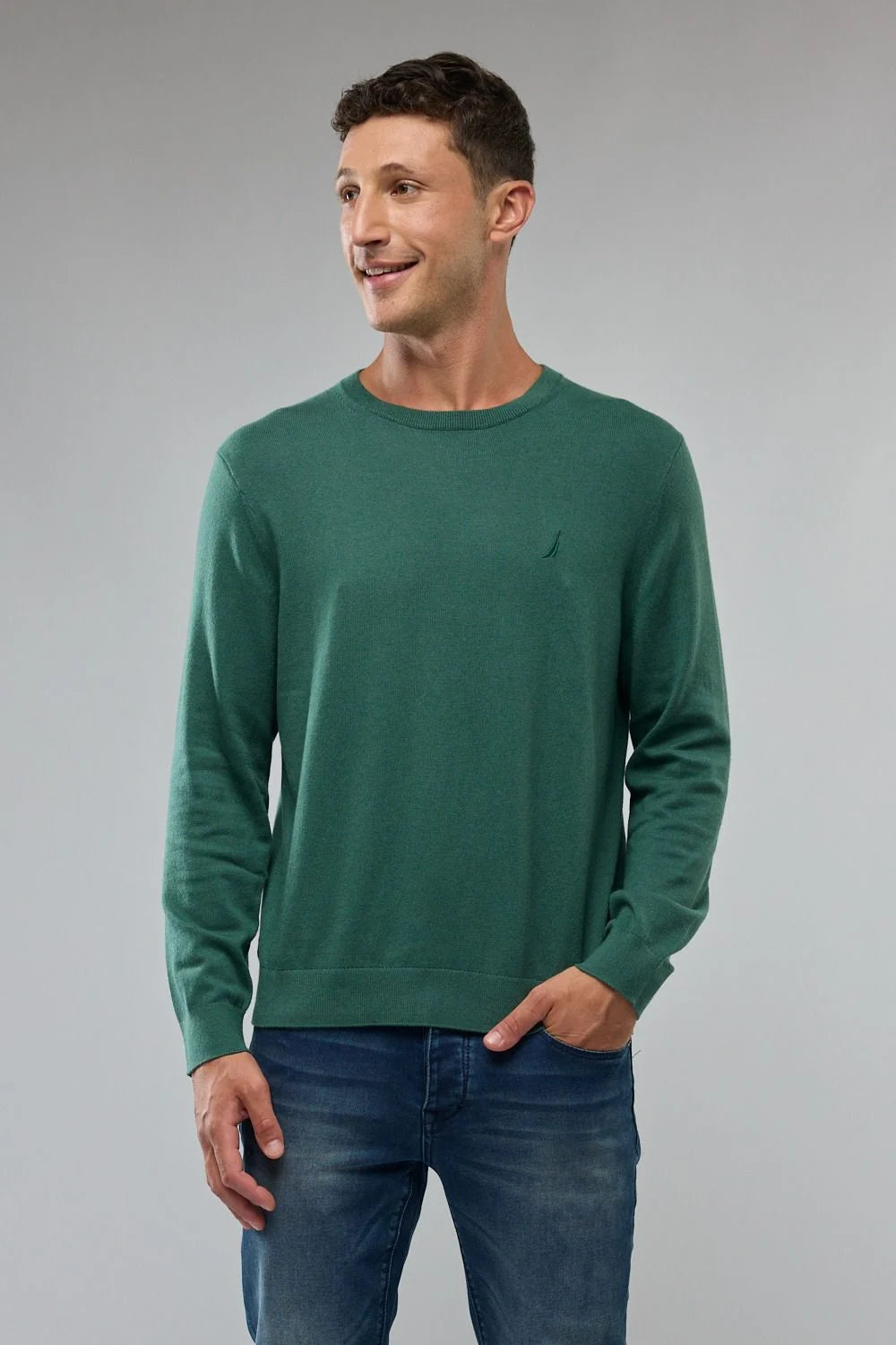 סוודר איכותי לגברים עם צווארון עגול, מעוצב בסגנון נקי ועדין.