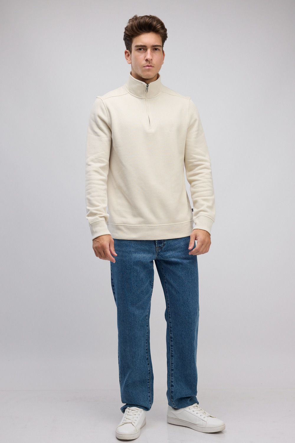 סווטשירט רוכסן בצאוורון (חצי זיפ) - שמנת