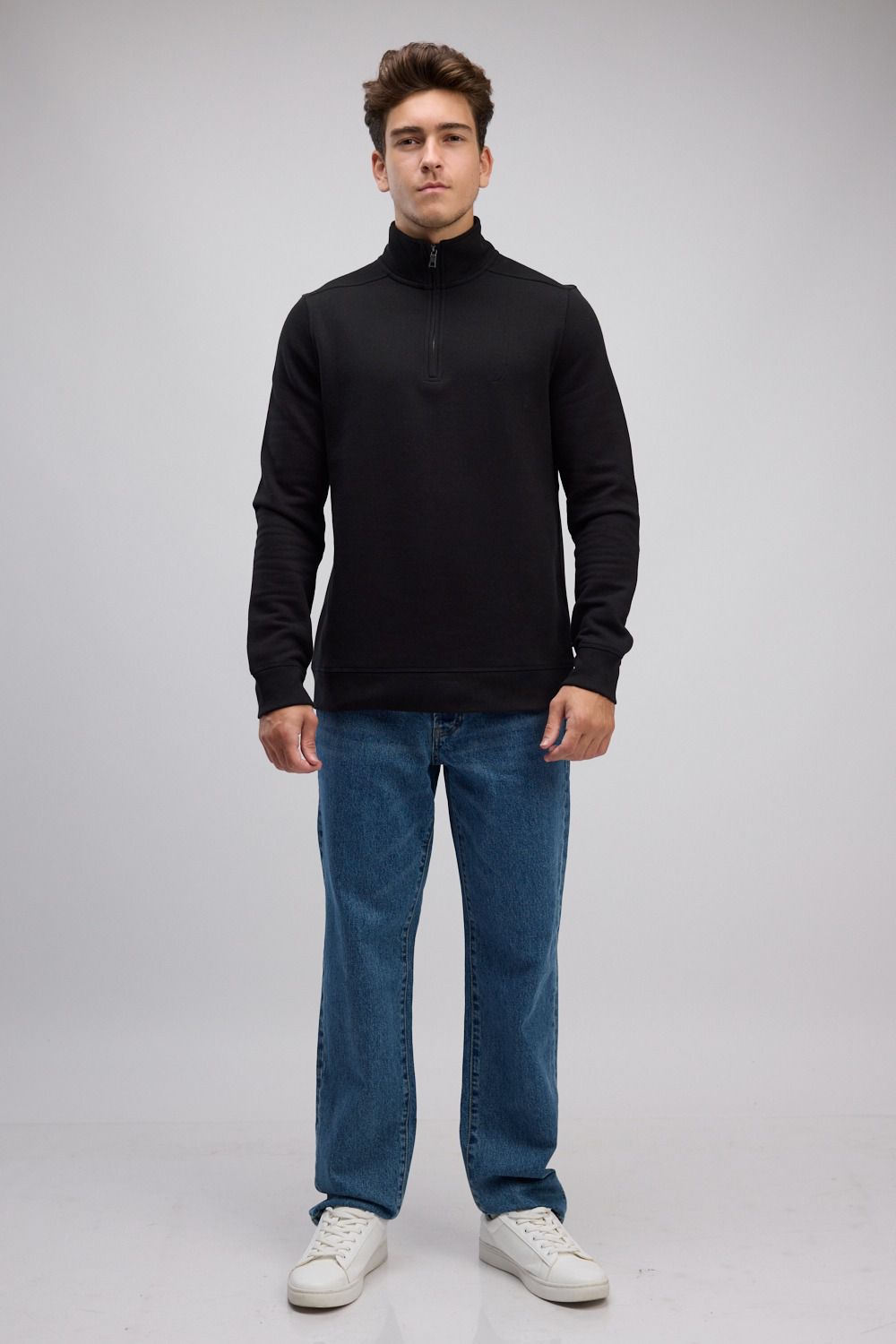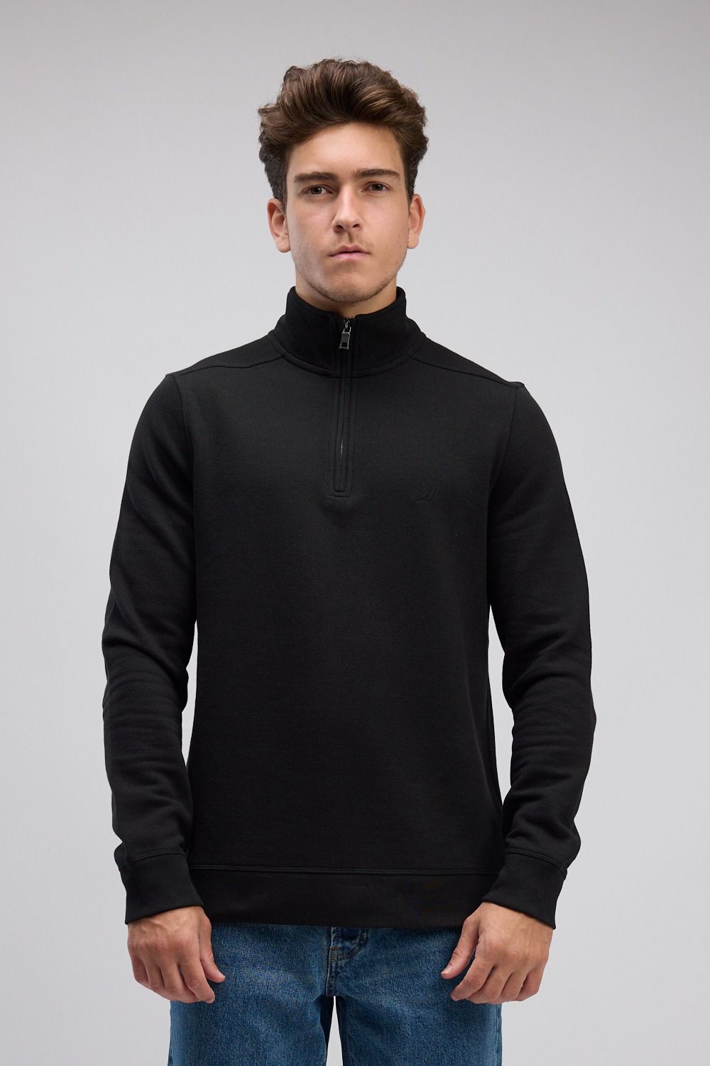 סווטשירט רוכסן בצאוורון (חצי זיפ) - שחור