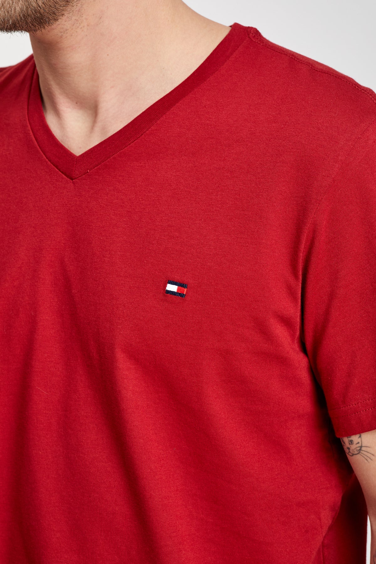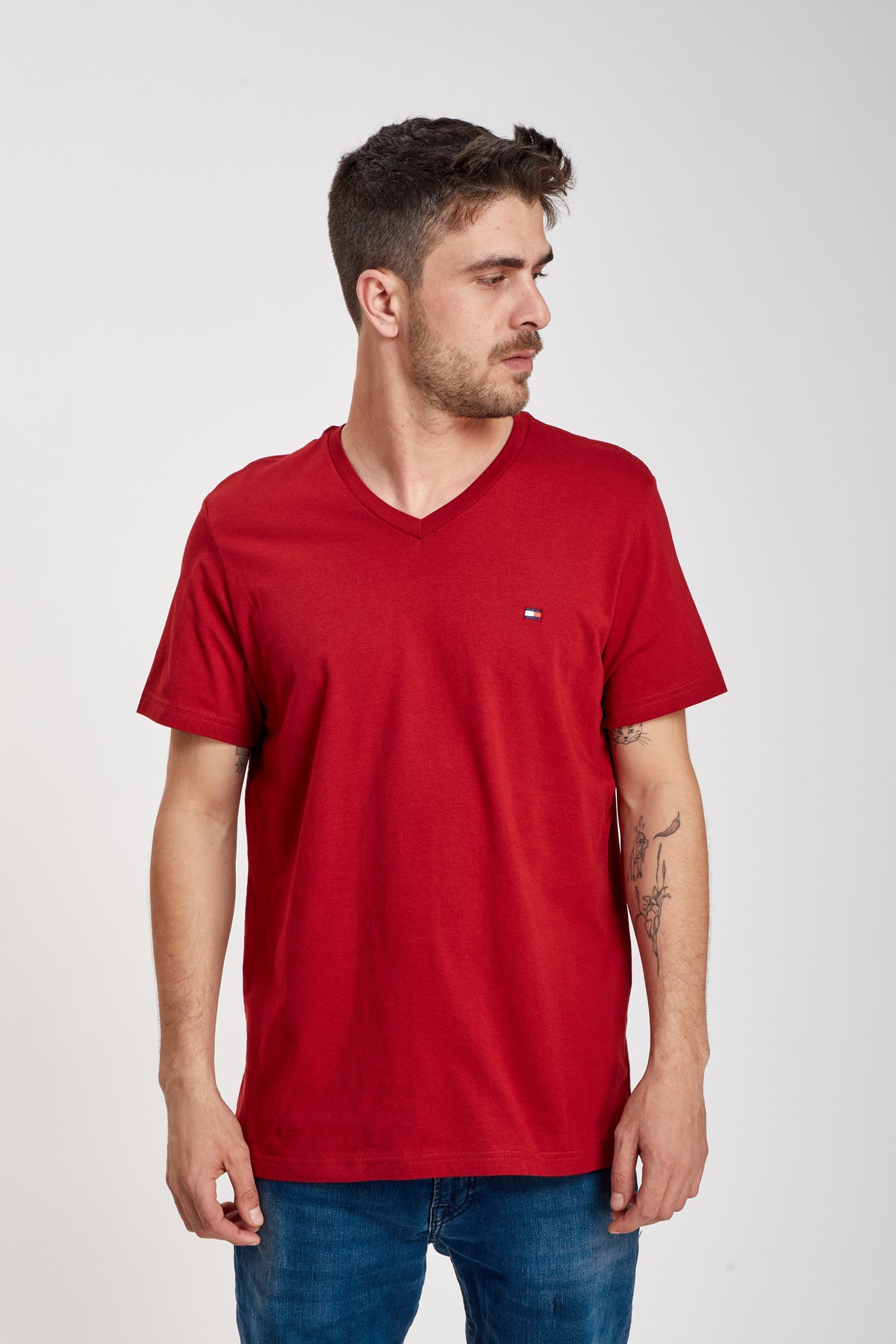 • טישרט בצבע בורדו וי של TOMMY HILFIGER