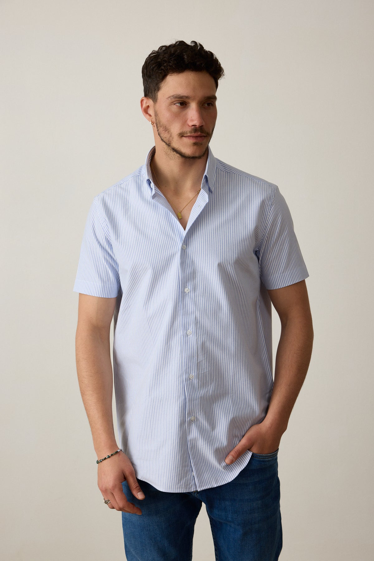 חולצה מכופתרת שרוול קצר בגזרת REGULAR- תכלת