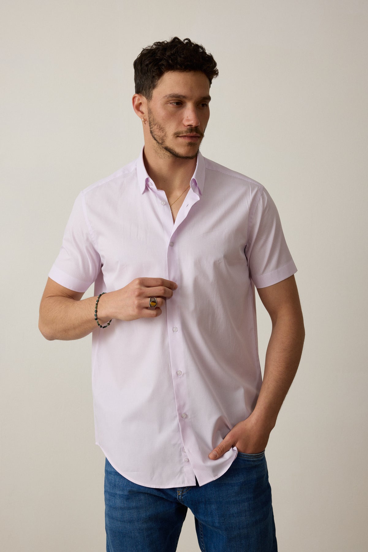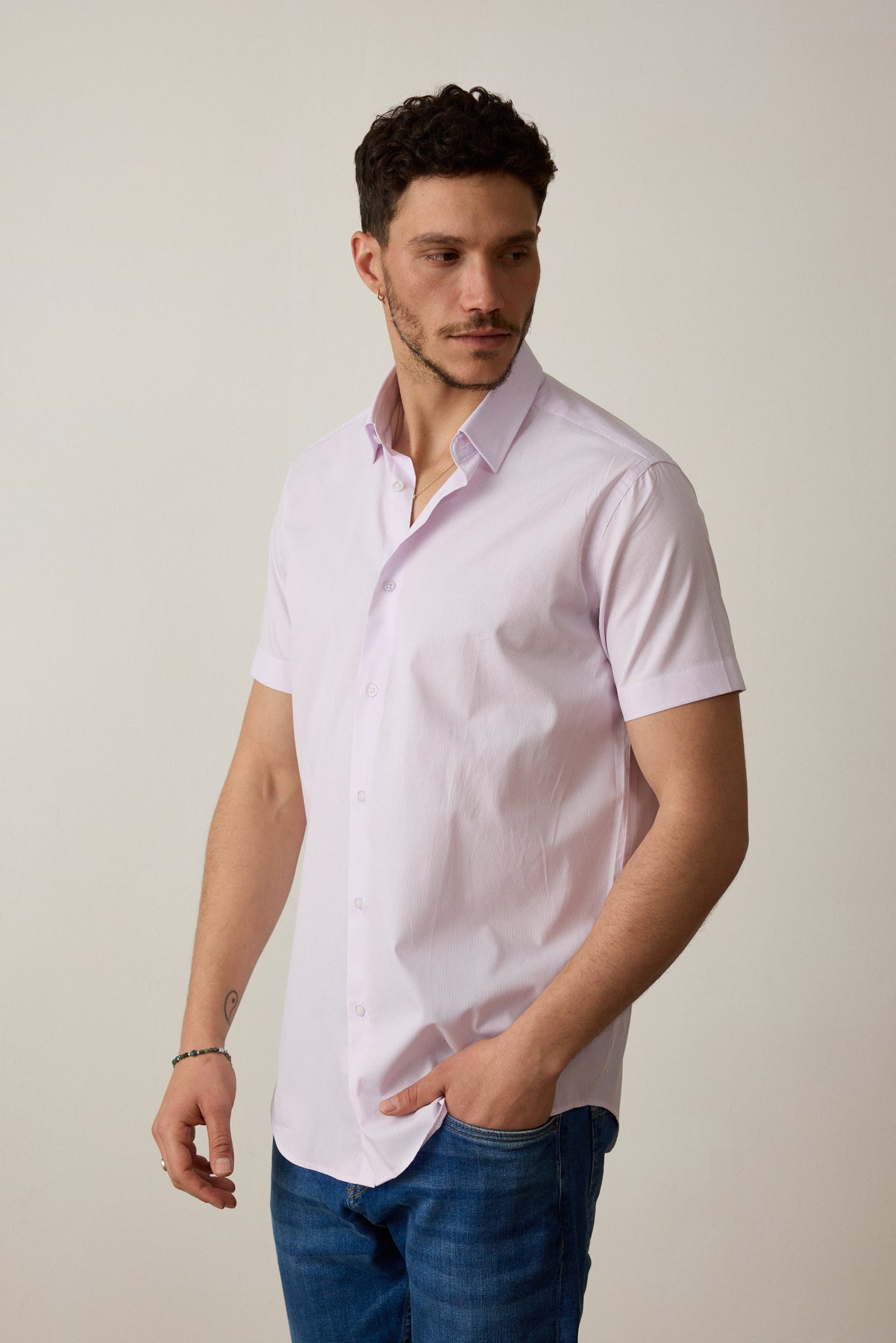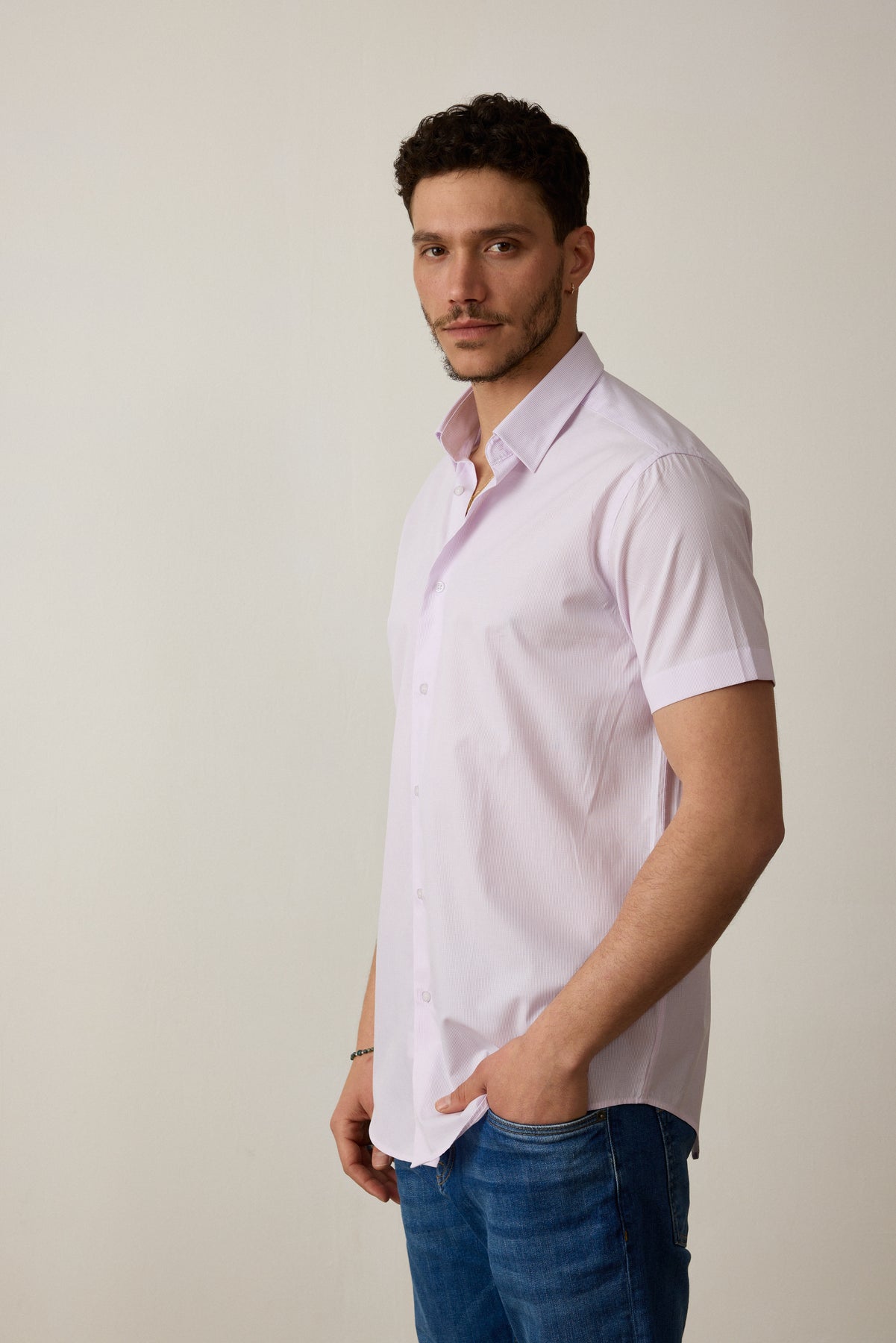 חולצה מכופתרת שרוול קצר בגזרת REGULAR- ורוד