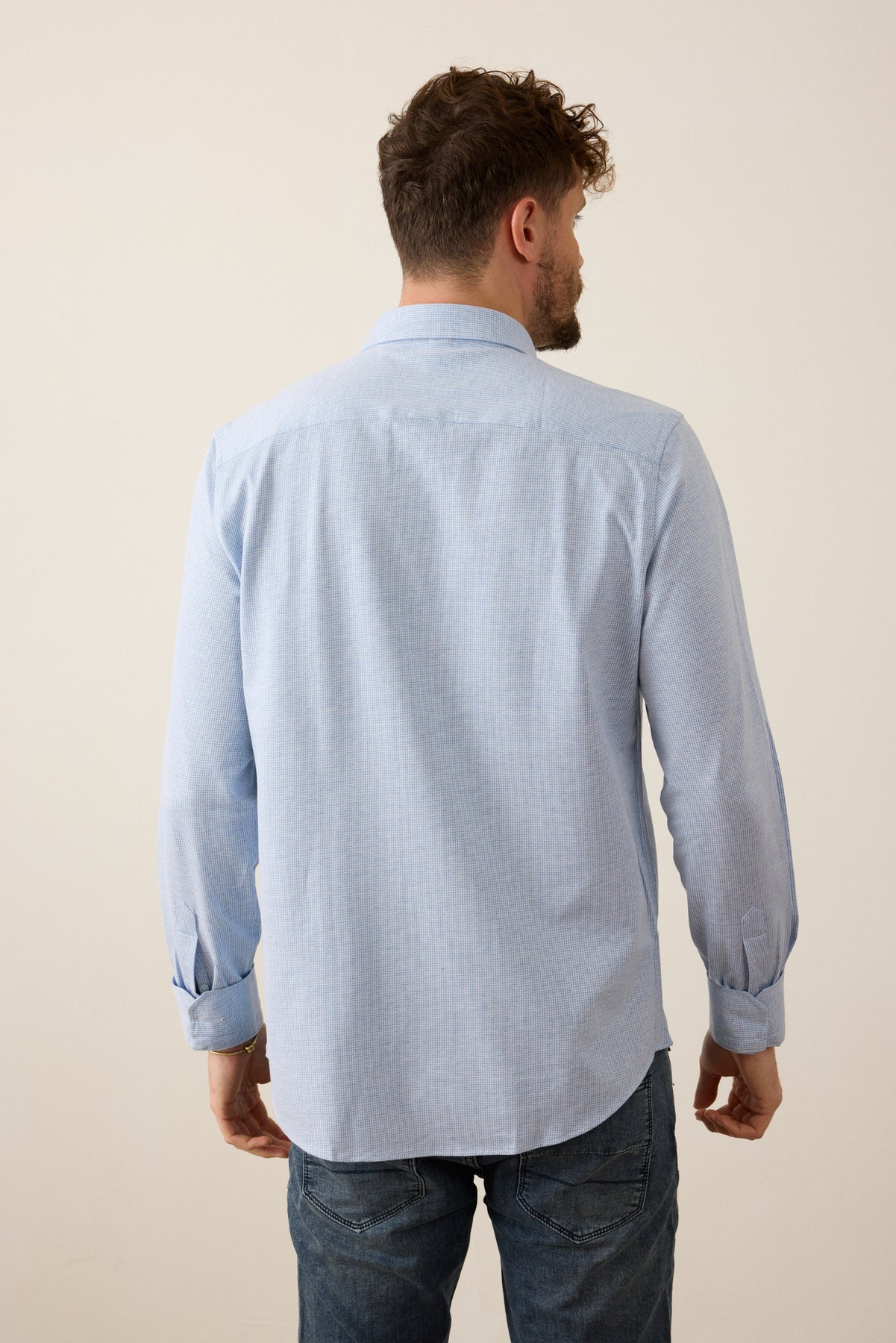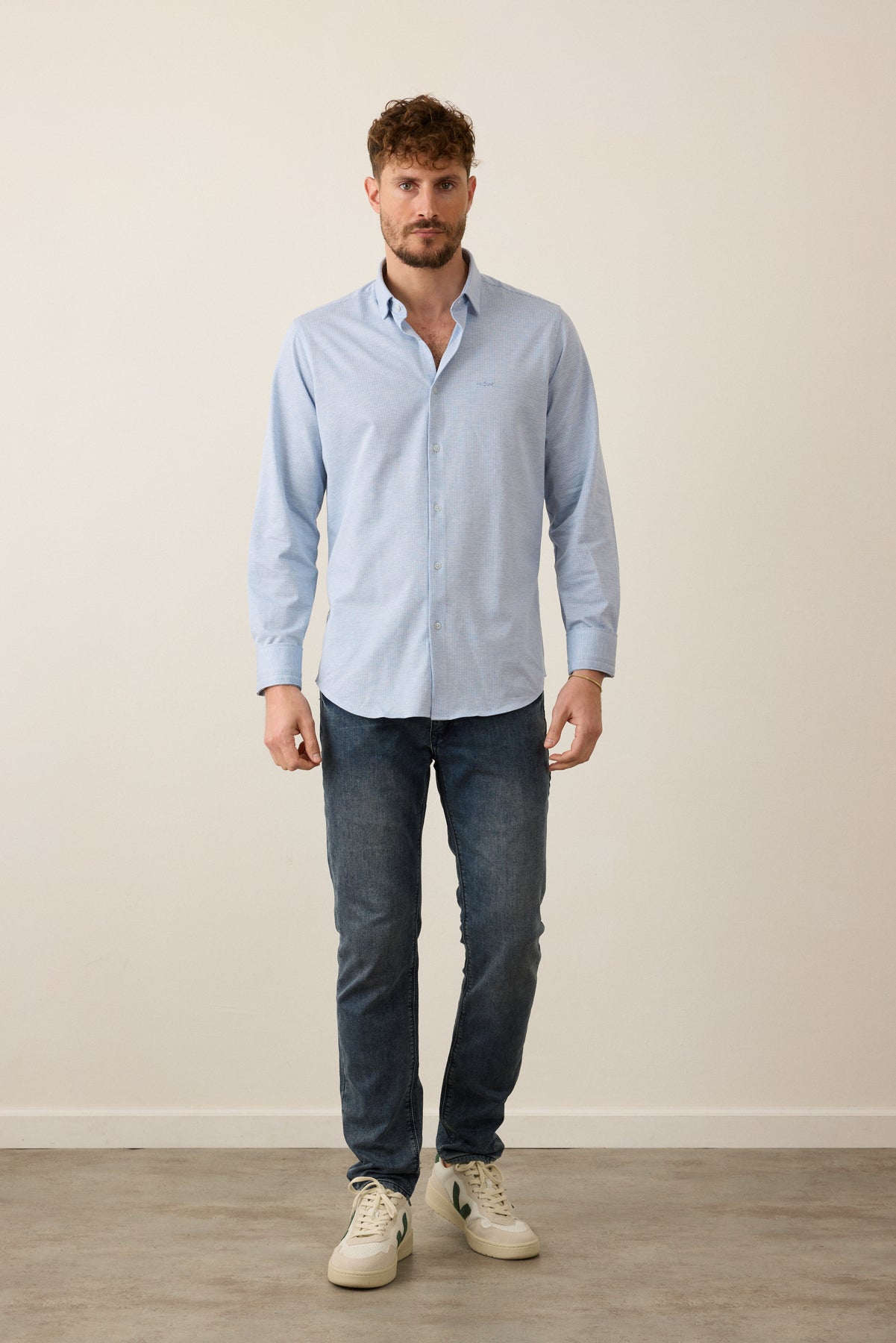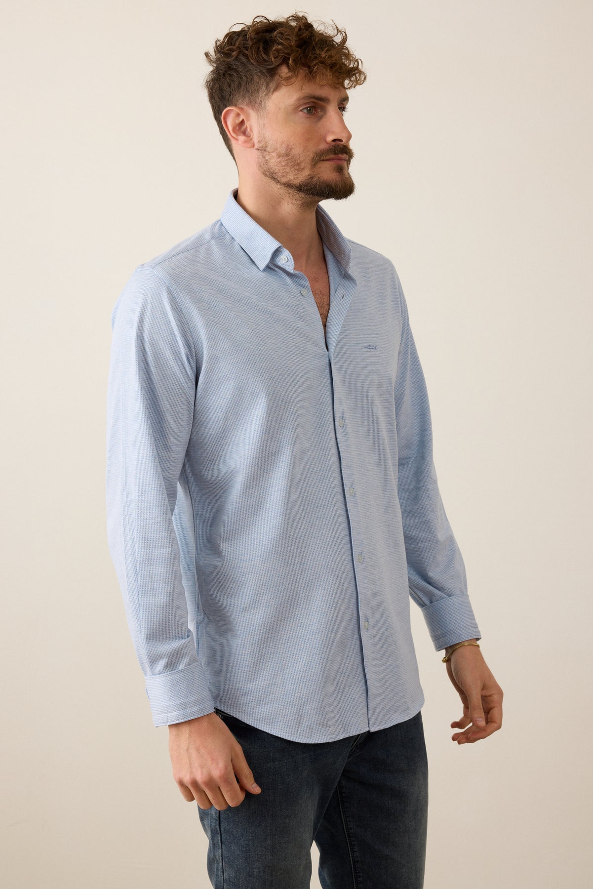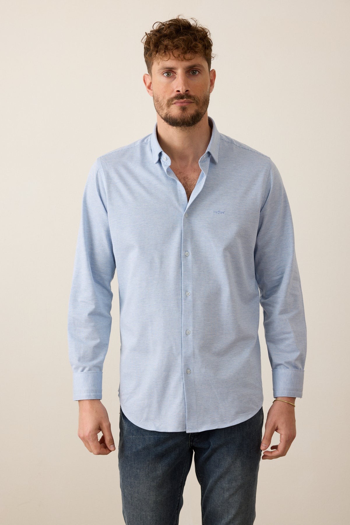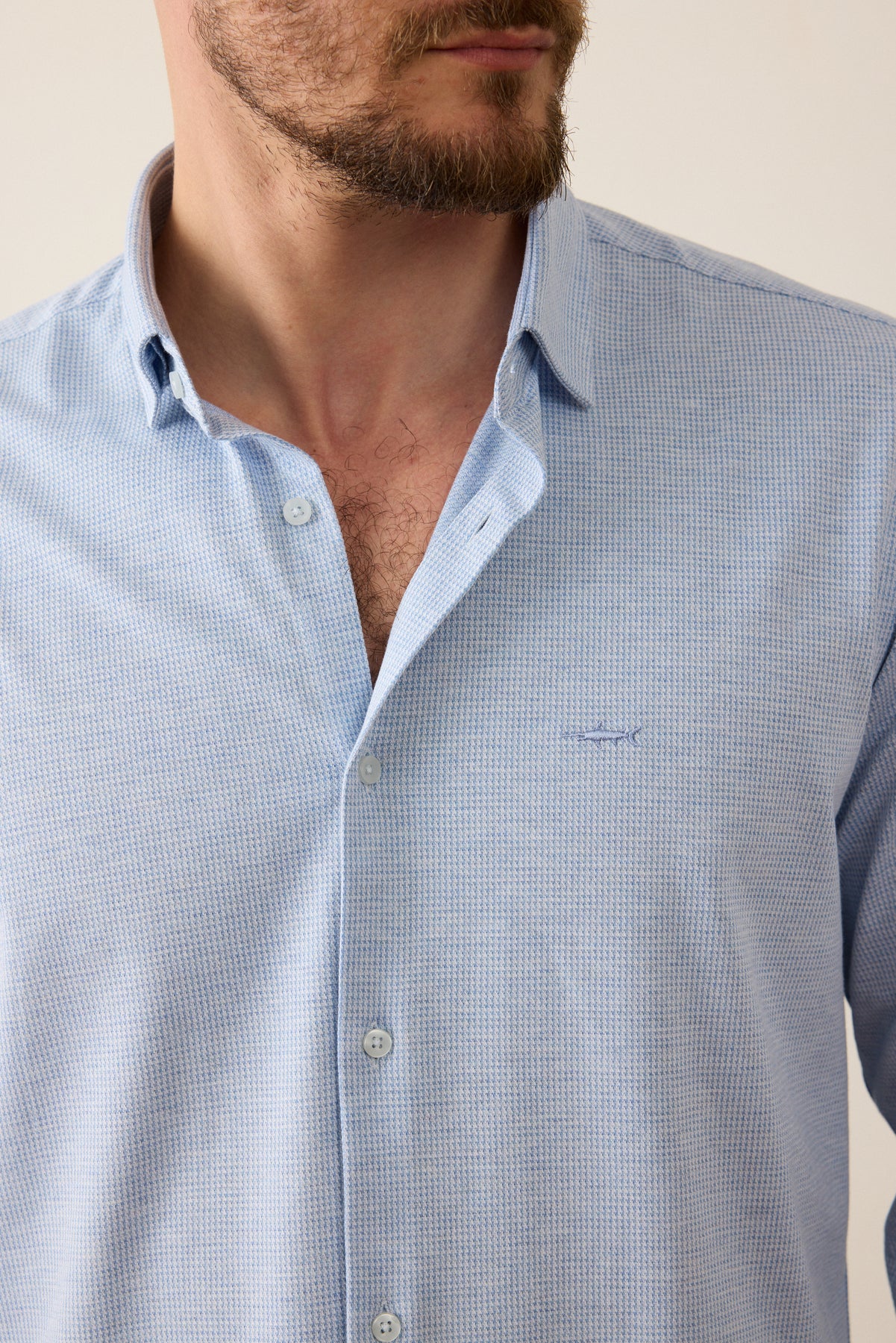 חולצה מכופתרת שרוול ארוך בגזרת Slim Fit- תכלת
