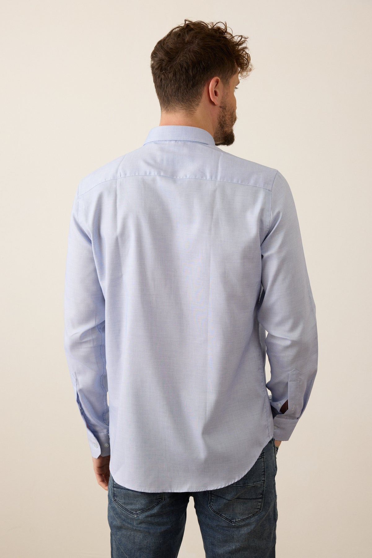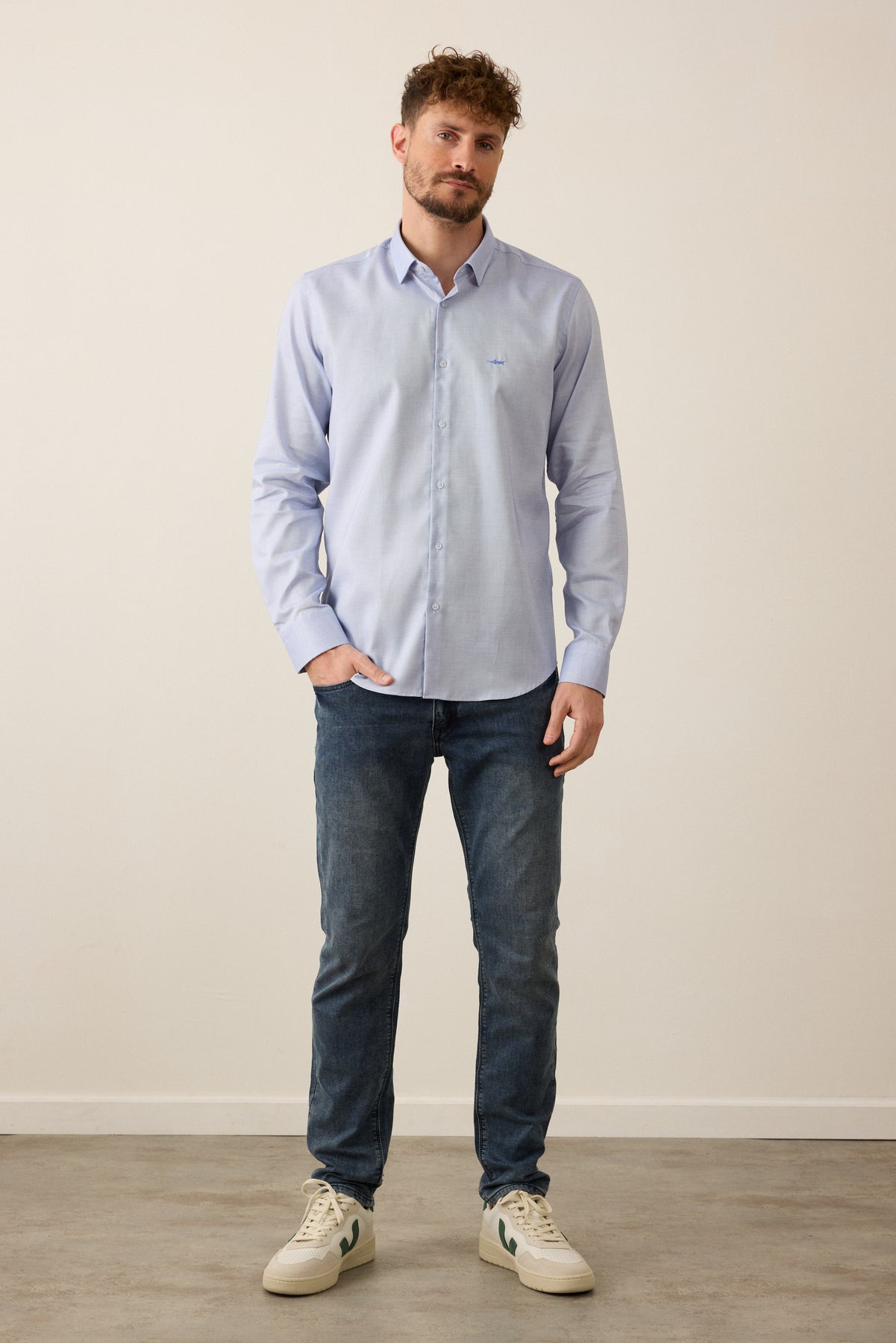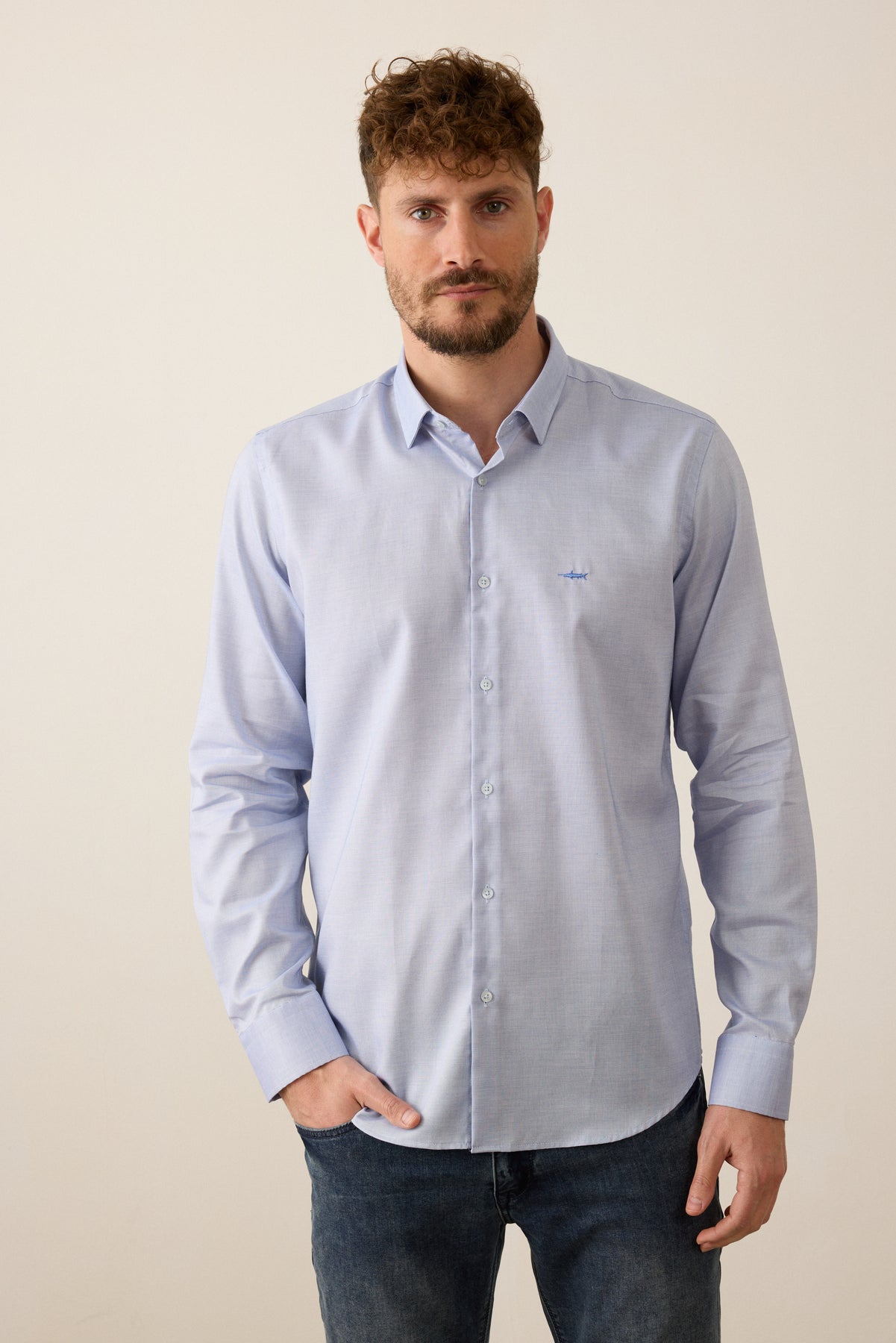חולצה מכופתרת שרוול ארוך בגזרת Slim Fit- כחול