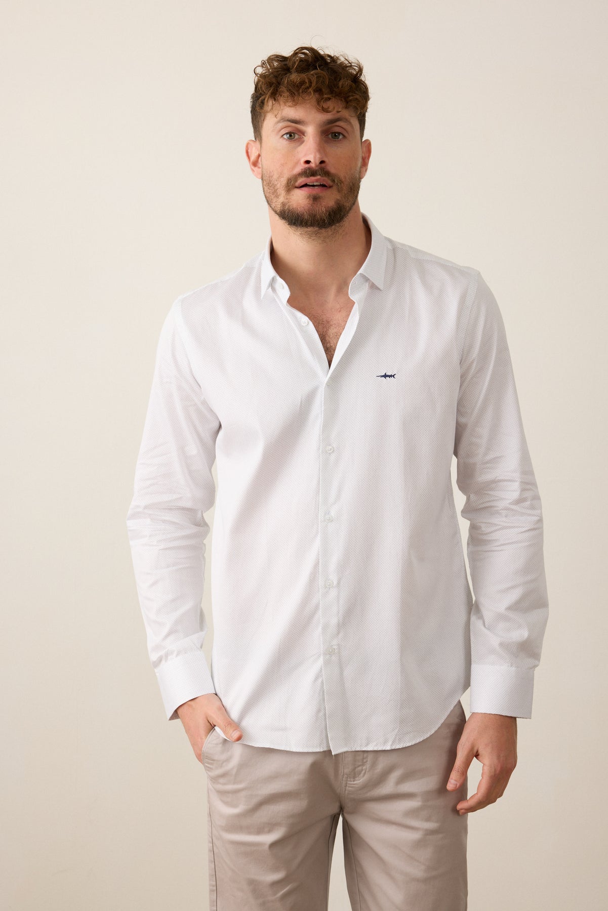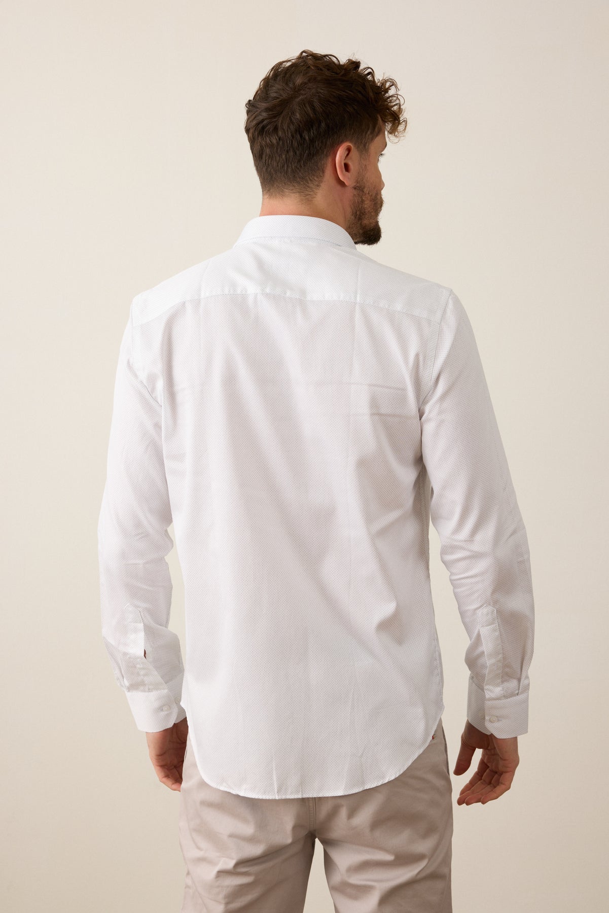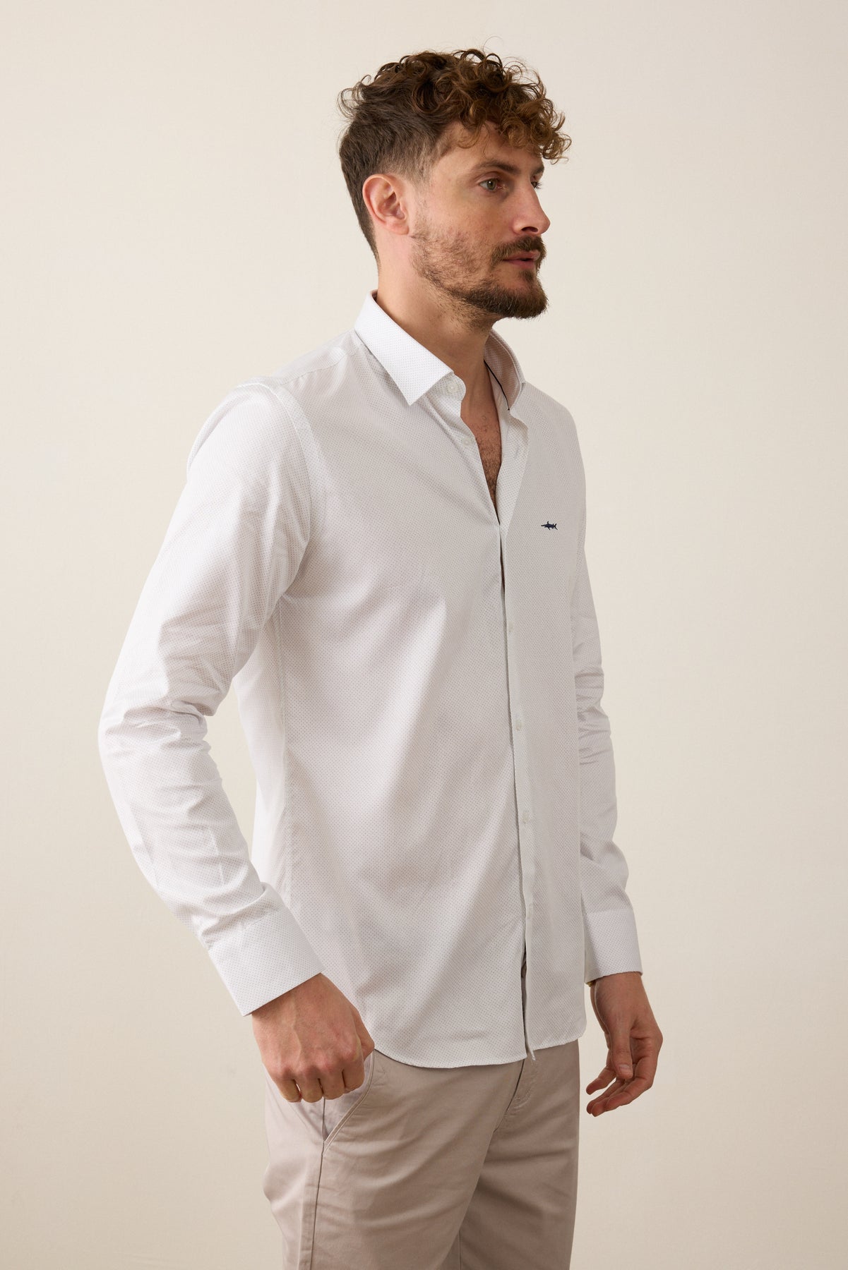 חולצה מכופתרת שרוול ארוך בגזרת Slim Fit- לבן