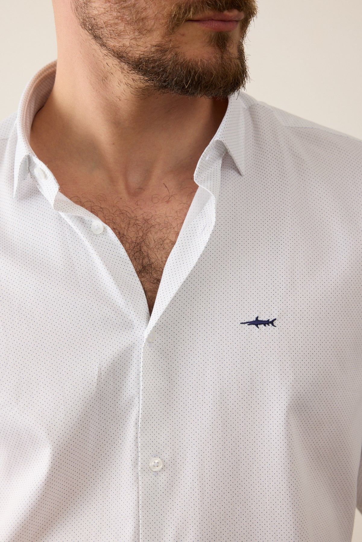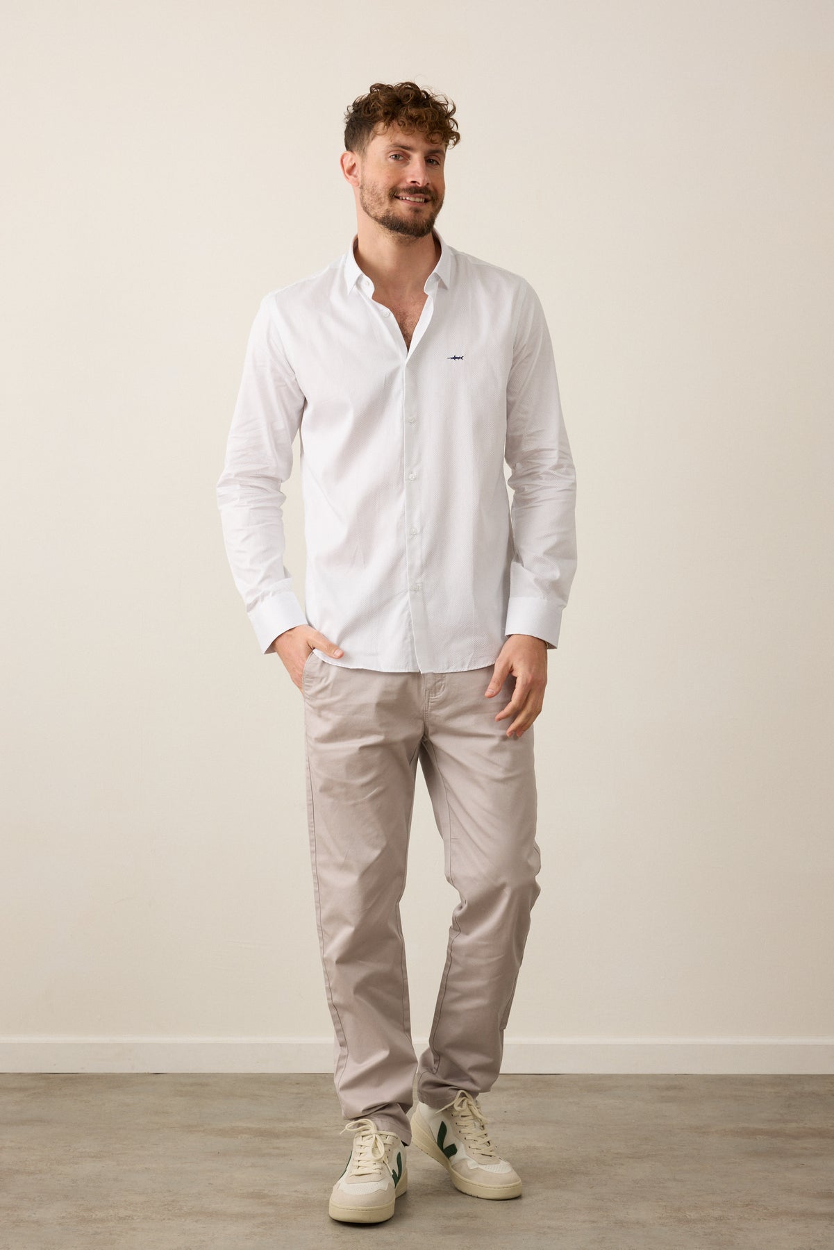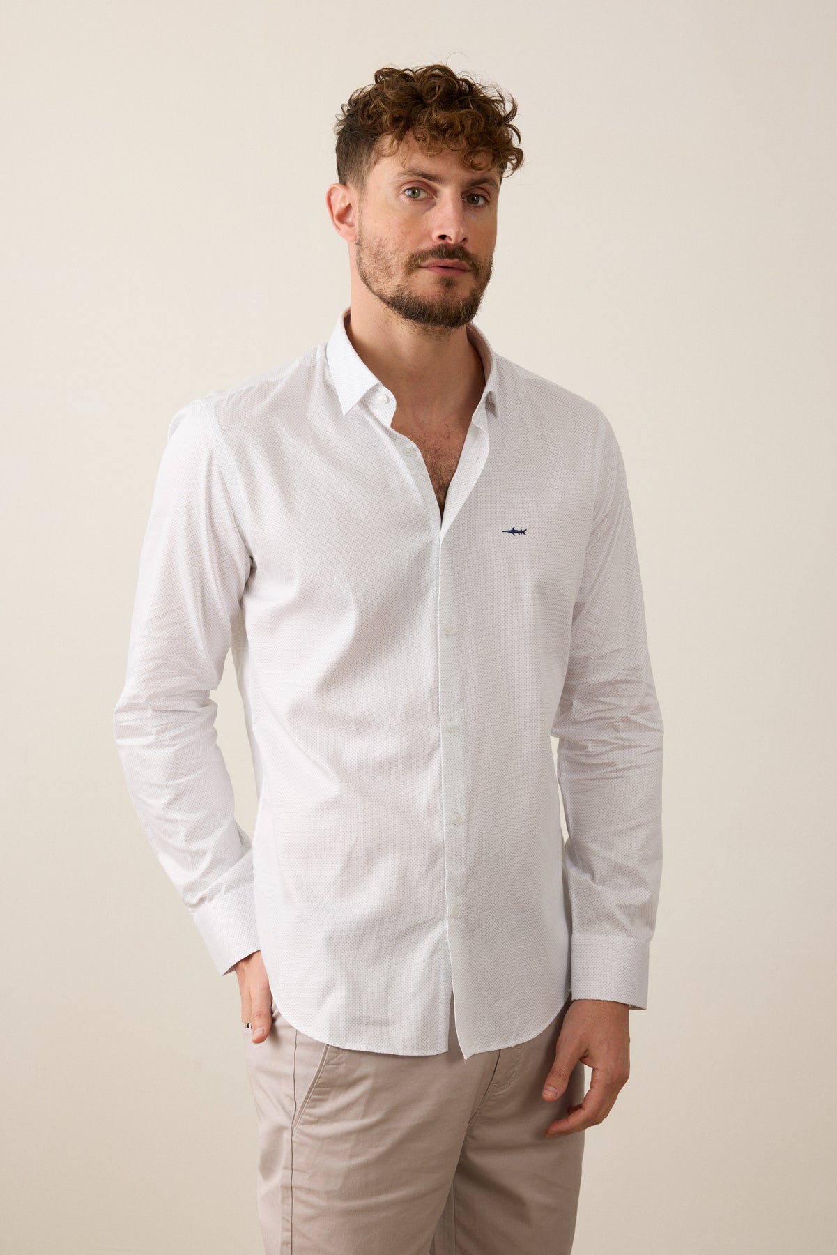 חולצה מכופתרת שרוול ארוך בגזרת Slim Fit- לבן