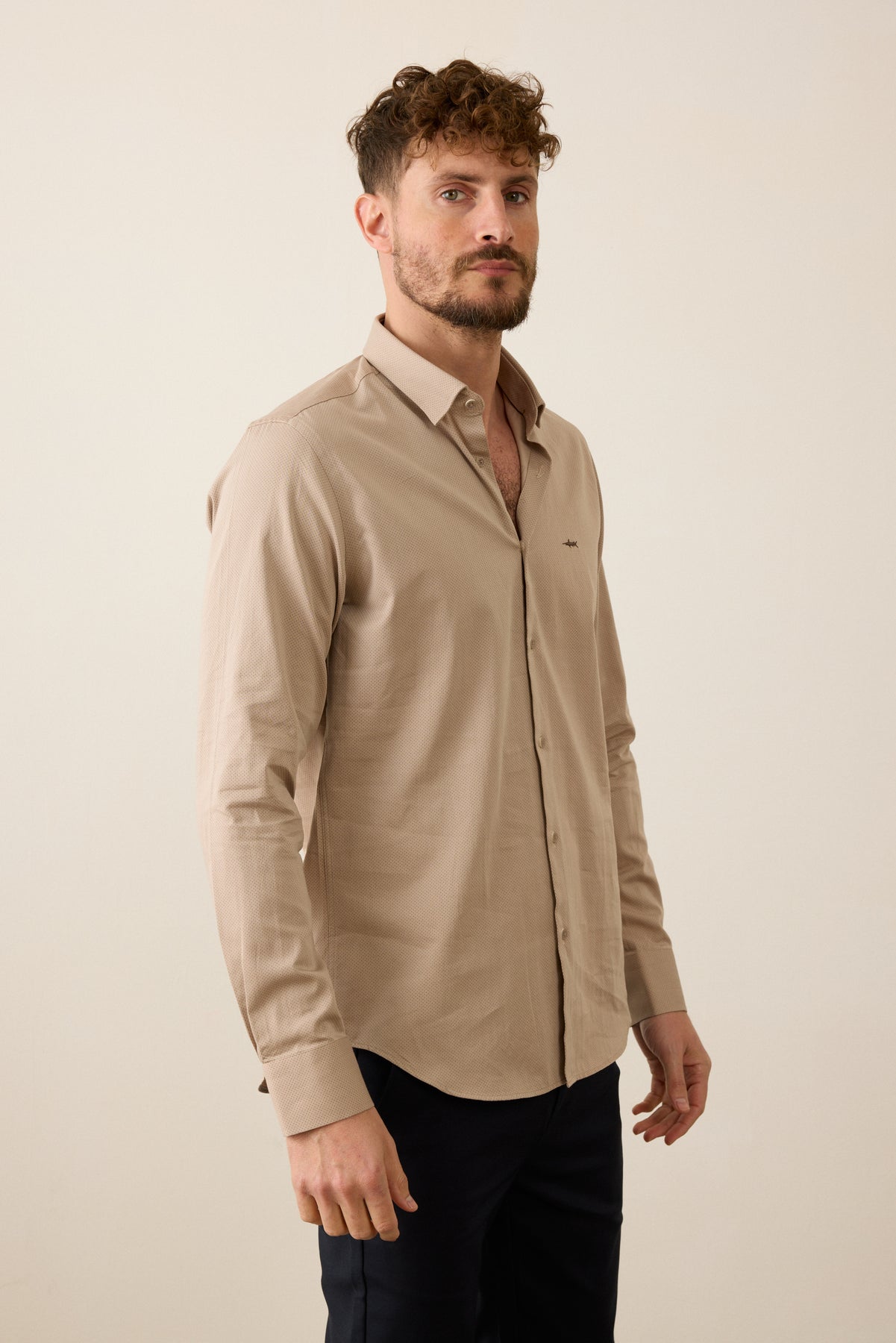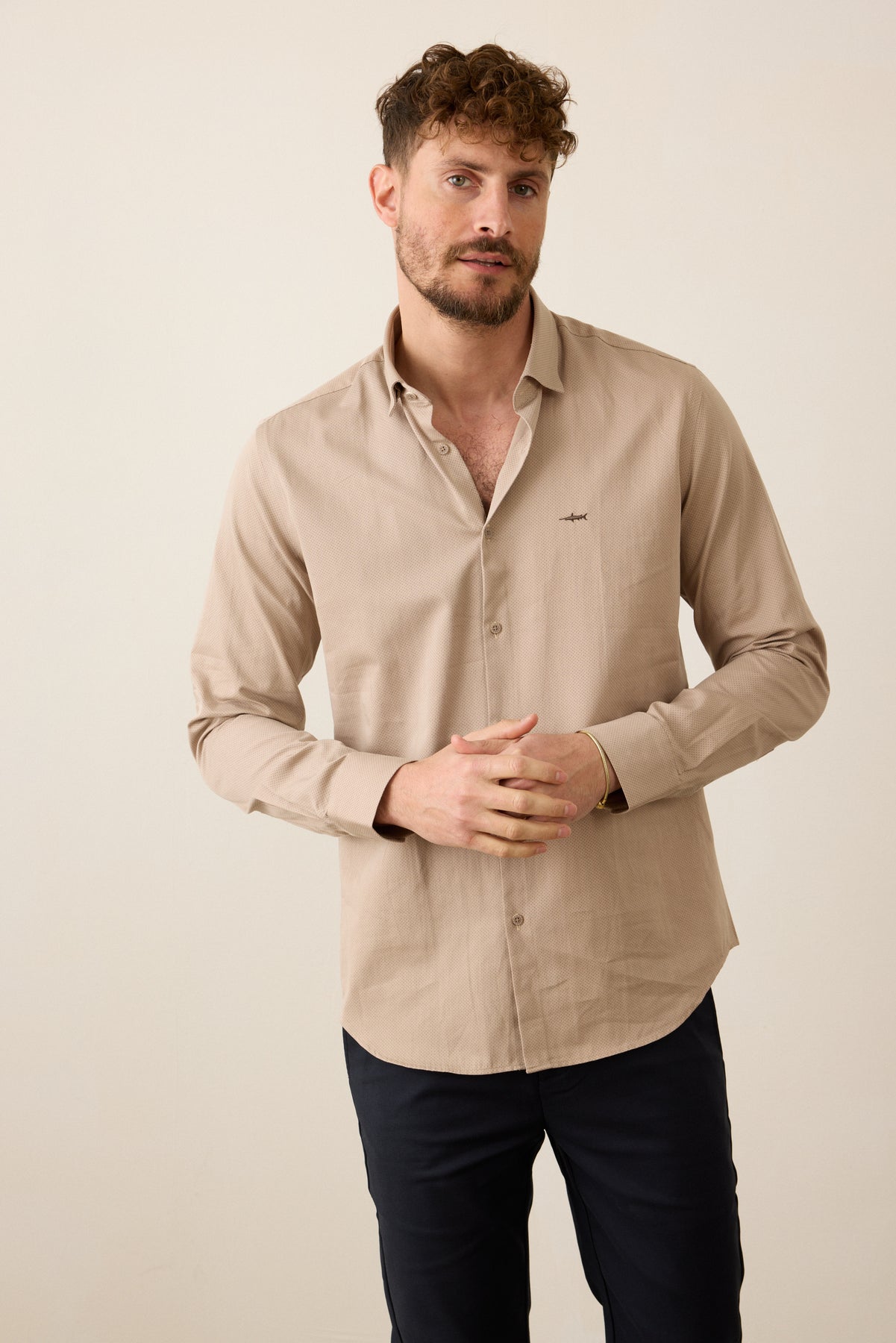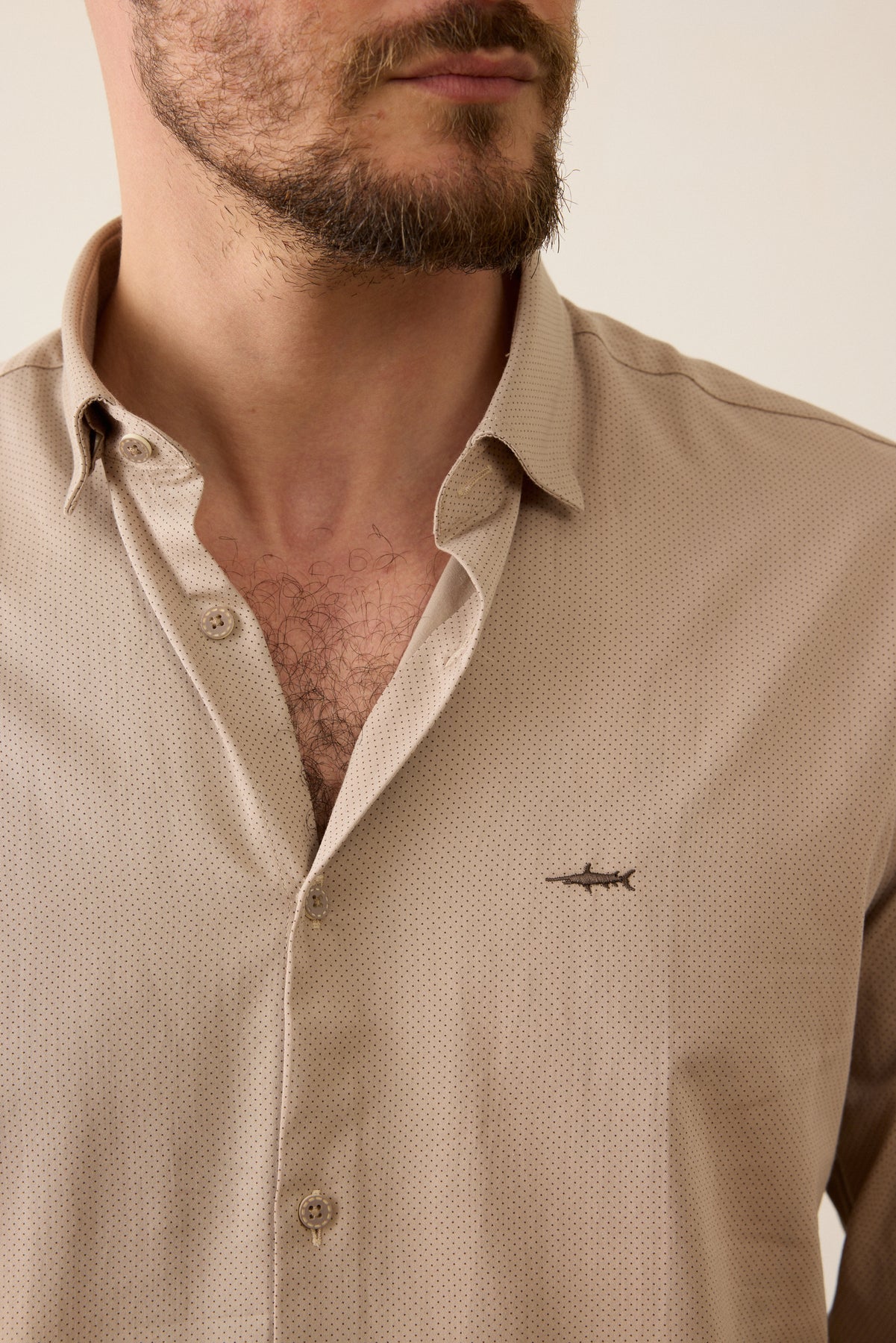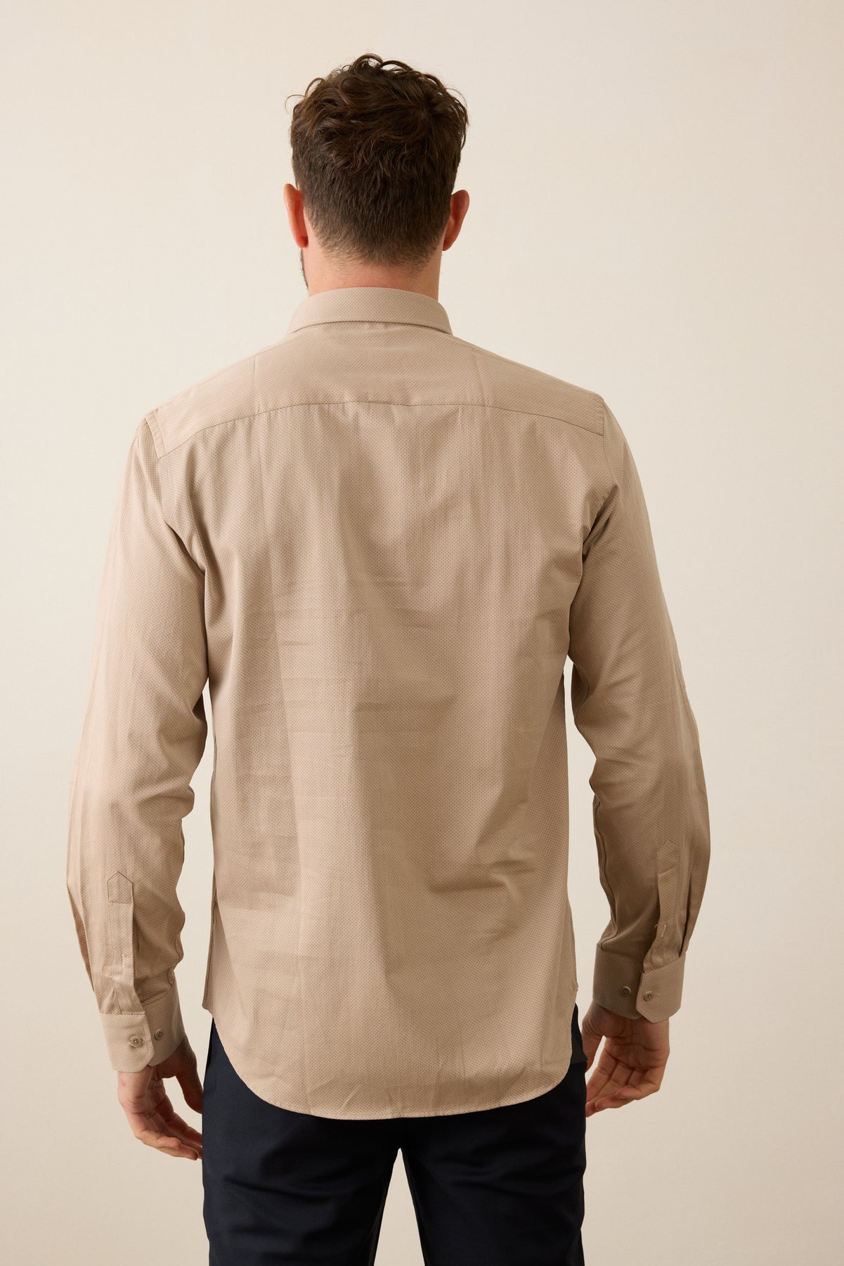 חולצה מכופתרת שרוול ארוך בגזרת Slim Fit- חום