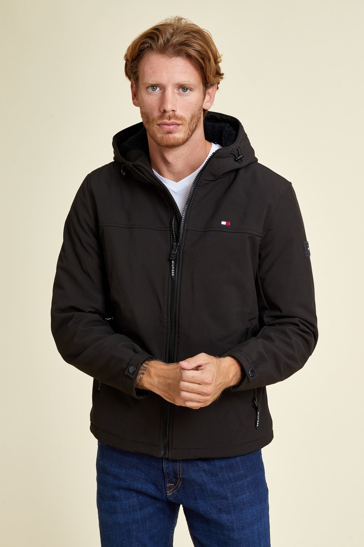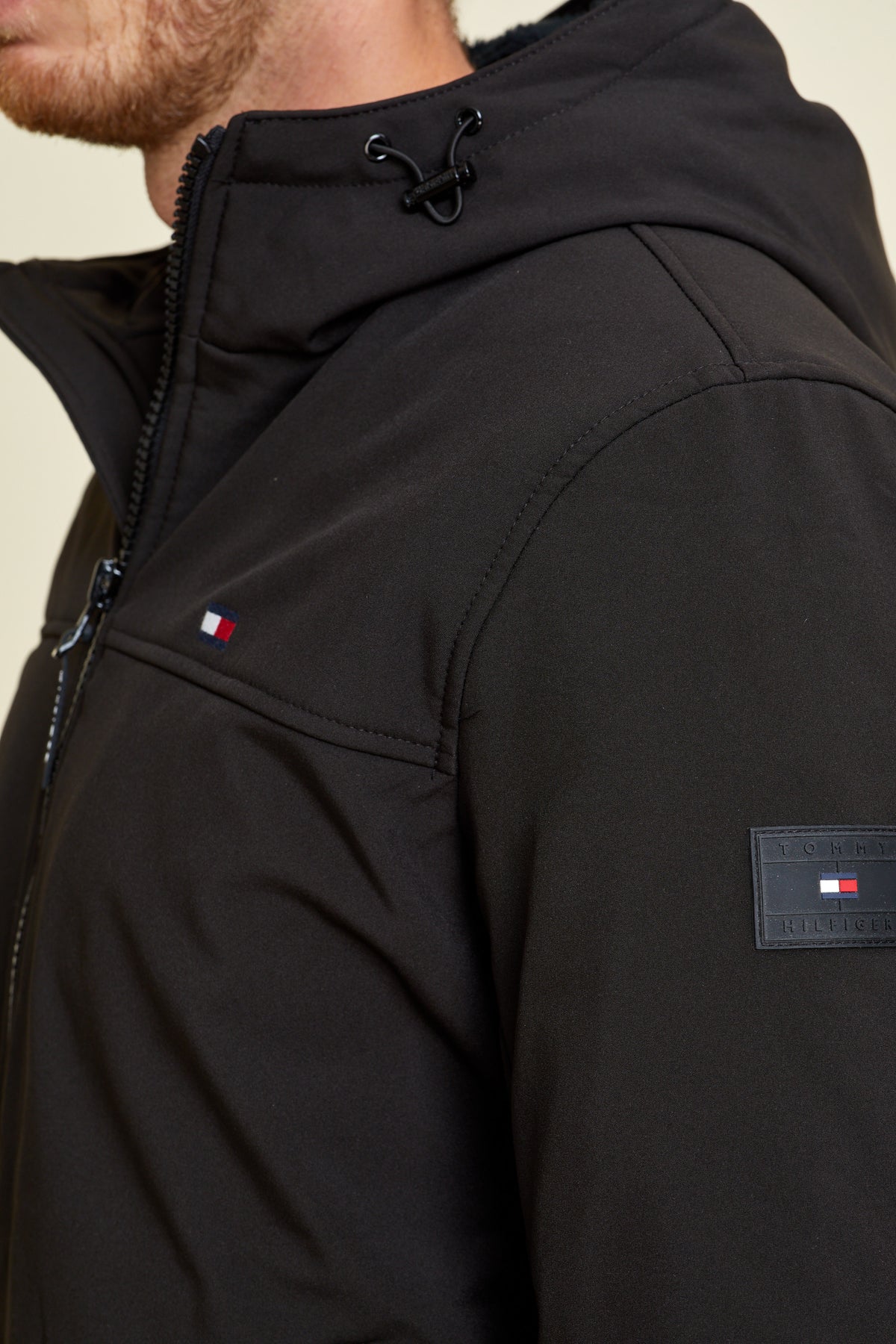 • מעיל עם כובע בצבע שחור של TOMMY HILFIGER
