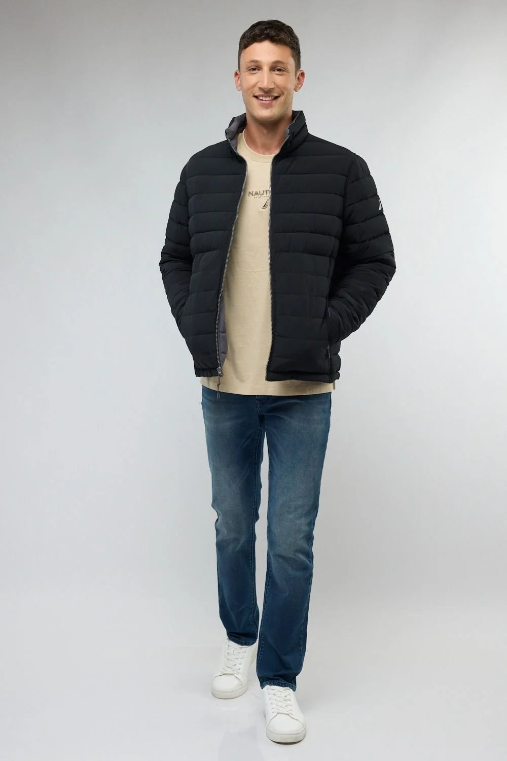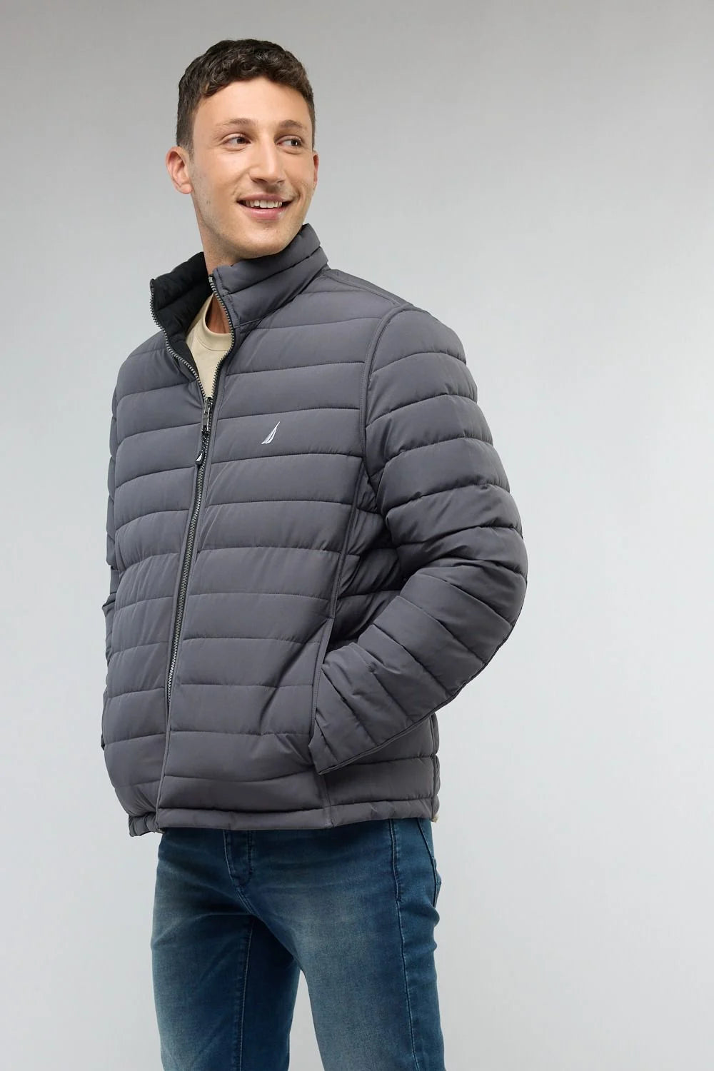 גלה את המעיל המושלם לעונות המעבר - מעיל דו צדדי שחור / אפור כהה של NAUTICA. מעיל זה מציע: