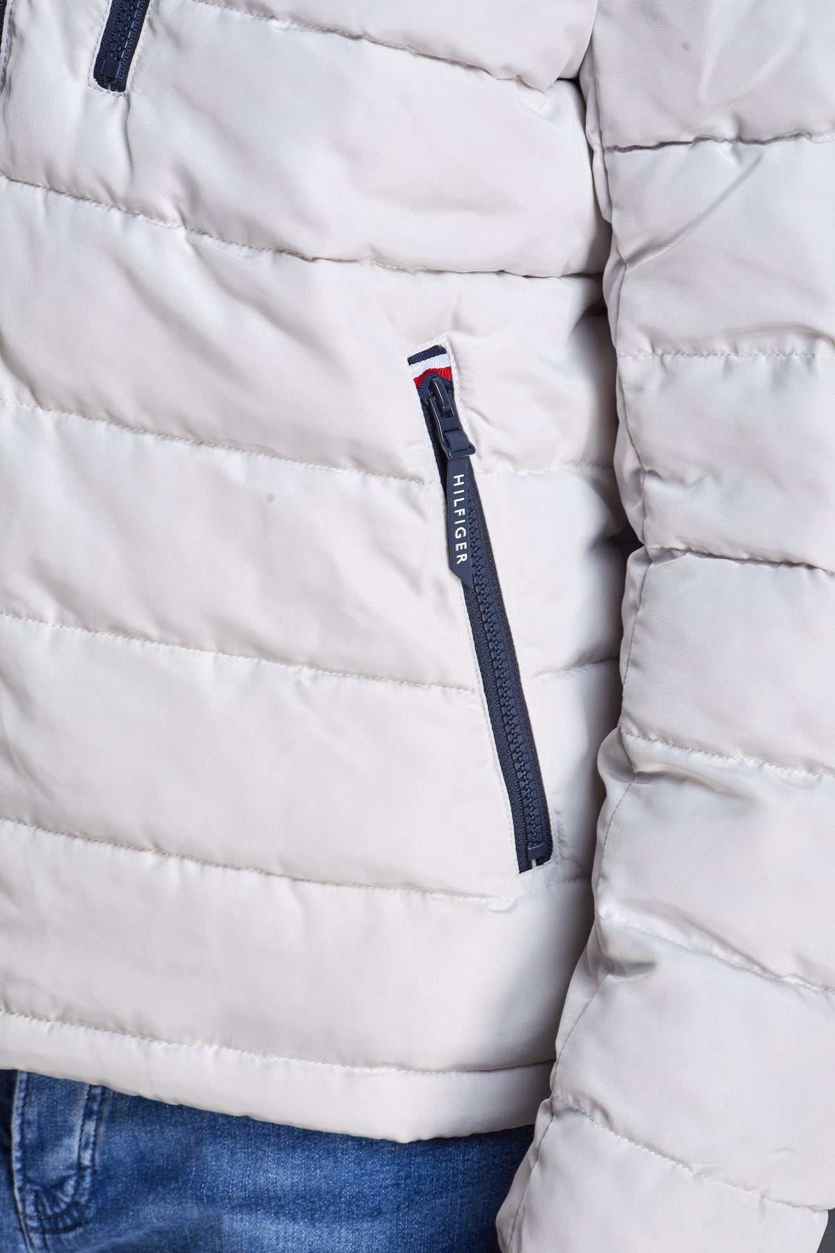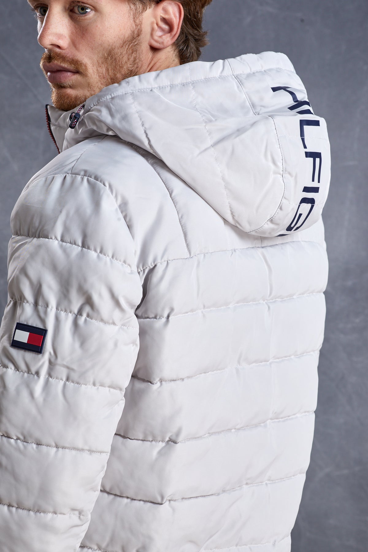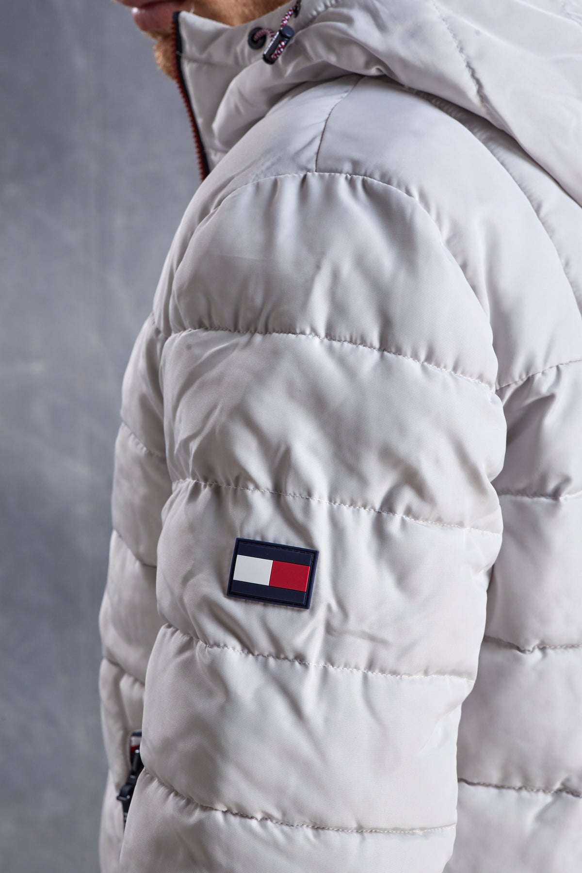 • מעיל פוך עם כובע בצבע אבן של TOMMY HILFIGER