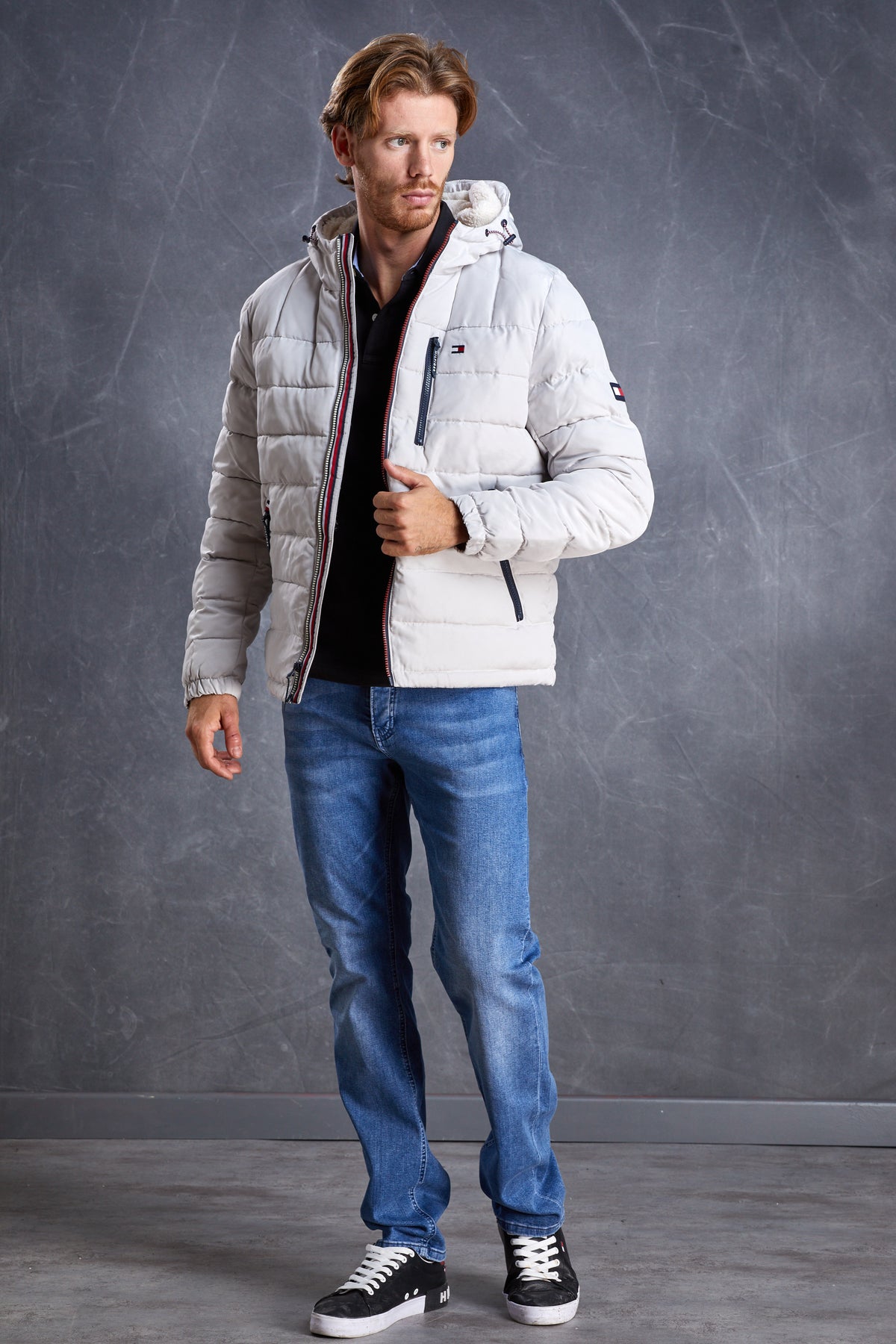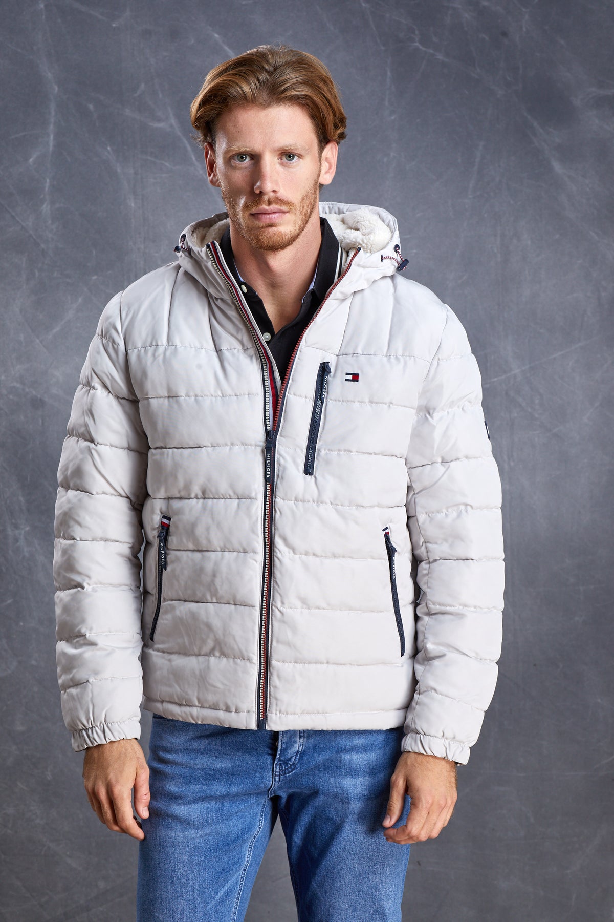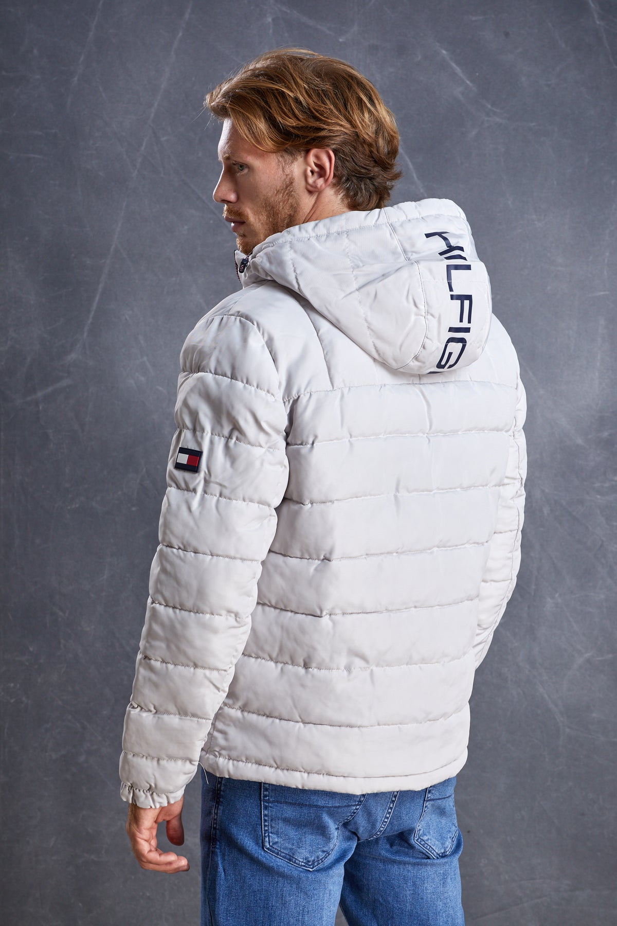 • מעיל פוך עם כובע בצבע אבן של TOMMY HILFIGER