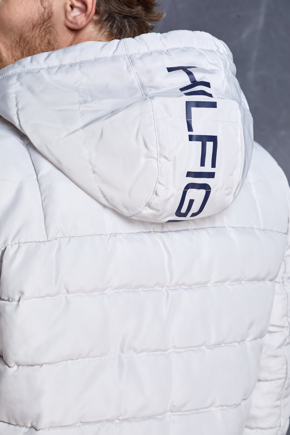 מעיל פוך בצבע אבן עם כובע