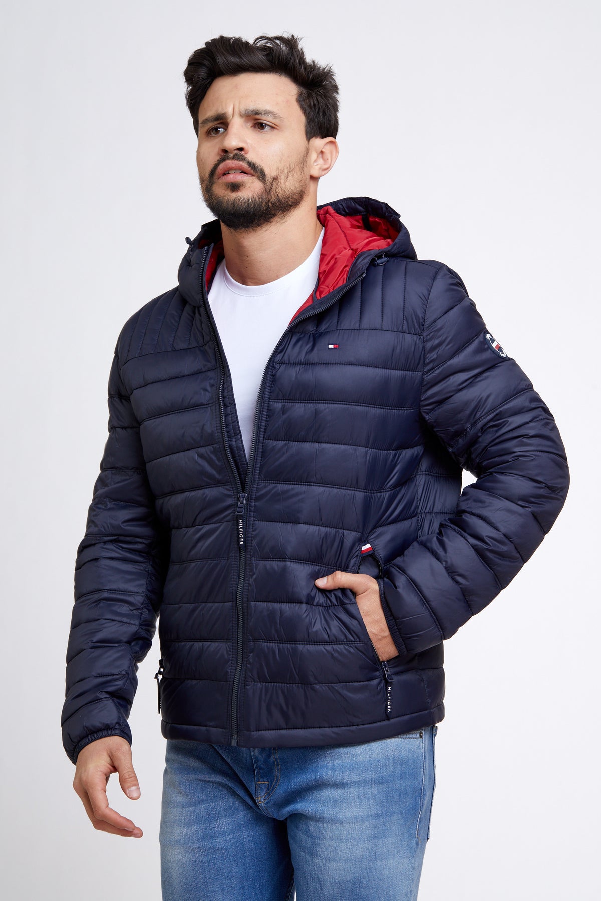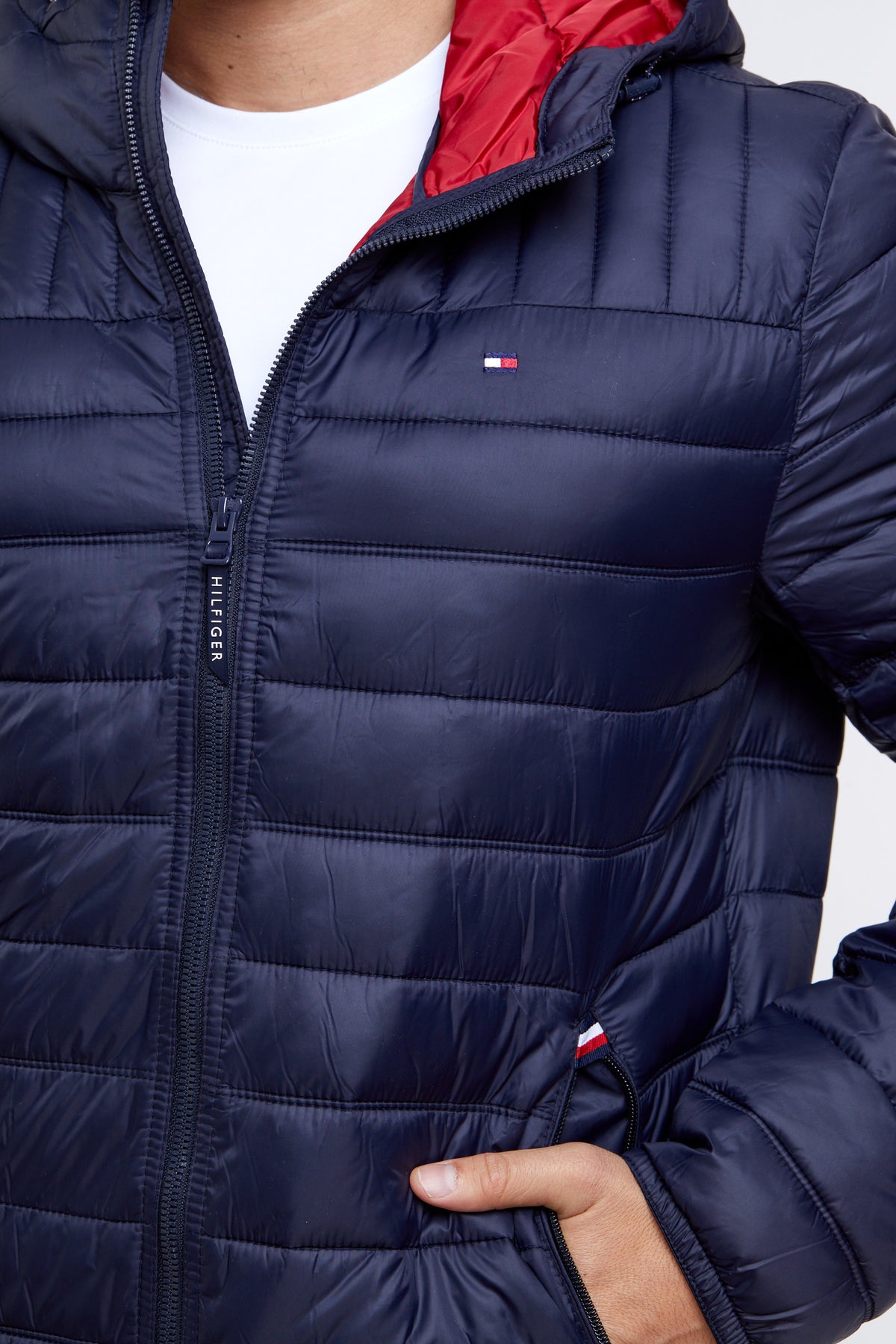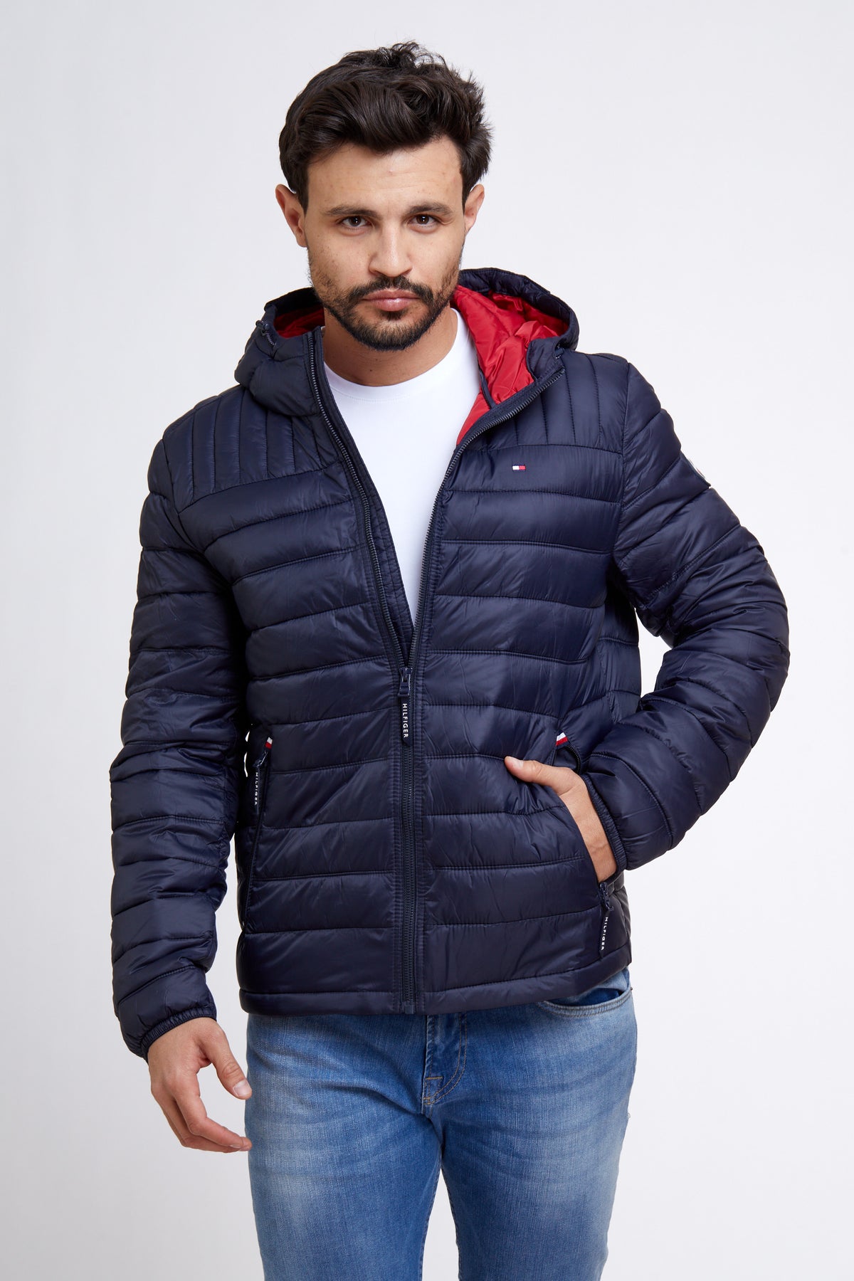 • מעיל עם כובע בצבע נייבי של TOMMY HILFIGER
