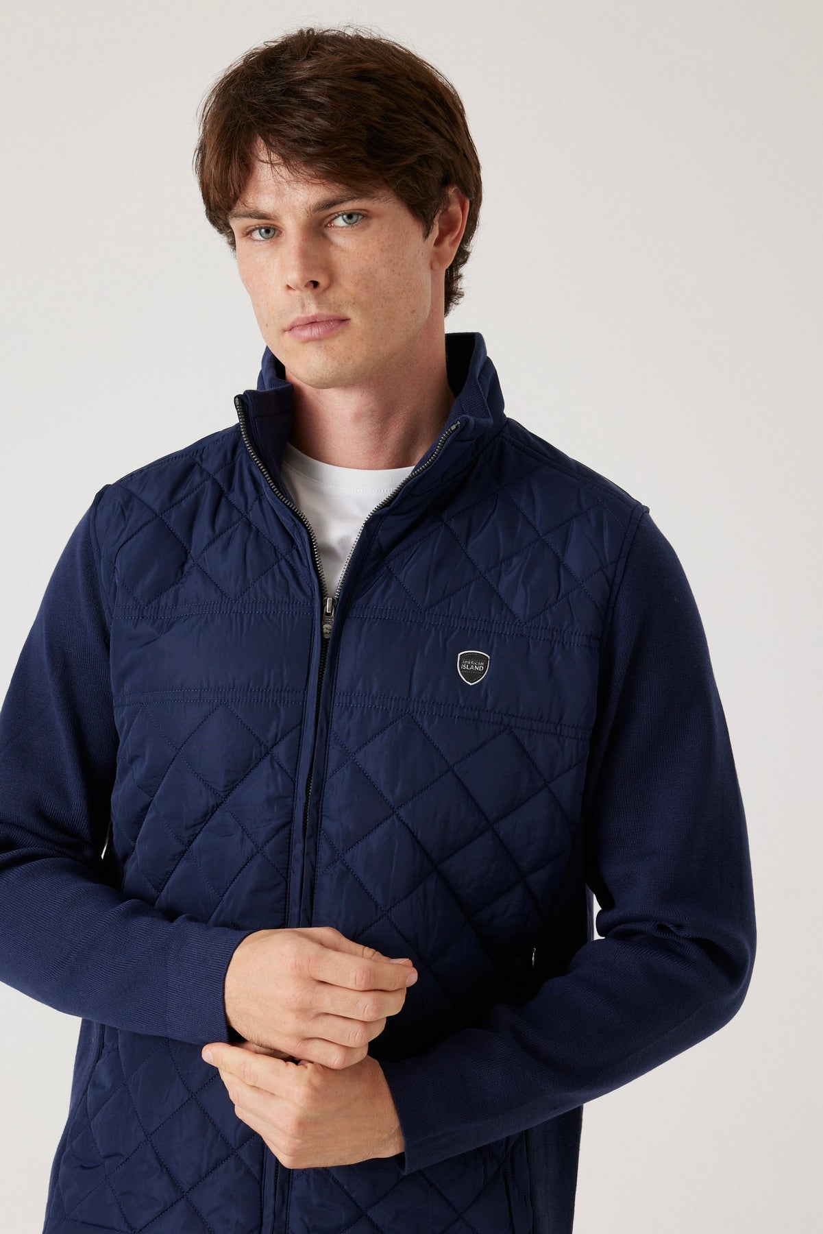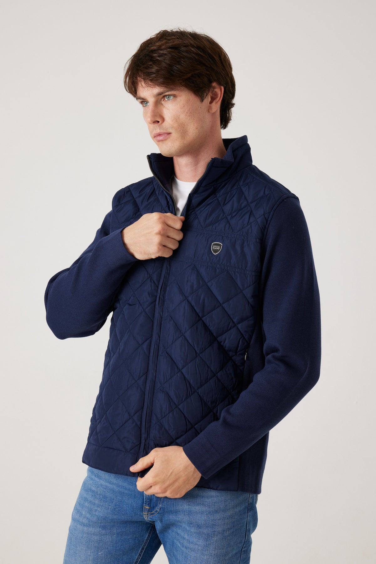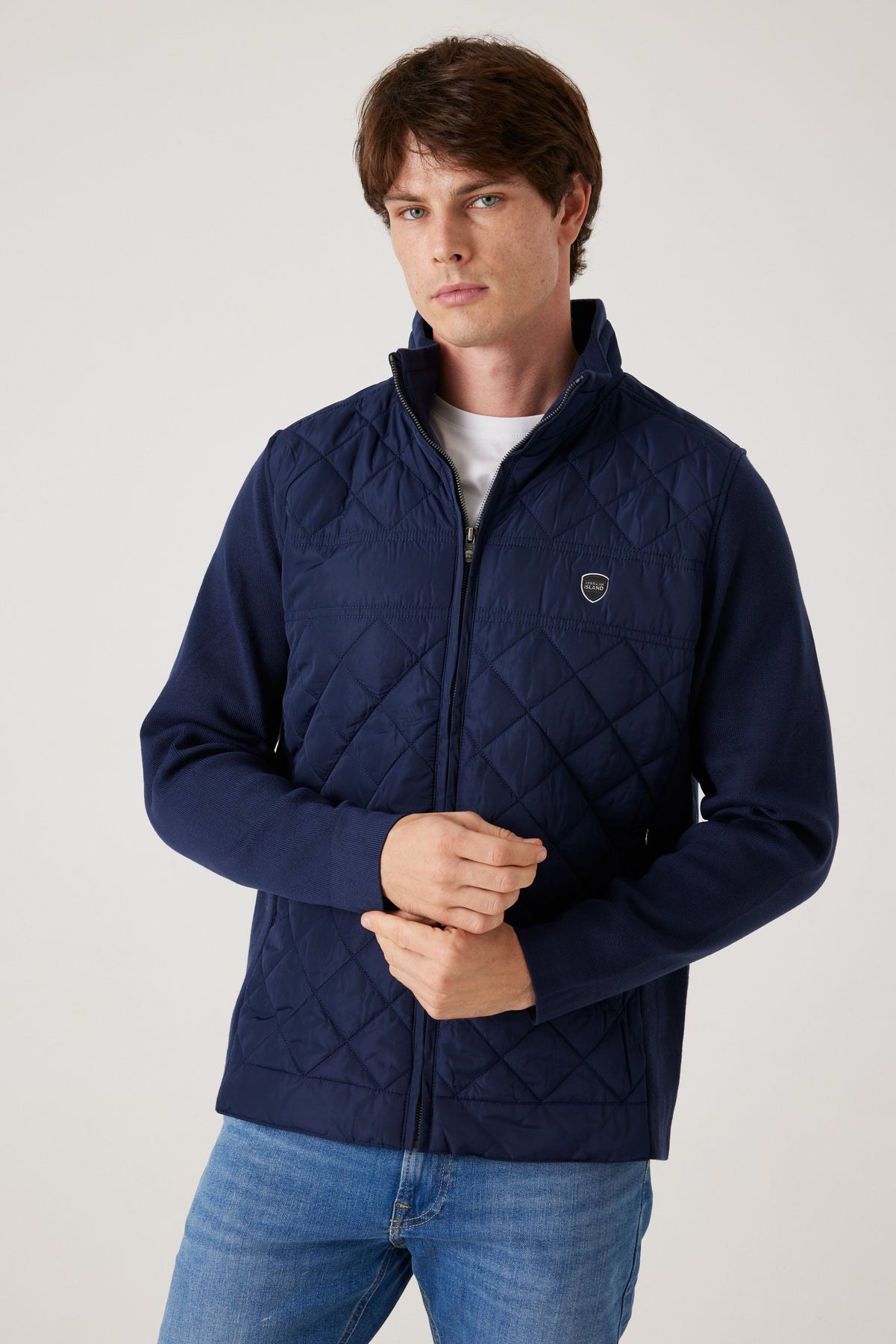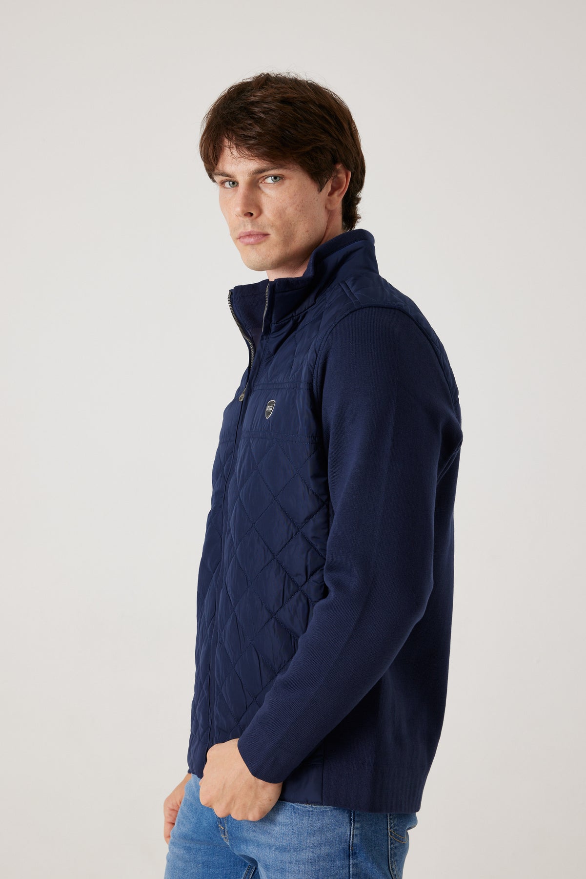 הג'קט ה משלב בצורה מושלמת בין עיצוב מודרני לבין פונקציונליות גבוהה. החזית המרופדת בתיפורי יהלום מעניקה מראה אלגנטי ומוקפד, בעוד שהשרוולים מבד סריג נעים מספקים גמישות, חום ונוחות אידאלית ליום-יום.
