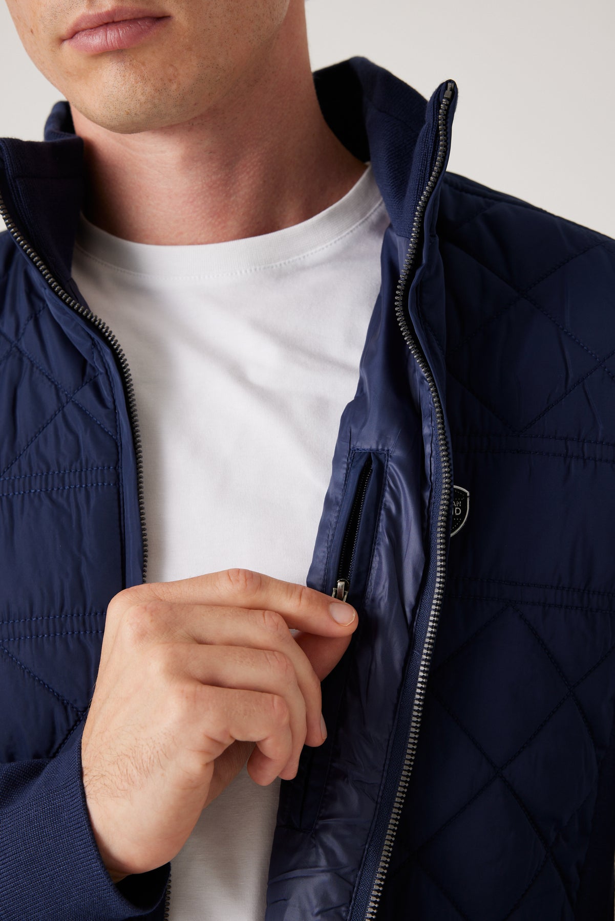 הבד הקדמי שומר על חום מבלי להכביד, והגזרה המחמיאה הופכת אותו לפריט על-זמני שמתאים הן לשגרה והן ליציאה בערב. הג'קט כולל רוכסן מלא, צווארון גבוה להגנה מקור ולוגו מתכתי עדין על החזה – פריט שמשלים את הלוק במראה יוקרתי ומקצועי.