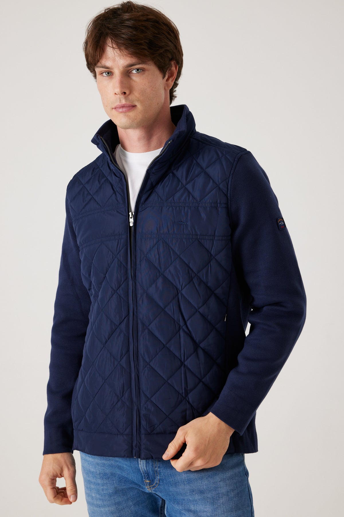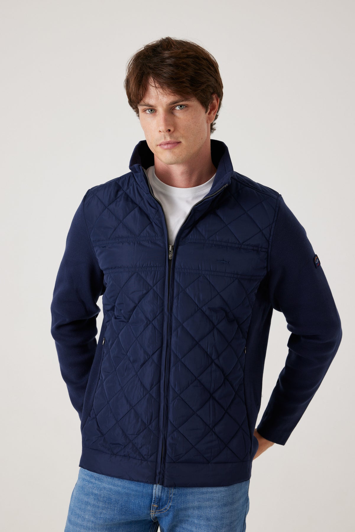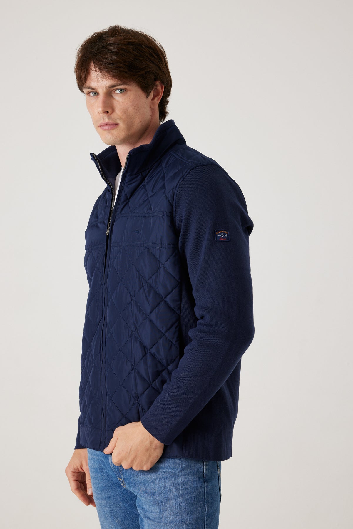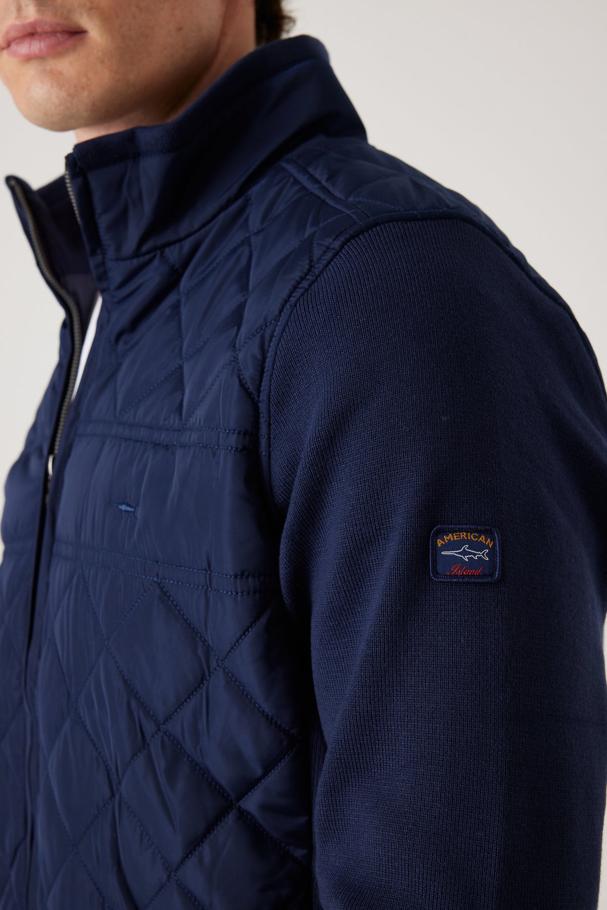 החלק הקדמי המרופד בעל תיפורי יהלום מעניק מראה יוקרתי ומודרני, תוך שמירה על חום ואיזון תרמי. השרוולים וסיומי הג'קט עשויים מבד סריג נעים ורך, שמוסיף גמישות, נוחות ותנועה טבעית לאורך היום.