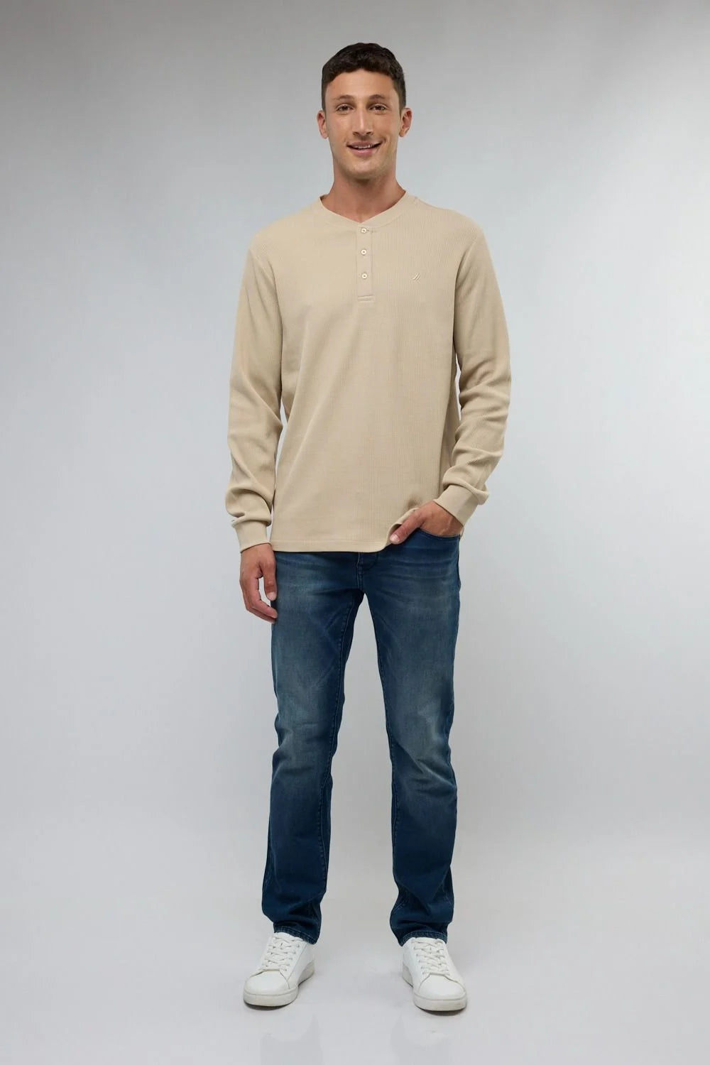 סווטשירט ארוך בגזרה נוחה ומחמיאה, עם צווארון כפתורים (Henley) המעניק מראה קז’ואל מתוחכם. עשוי מבד רך ונעים למגע, מחמם במידה הנכונה ומתאים לשימוש יומיומי – מהעבודה ועד סופי שבוע רגועים. הצבע השחור הקלאסי מאפשר שילוב קל עם כל פריט במלתחה, מג’ינס פשוט ועד מכנסיים מחוייטים למראה מוקפד יותר.