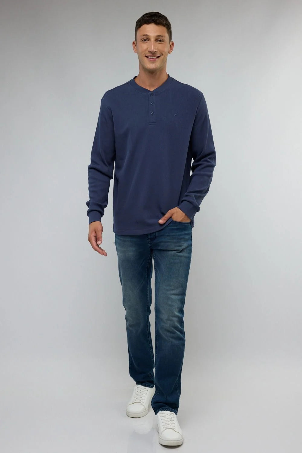 סווטשירט ארוך בגזרה נוחה ומחמיאה, עם צווארון כפתורים (Henley) המעניק מראה קז’ואל מתוחכם. עשוי מבד רך ונעים למגע, מחמם במידה הנכונה ומתאים לשימוש יומיומי – מהעבודה ועד סופי שבוע רגועים. הצבע השחור הקלאסי מאפשר שילוב קל עם כל פריט במלתחה, מג’ינס פשוט ועד מכנסיים מחוייטים למראה מוקפד יותר.