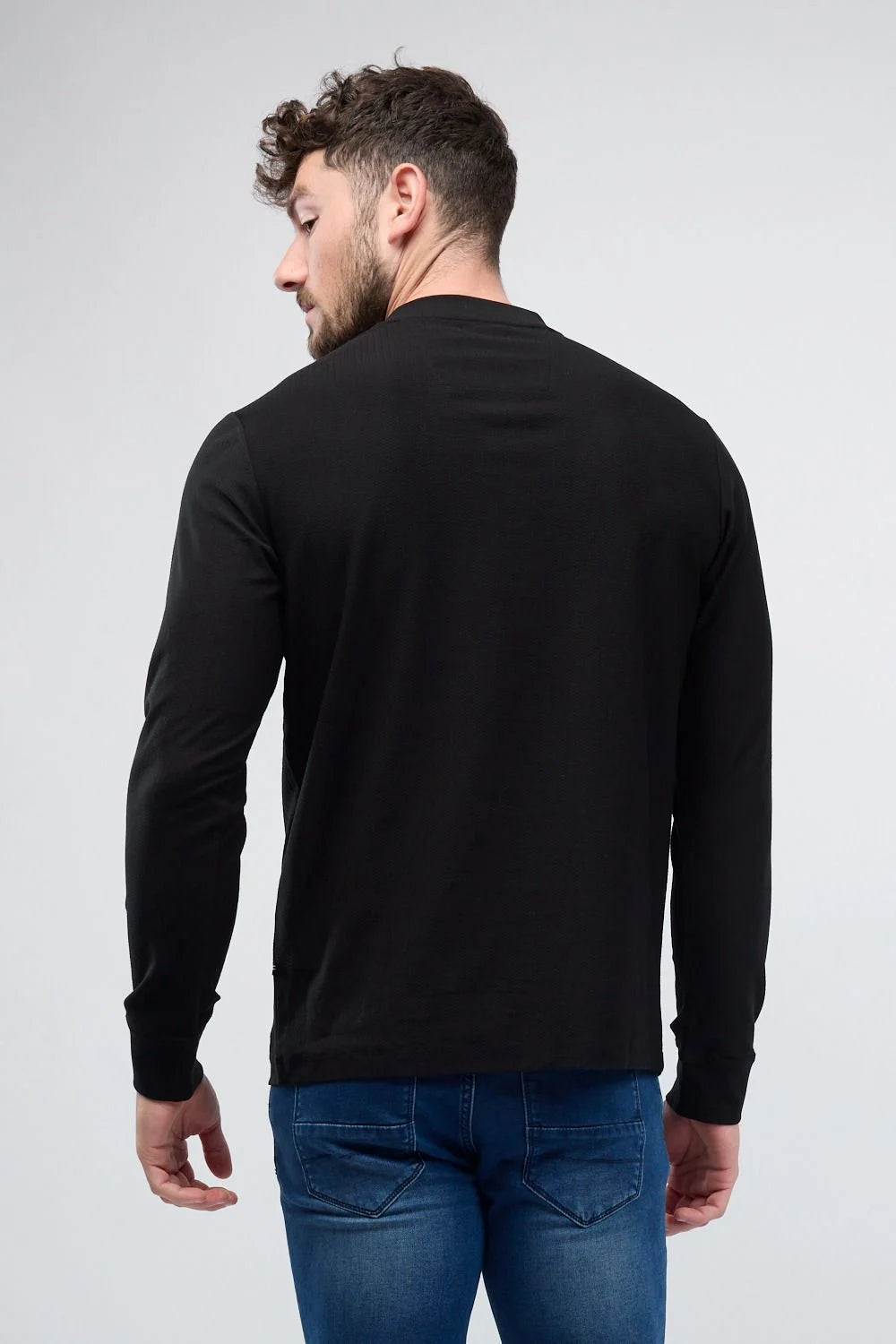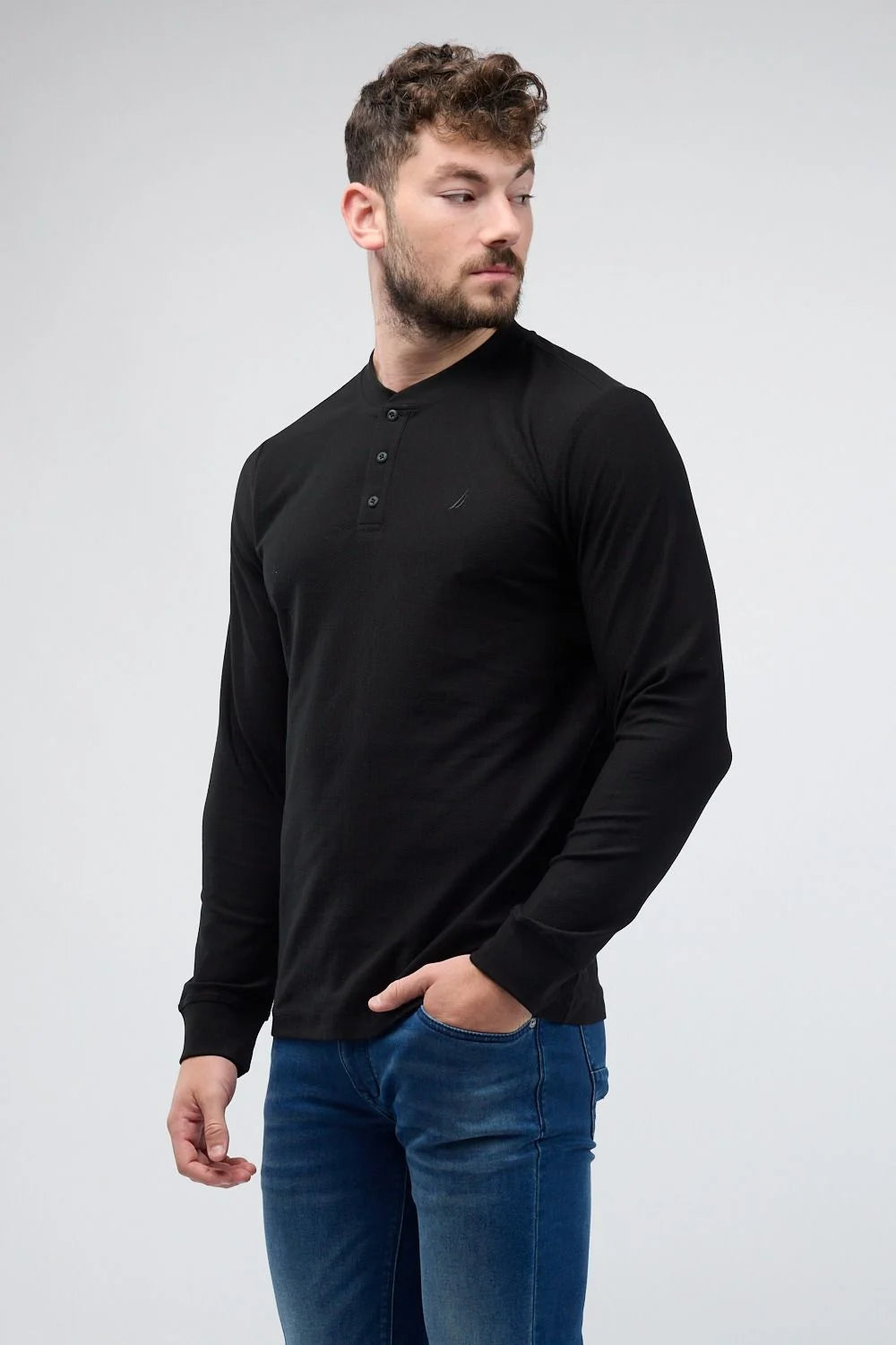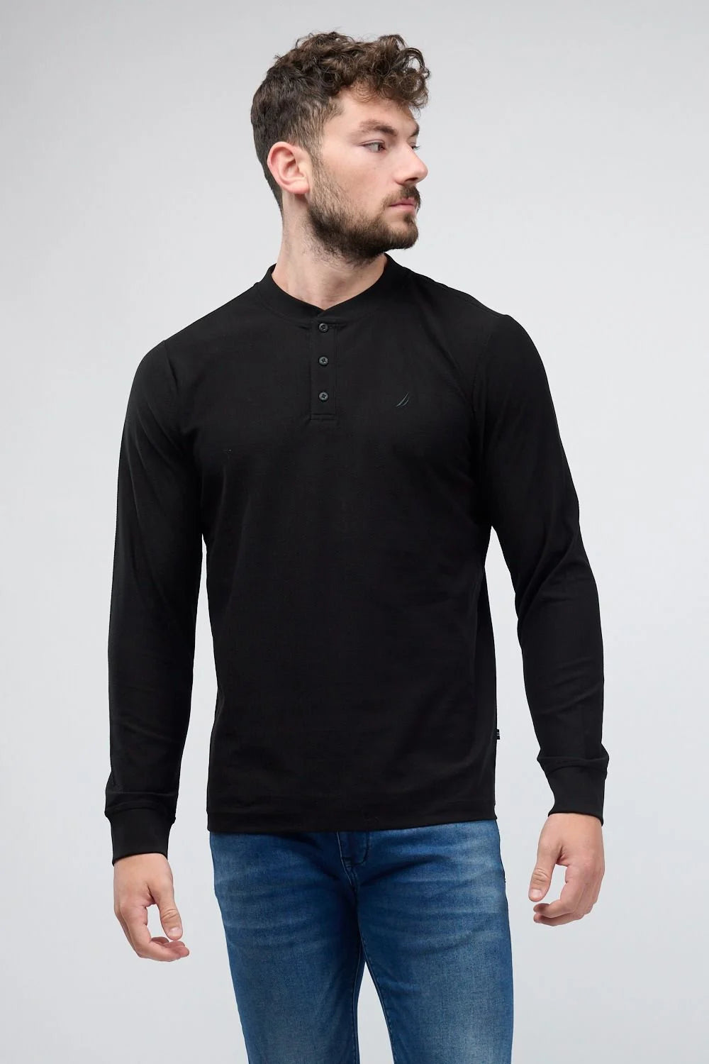 סווטשירט ארוך בגזרה נוחה ומחמיאה, עם צווארון כפתורים (Henley) המעניק מראה קז’ואל מתוחכם. עשוי מבד רך ונעים למגע, מחמם במידה הנכונה ומתאים לשימוש יומיומי – מהעבודה ועד סופי שבוע רגועים. הצבע השחור הקלאסי מאפשר שילוב קל עם כל פריט במלתחה, מג’ינס פשוט ועד מכנסיים מחוייטים למראה מוקפד יותר.