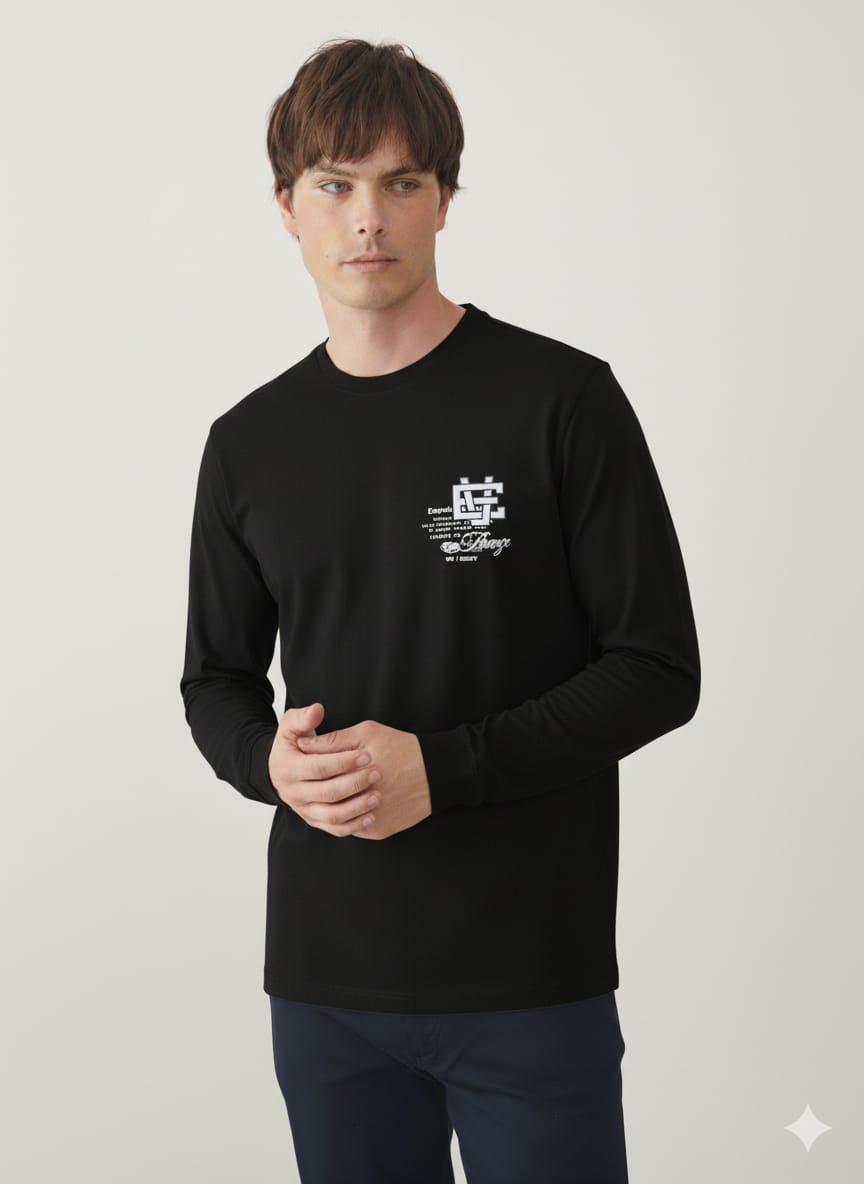 טישרט שרוול ארוך בגזרת SLIM - שחור