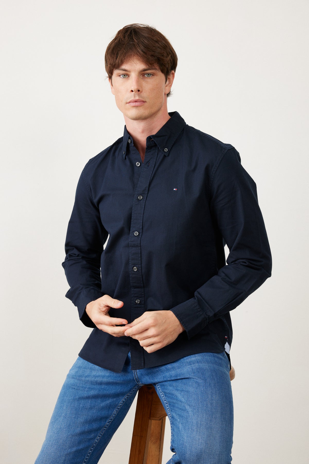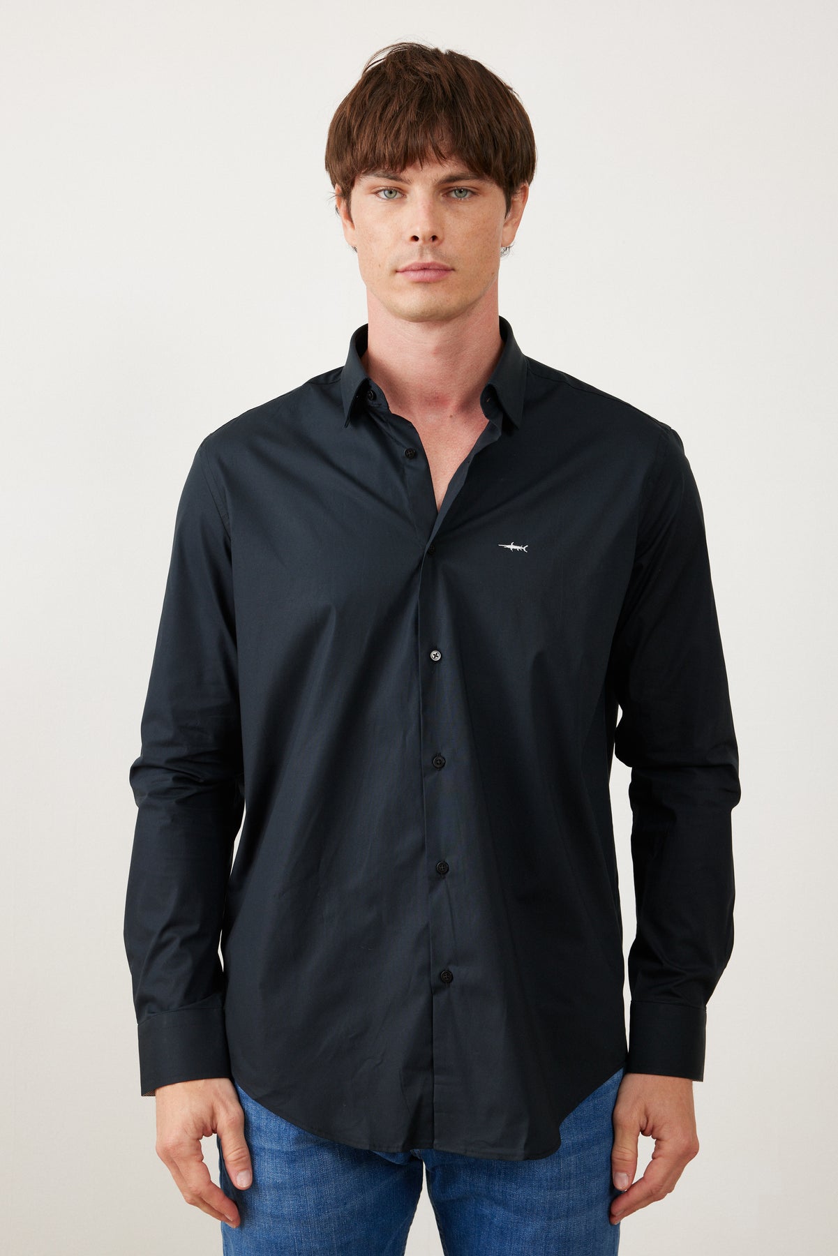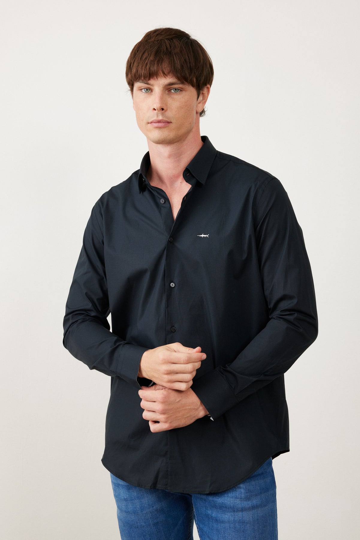 חולצה מכופתרת גזרת SLIM שרוול ארוך - שחור