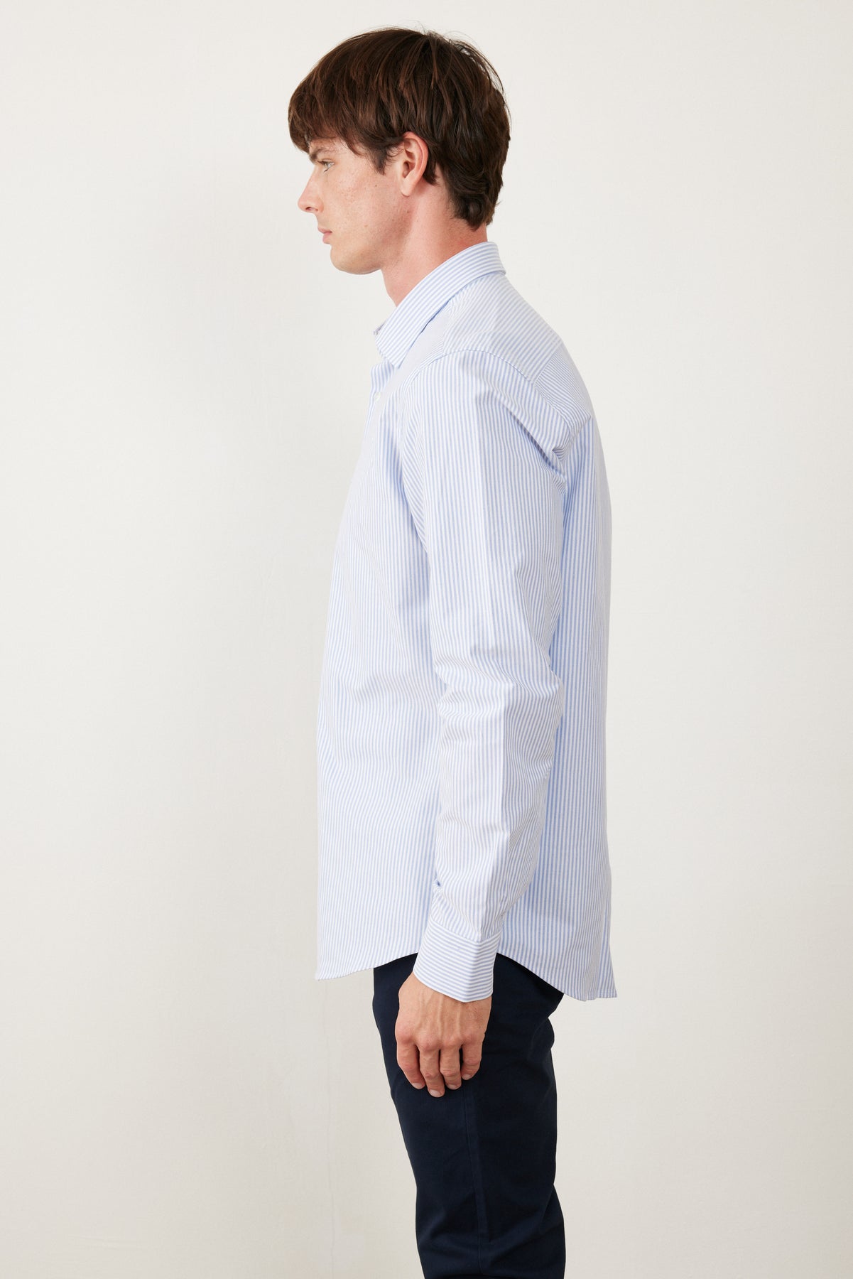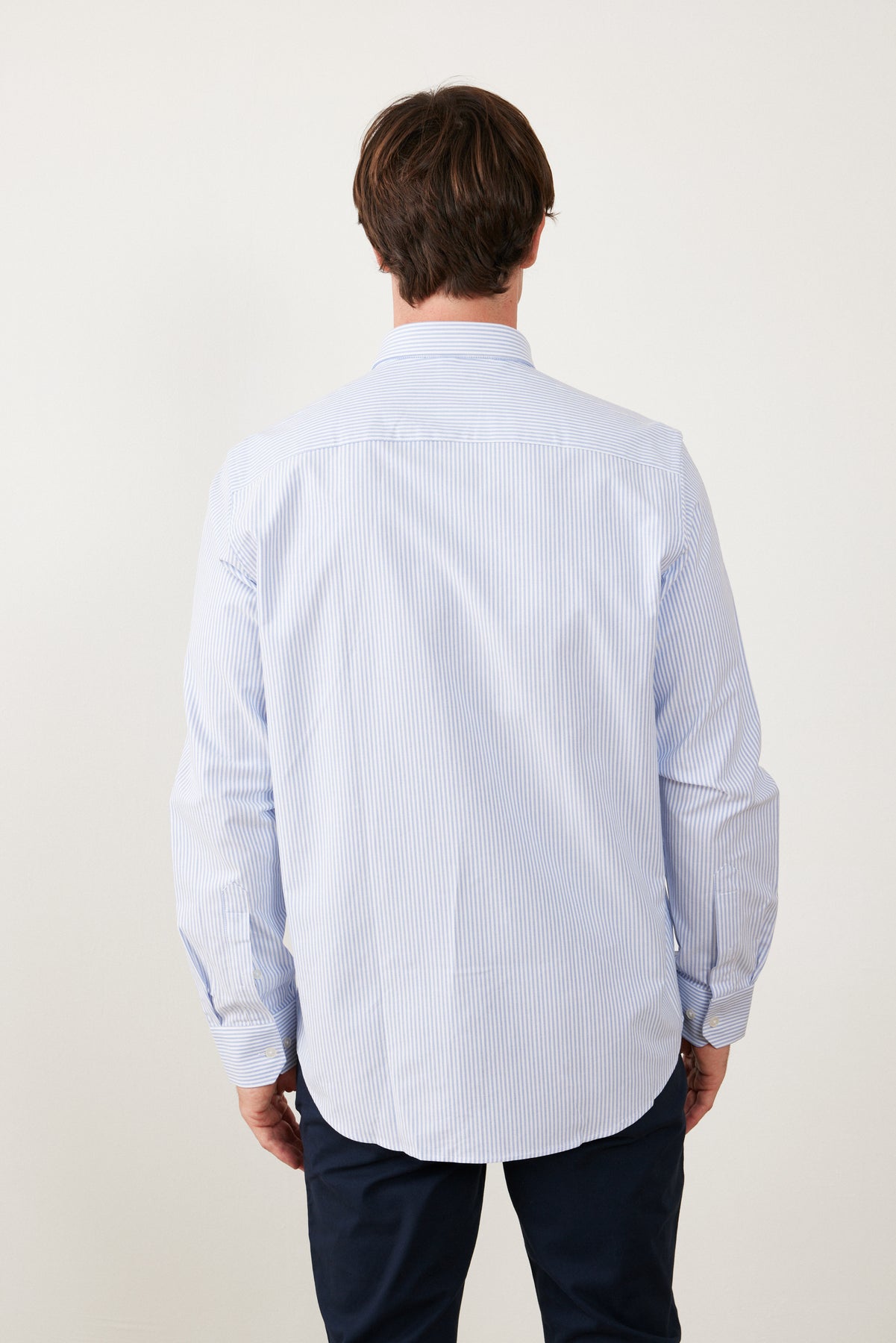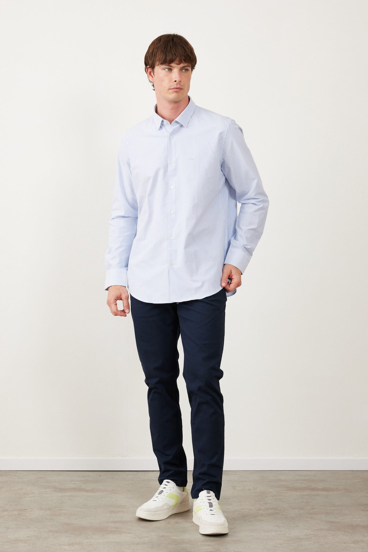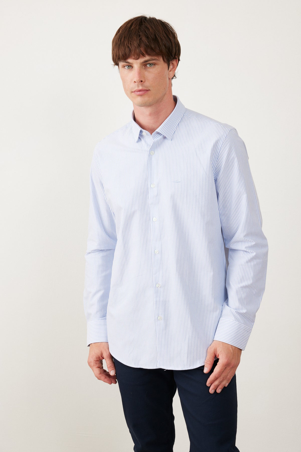 חולצה מכופתרת גזרת SLIM שרוול ארוך - תכלת פסים