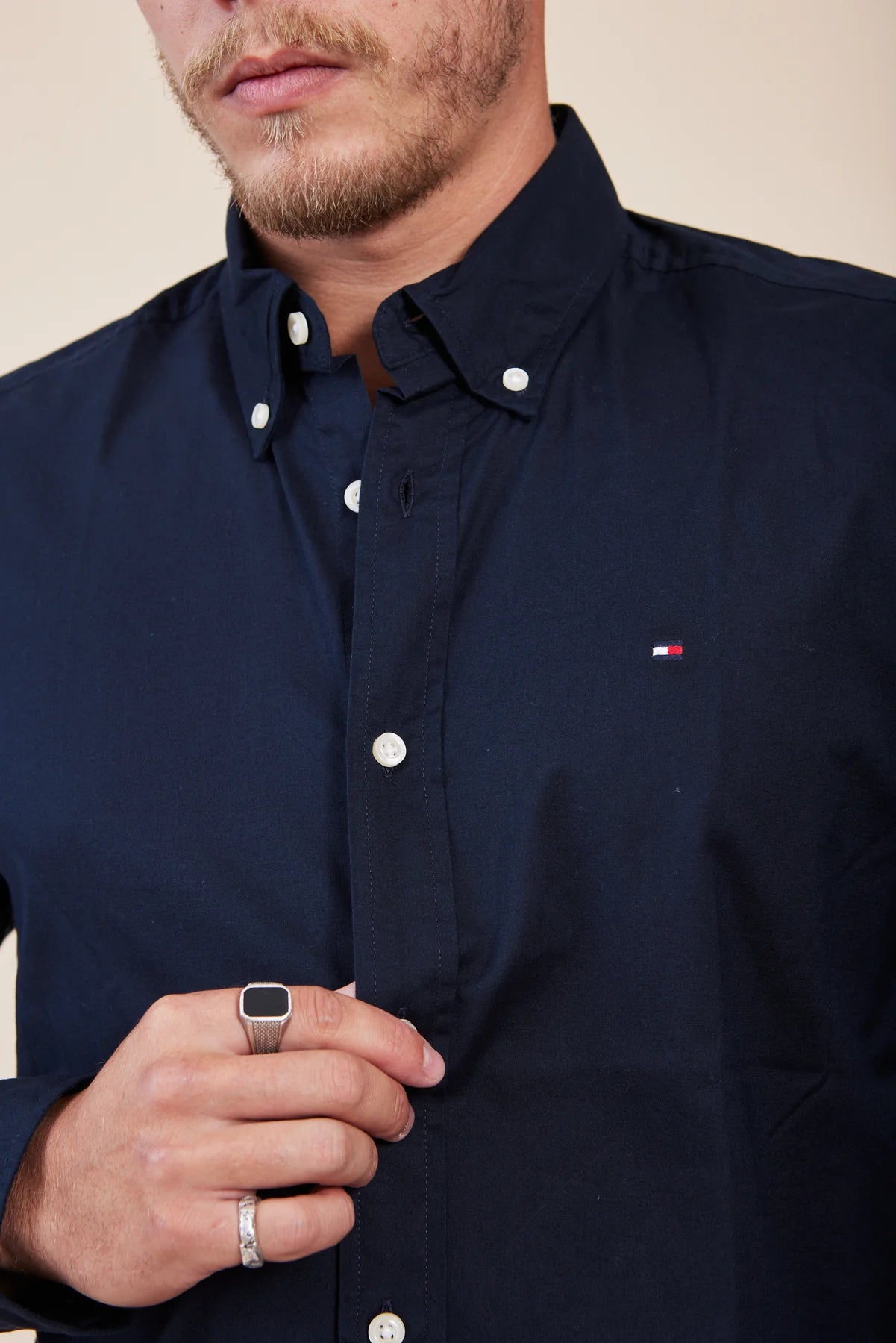 מכופתרת שרוול ארוך בגזרת SLIM- נייבי