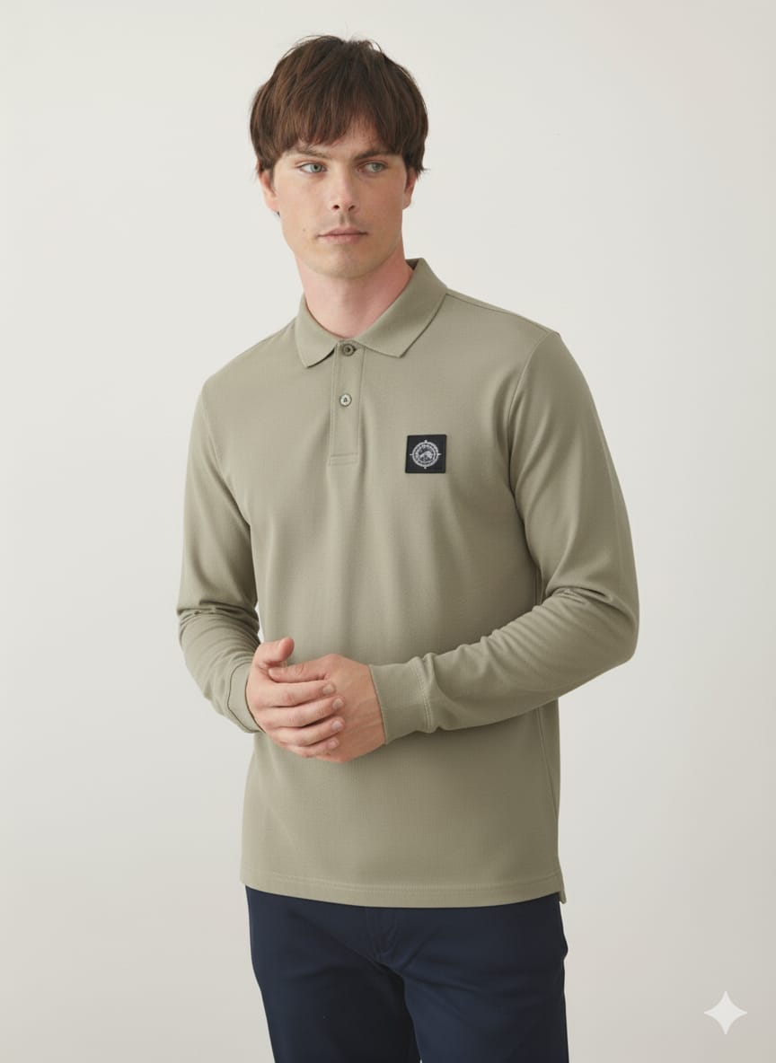 פולו שרוול ארוך בגזרת SLIM - ירוק