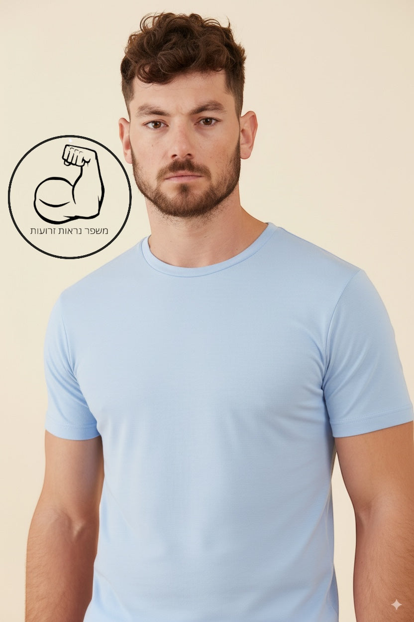 טישרט שרוול קצר צווארון עגול - תכלת
