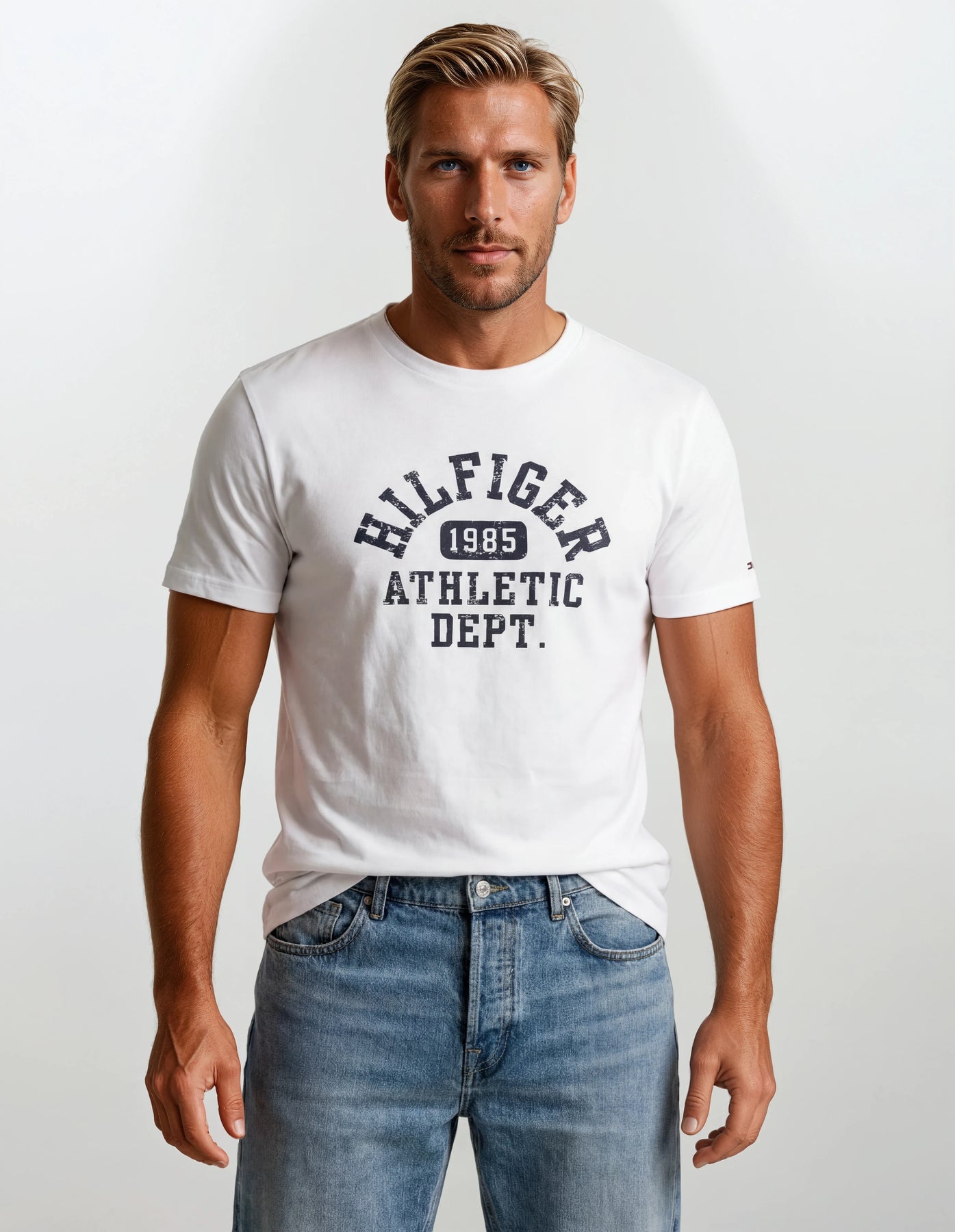 טישרט שרוול קצר - לבן בגזרת REGULAL, הרכה הבד: 100% כותנה