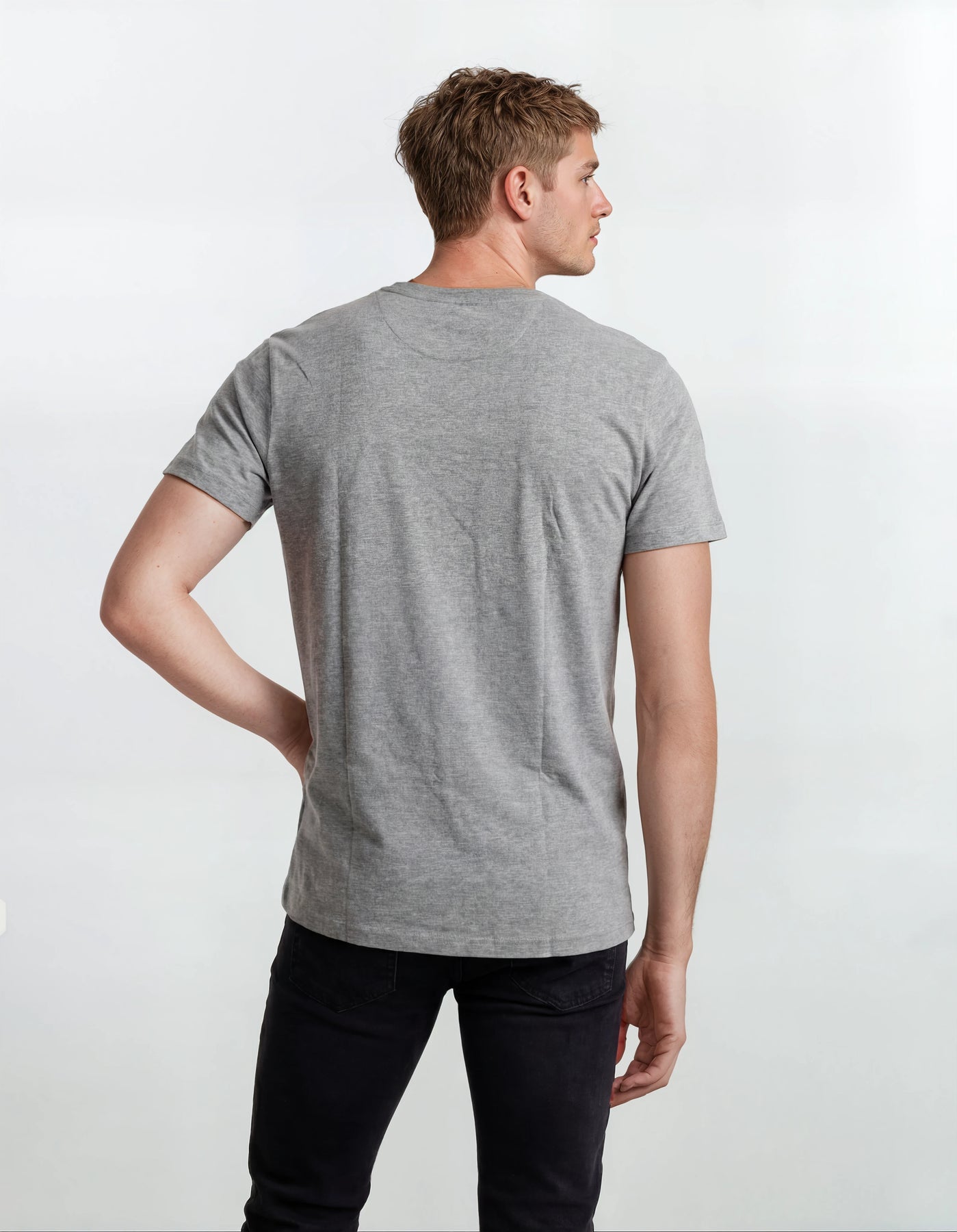 טישרט שרוול קצר - אפור בגזרת REGULAL, הרכה הבד: 100% כותנה