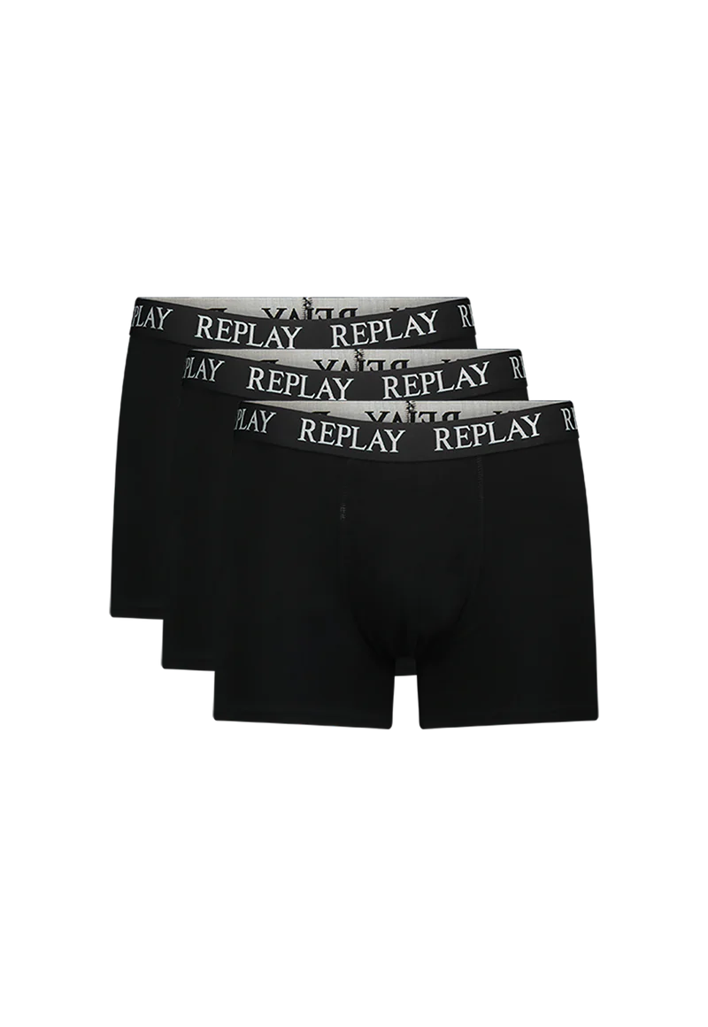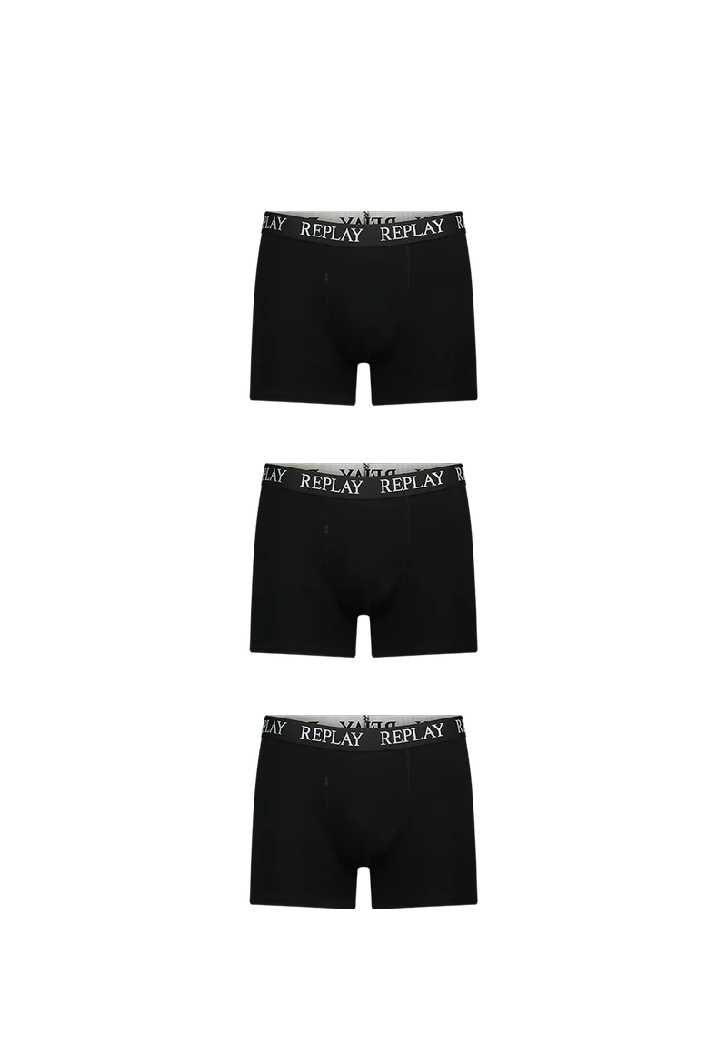 שלישיית תחתוני בוקסר בצבע שחור ממותג REPLAY מספקת נוחות יומיומית ואיכות בד גבוהה. הסט כולל שלושה זוגות תחתוני בוקסר