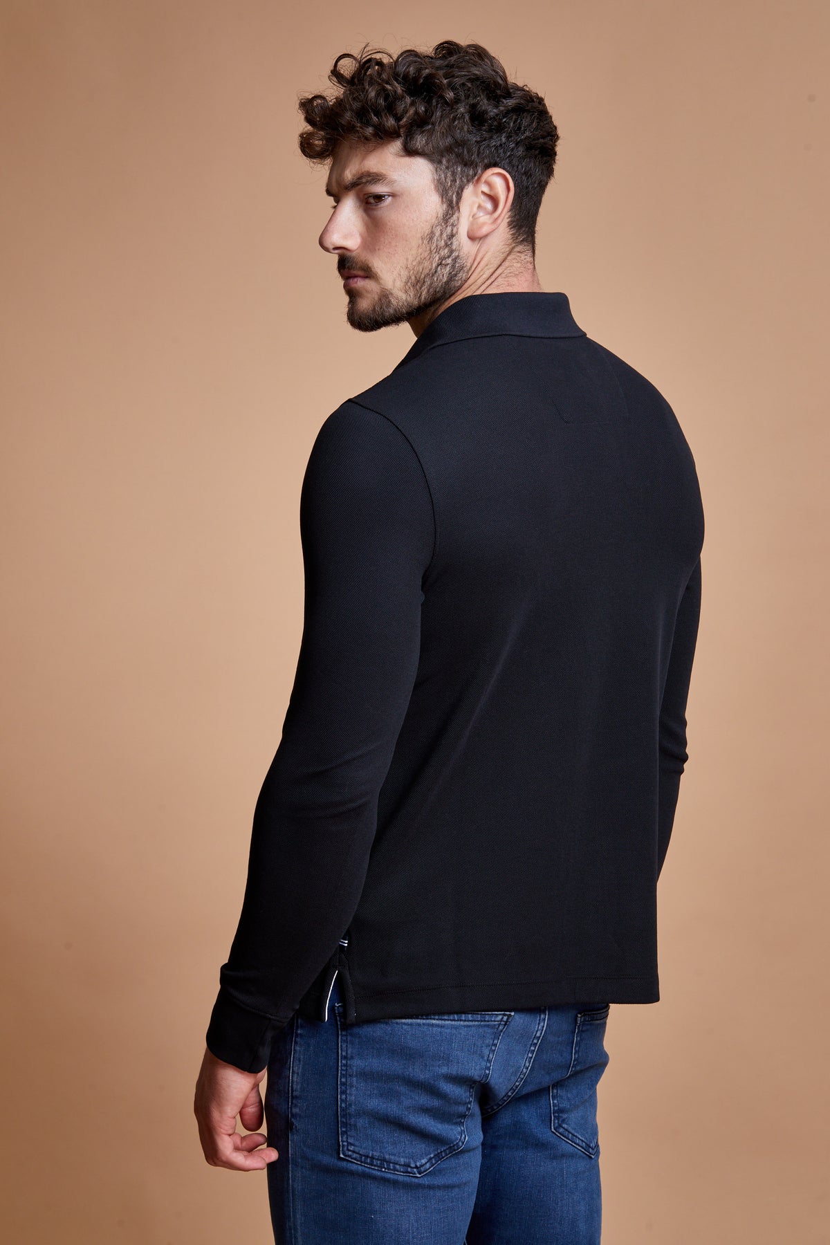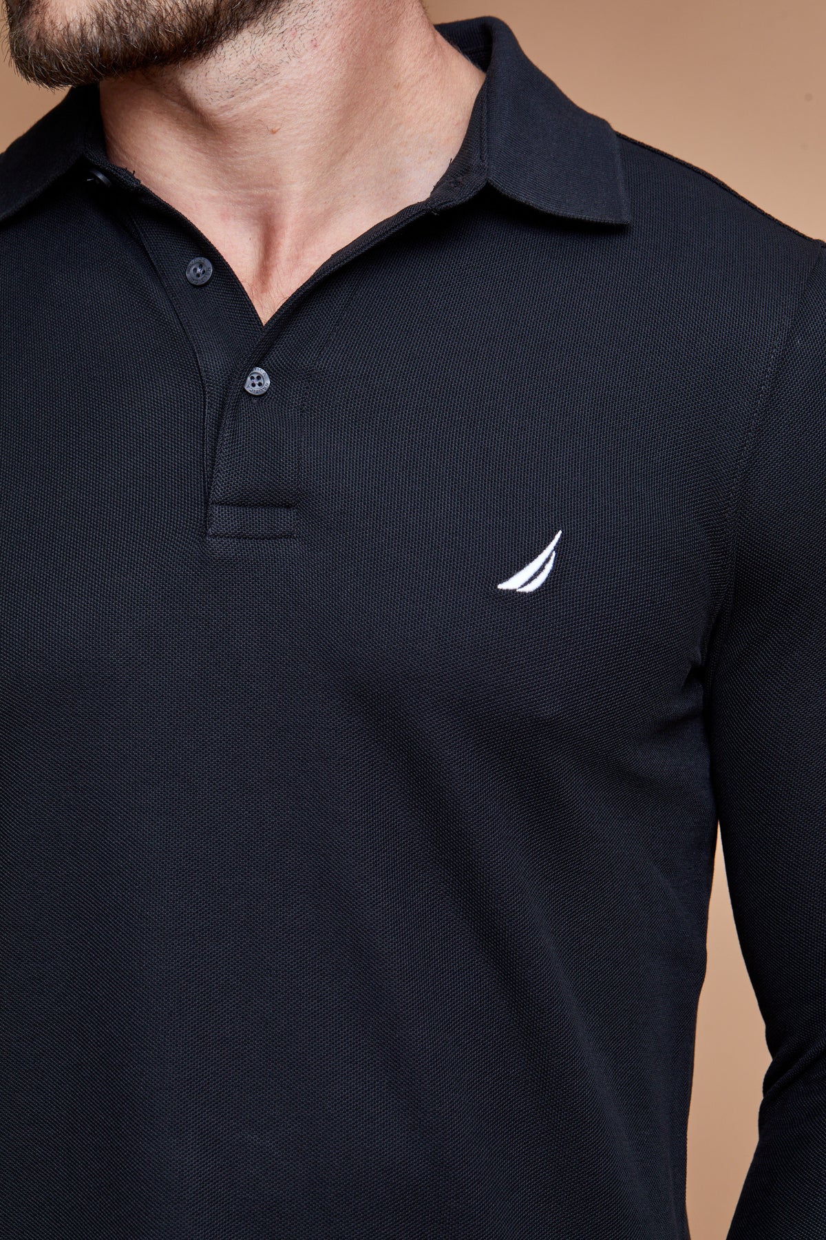 • חולצת פולו שרוול ארוך בצבע שחור של NAUTICA