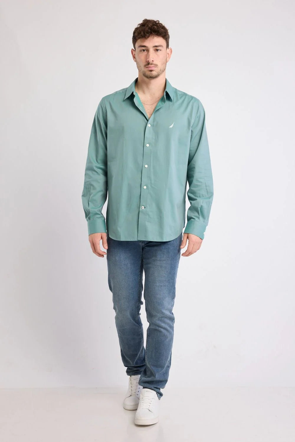 חולצה מכופתרת לגברים בסגנון אלגנטי מרשים, בעלת גזרה מחמיאה. מעוצבת עם צווארון ושרוולים ארוכים בשילוב