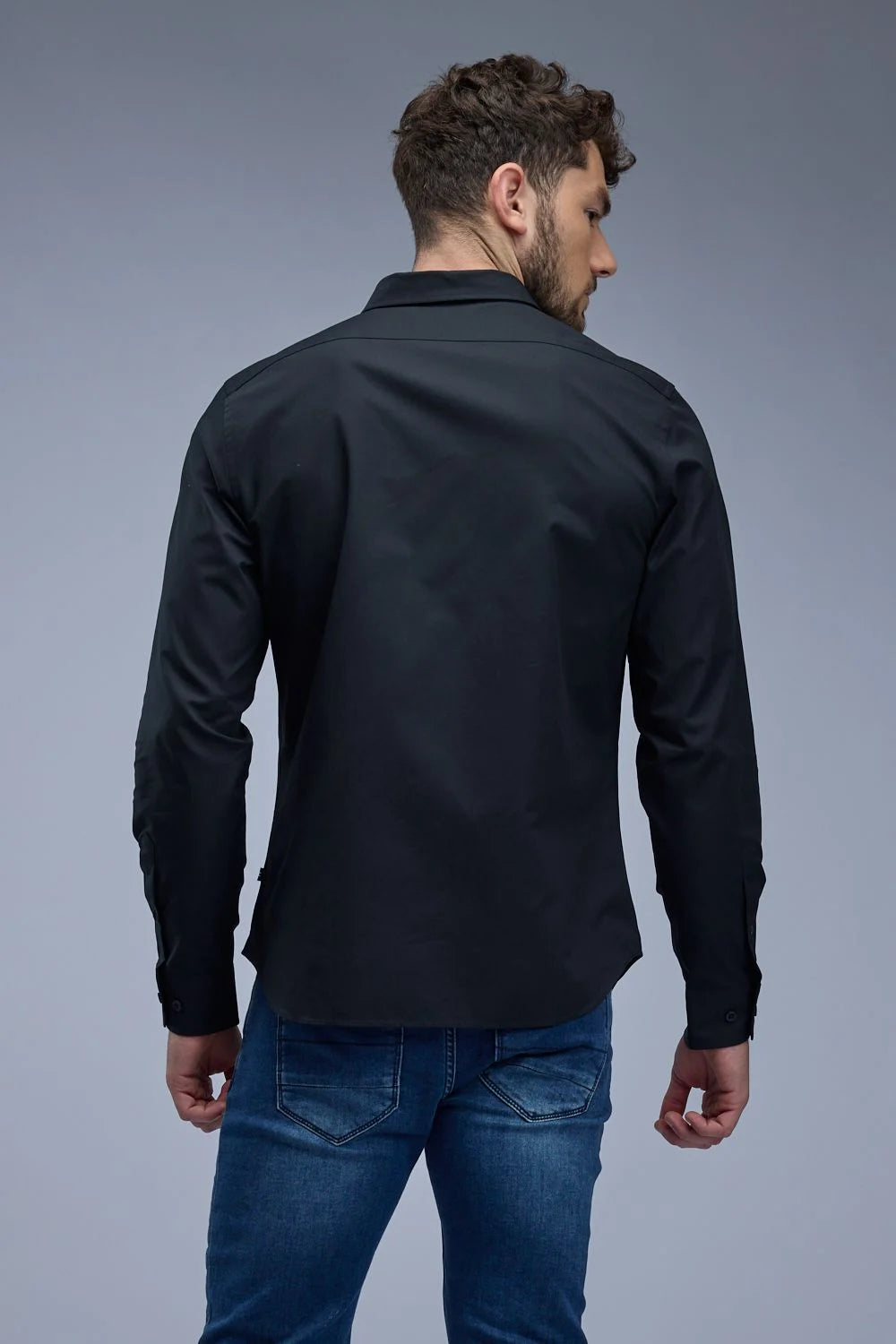 חולצה מכופתרת לגברים עם צווארון ושרוולים ארוכים