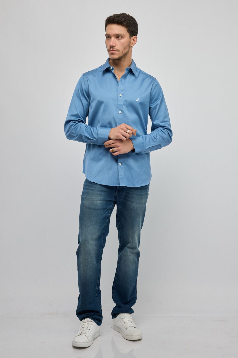 חולצה מכופתרת לגברים עם צווארון ושרוולים ארוכים