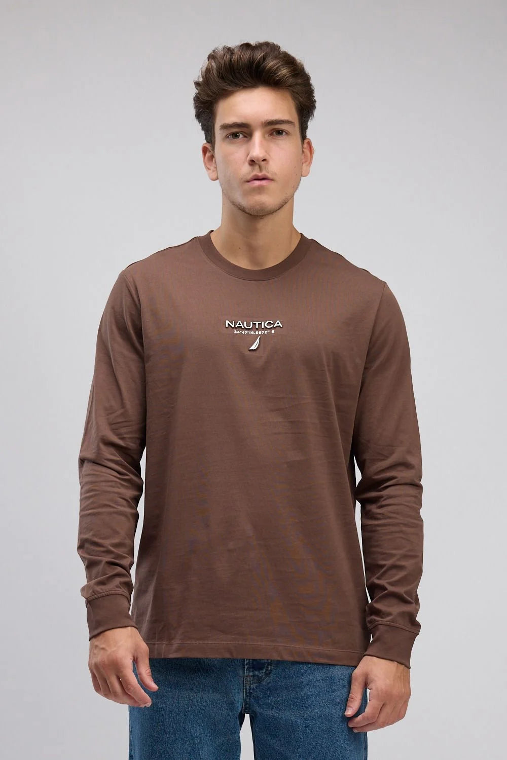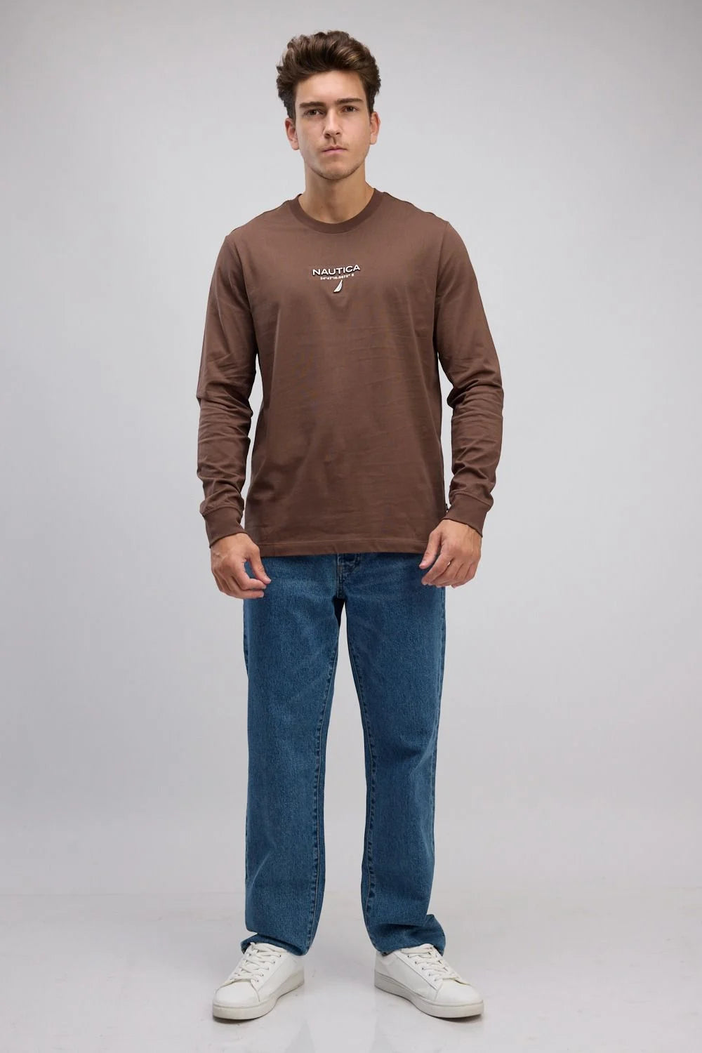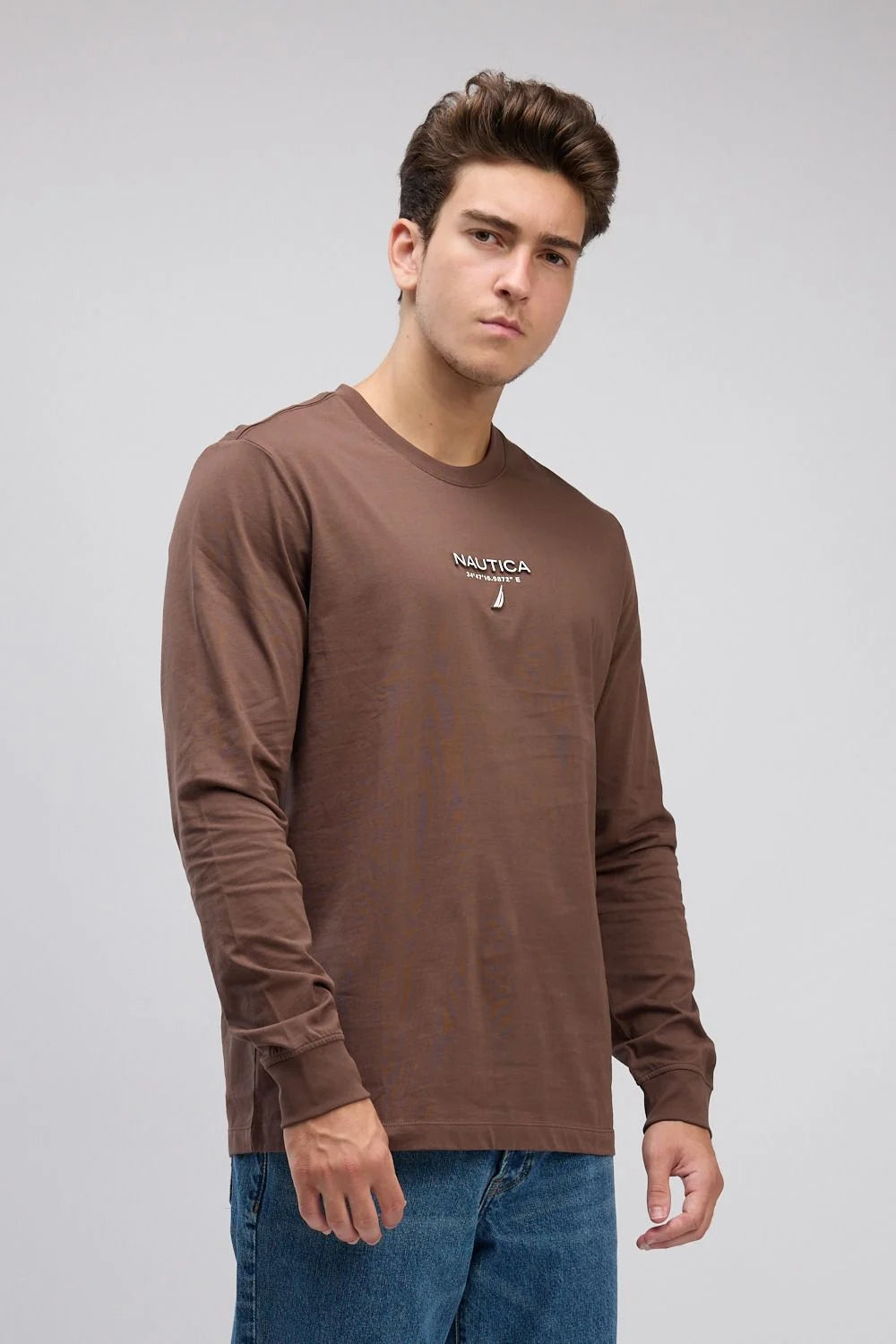 טי שירט איכותית לגברים עם צווארון עגול ושרוולים ארוכים מבית Nautica