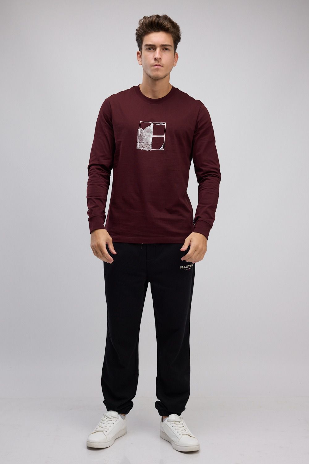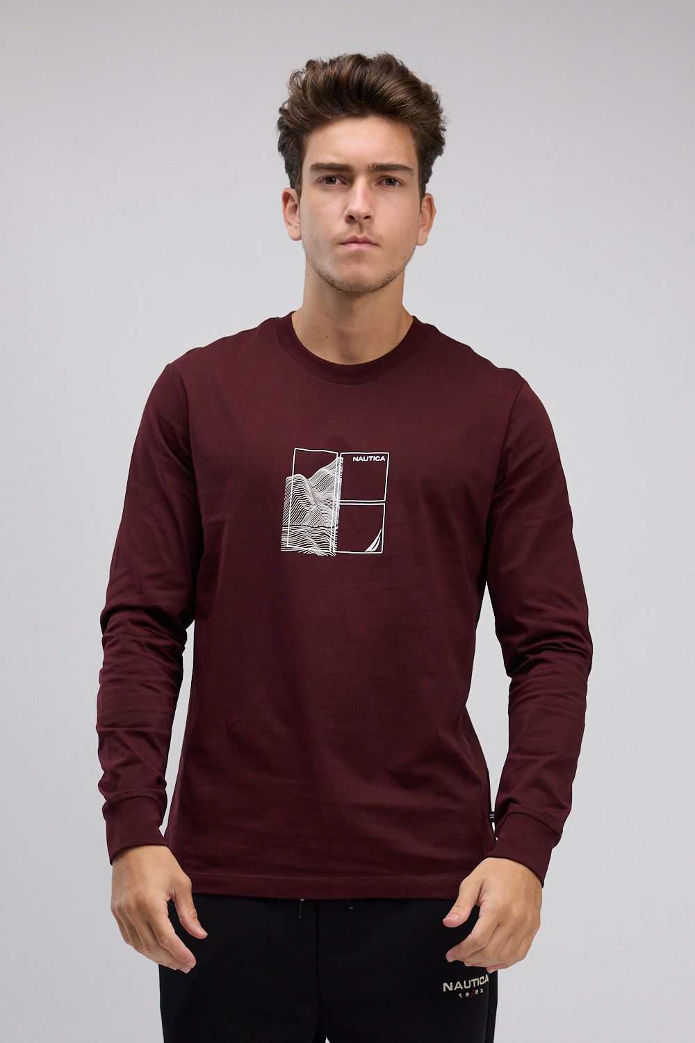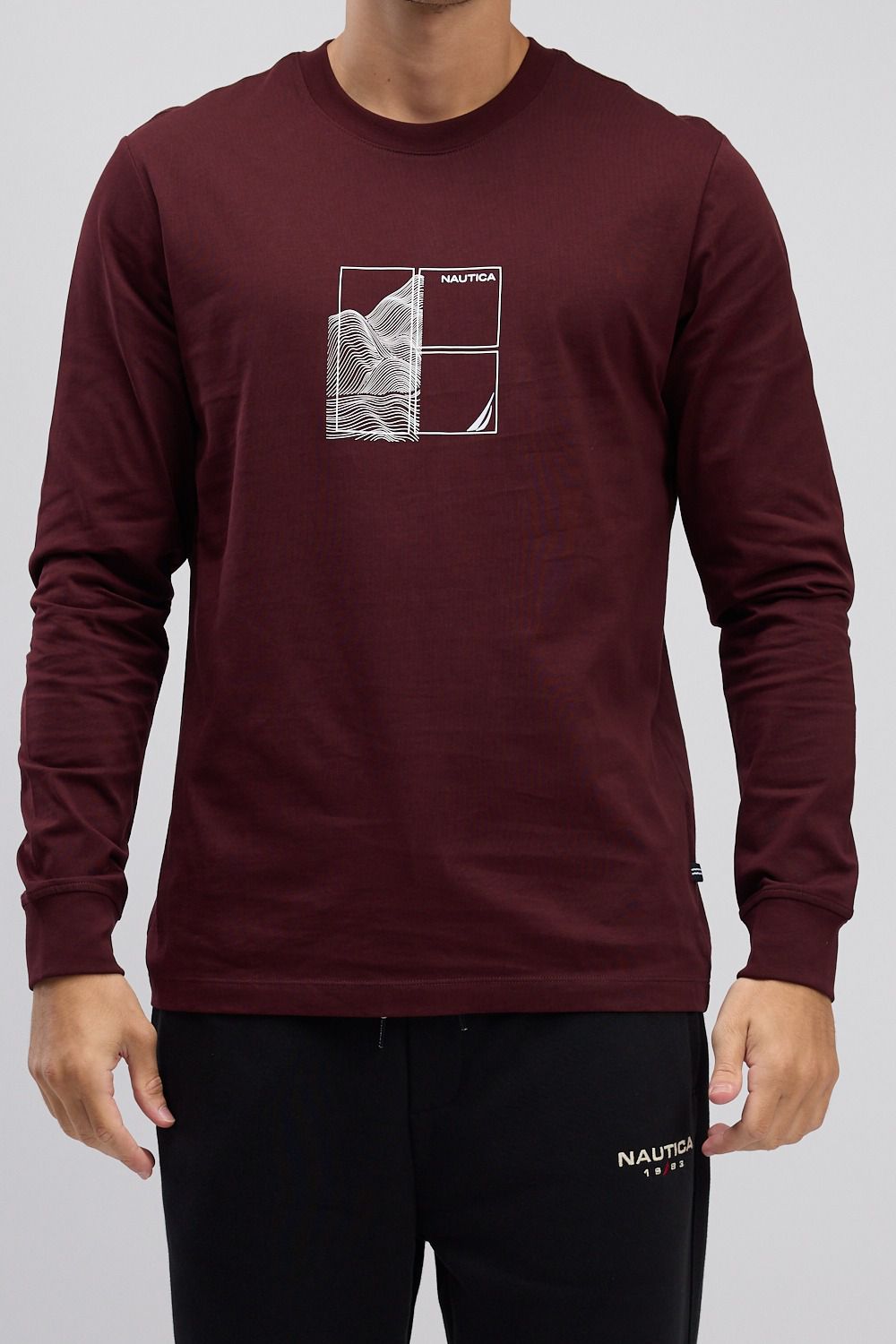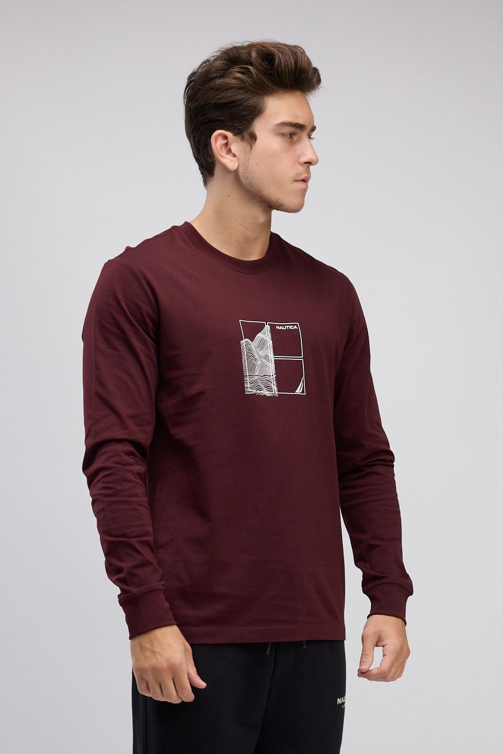 טי שירט איכותית לגברים עם צווארון עגול ושרוולים ארוכים מבית Nautica