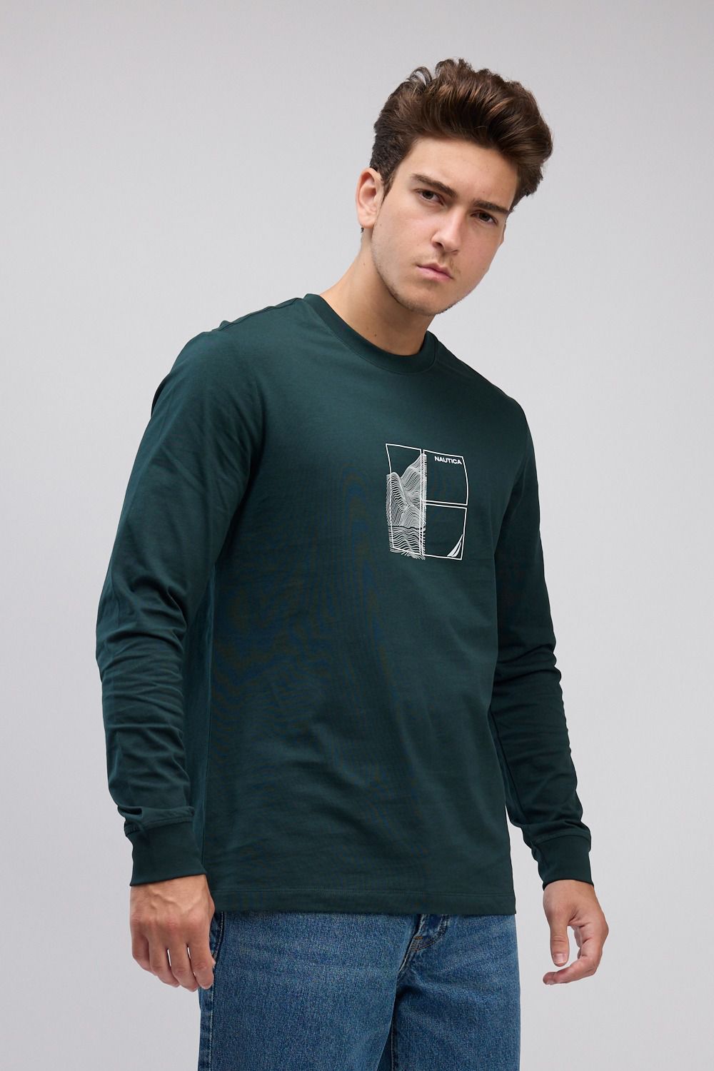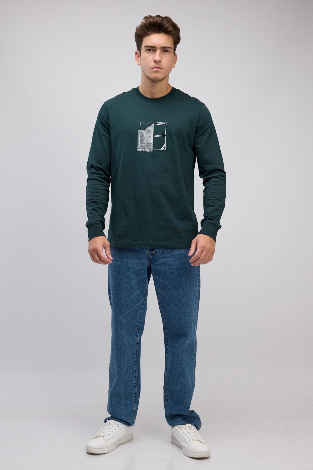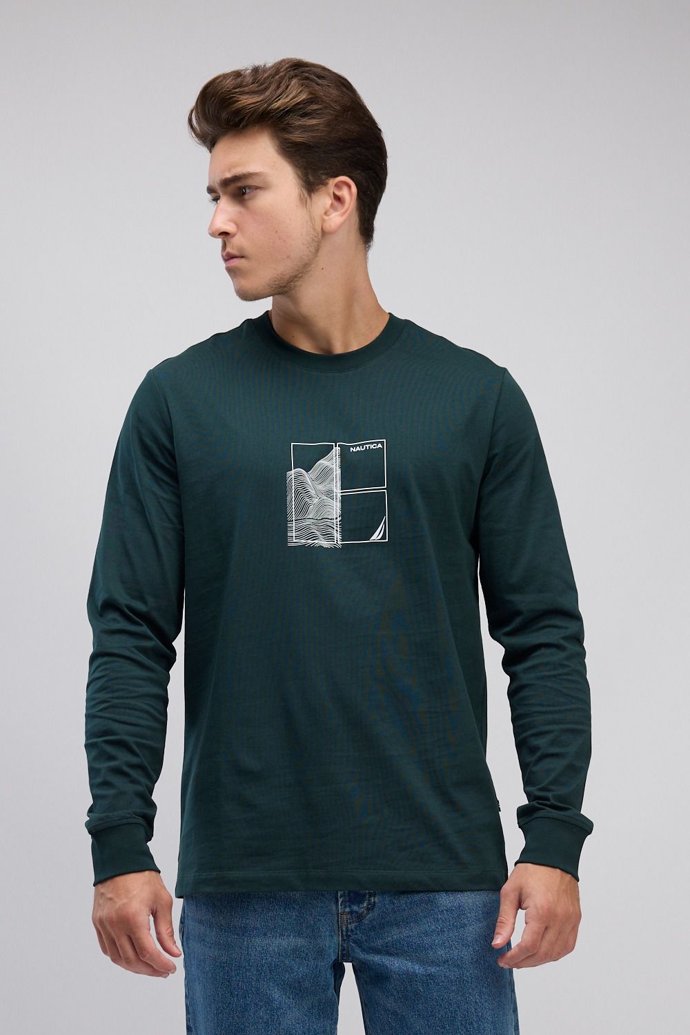 טי שירט איכותית לגברים עם צווארון עגול ושרוולים ארוכים מבית Nautica