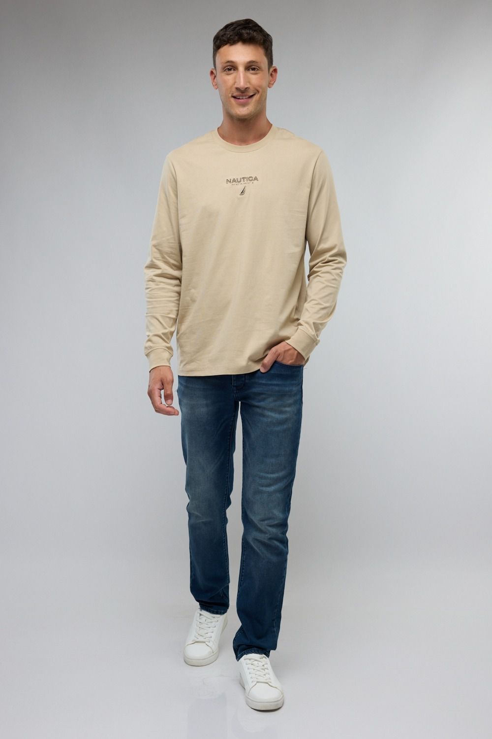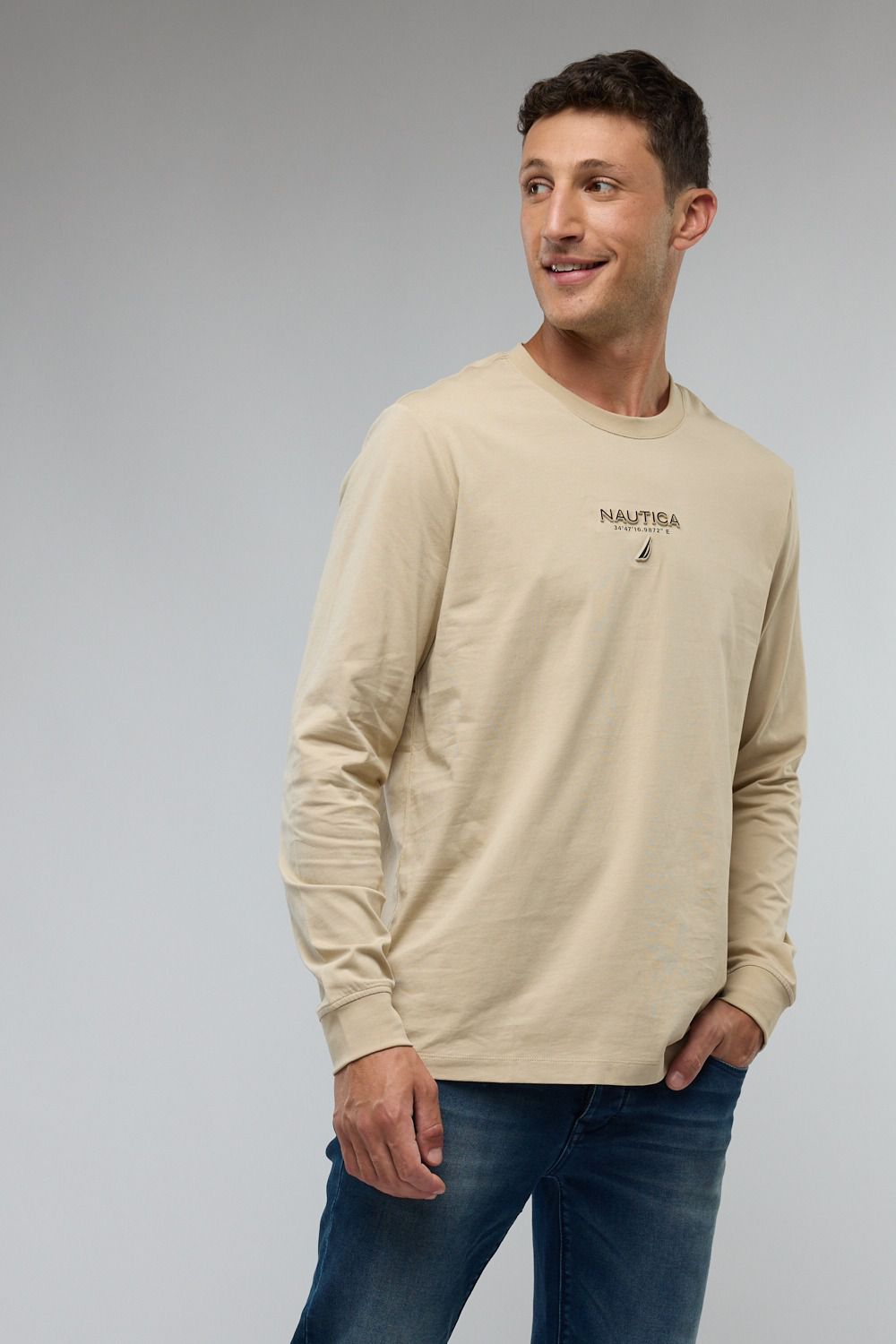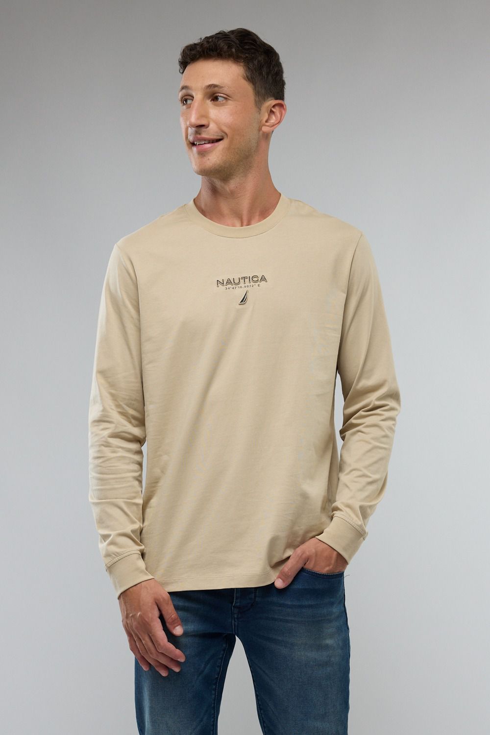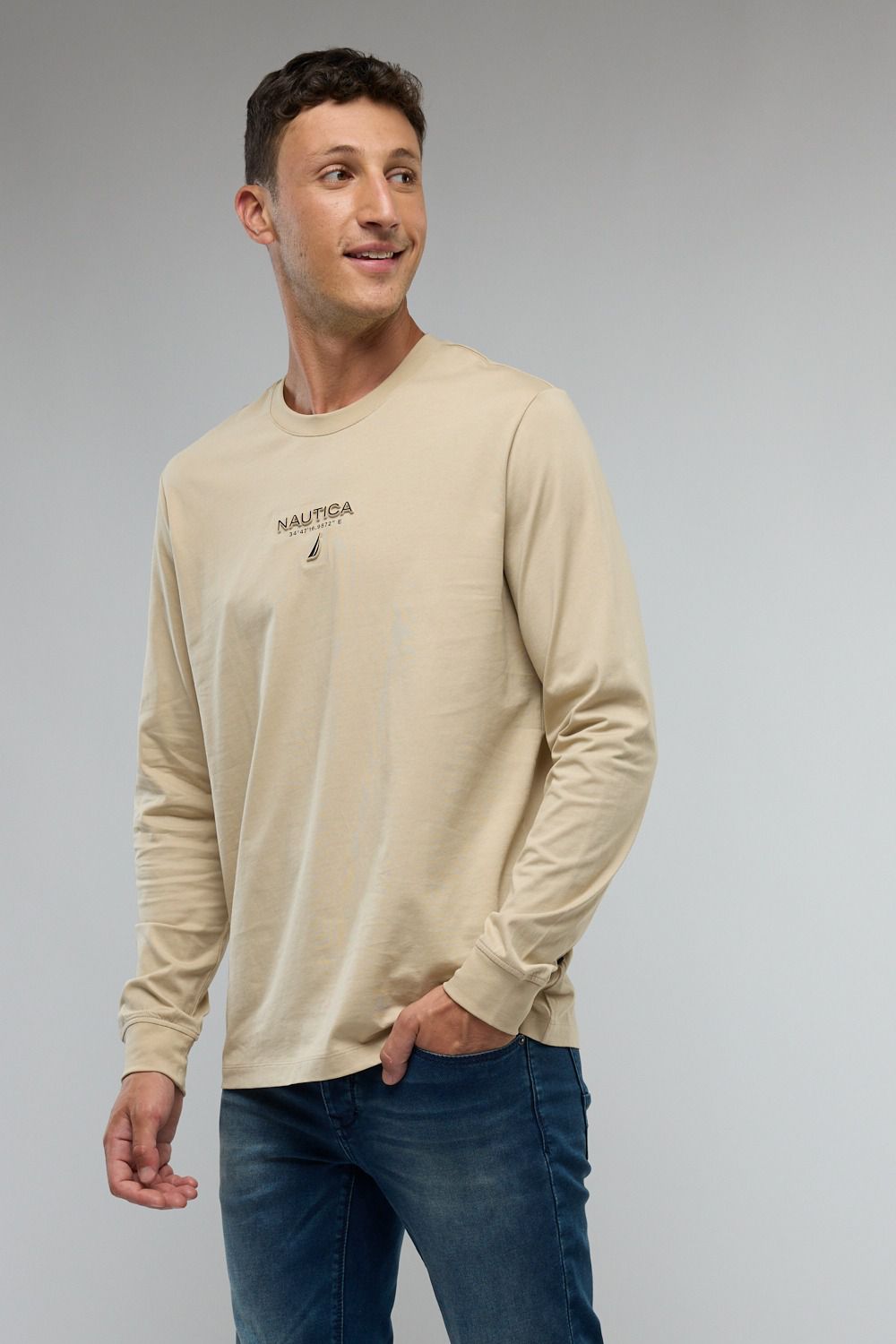 טי שירט איכותית לגברים עם צווארון עגול ושרוולים ארוכים מבית Nautica