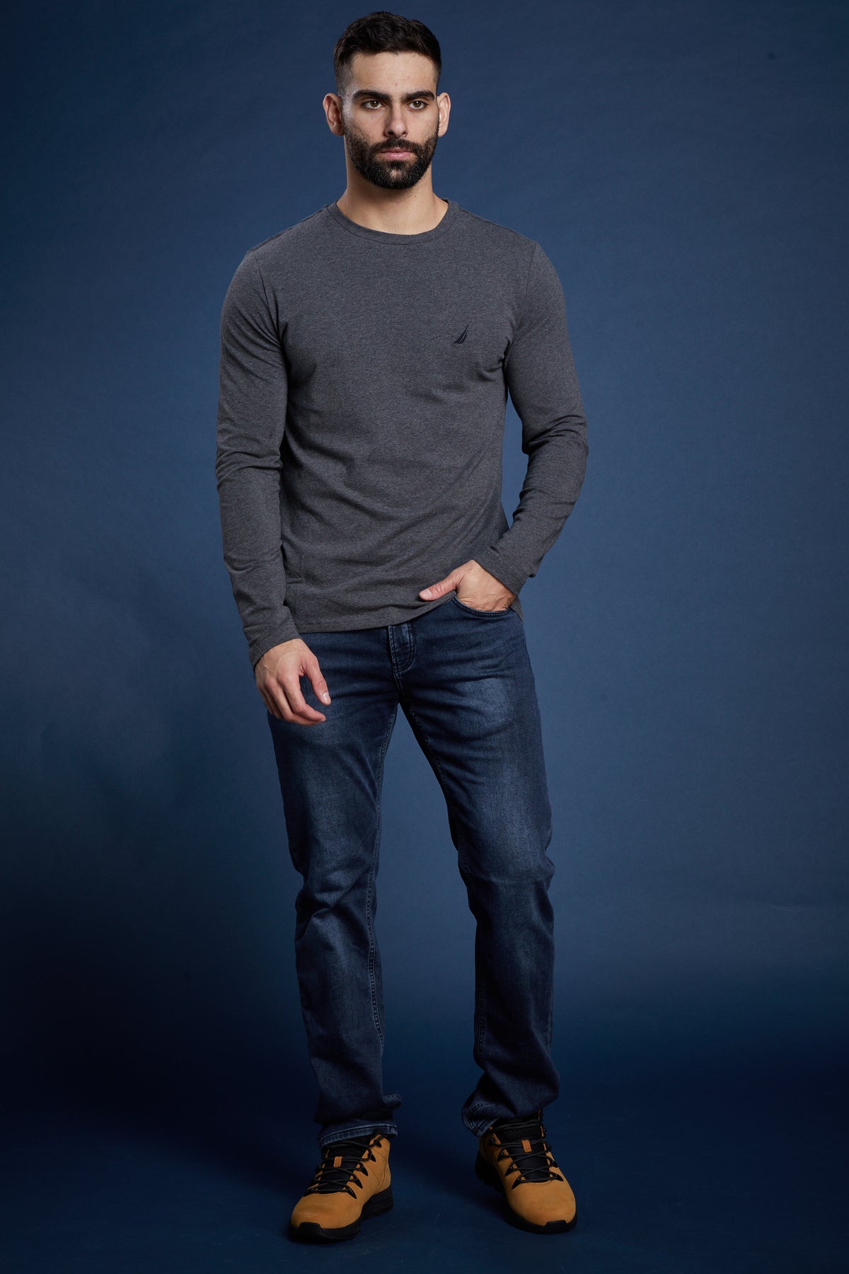• טישירט שרוול ארוך בצבע אפור של NAUTICA