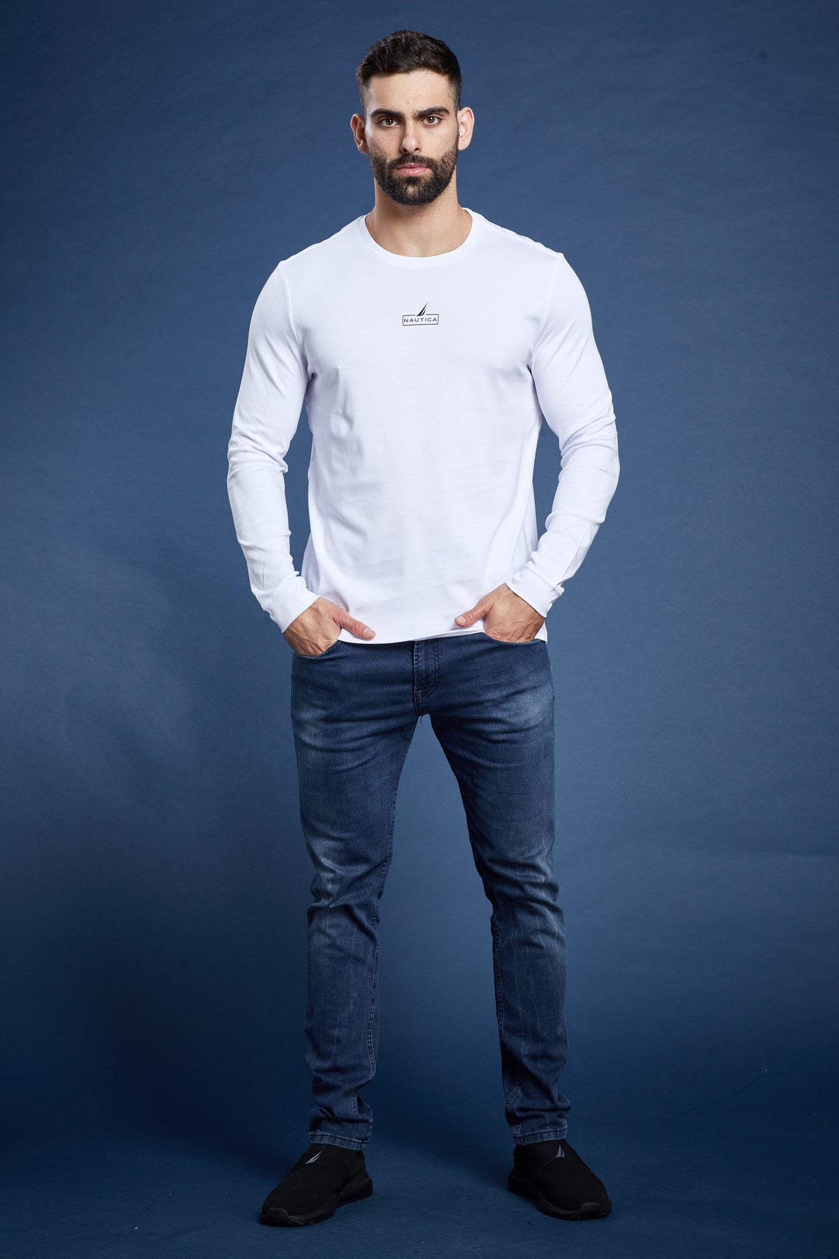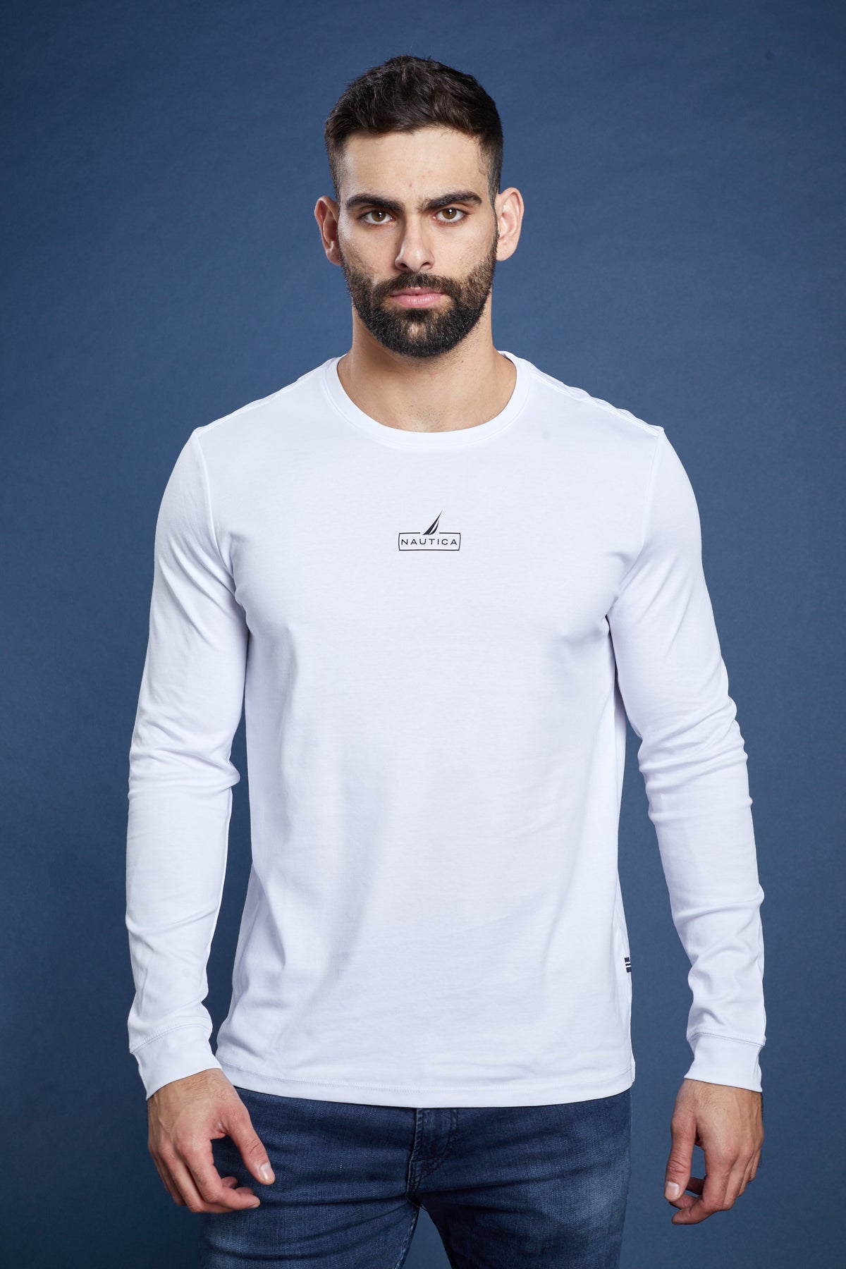 • טישירט שרוול ארוך בצבע לבן של NAUTICA