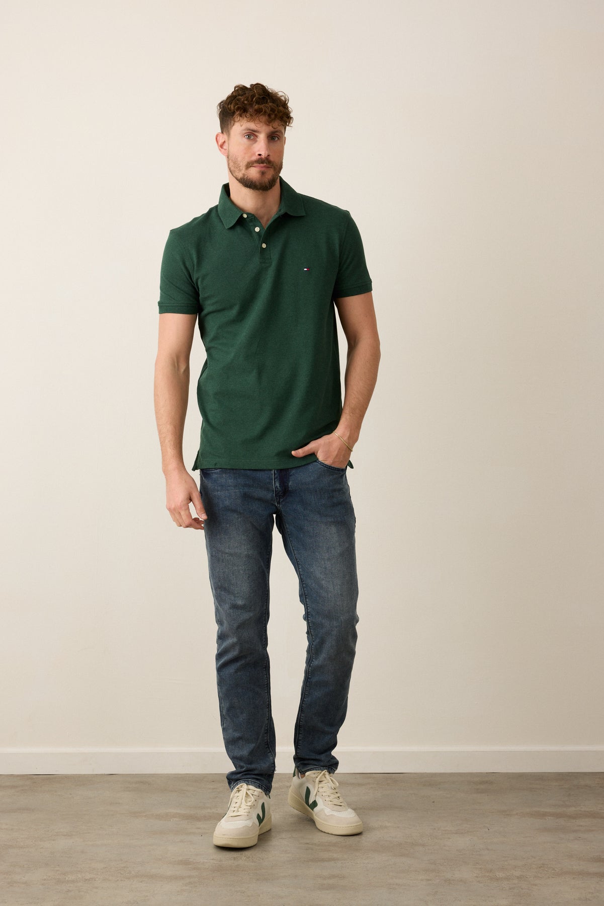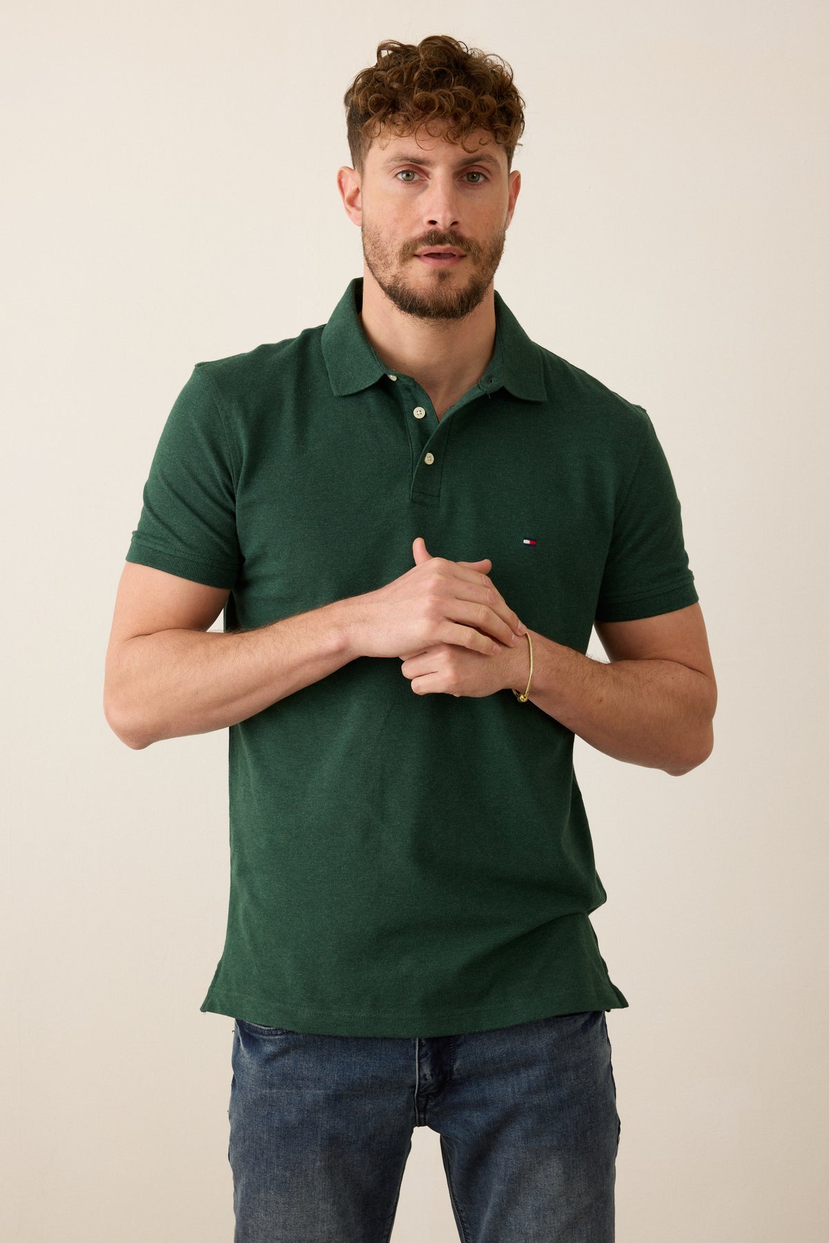 חולצת פולו שרוול קצר בגזרת SLIM - ירוק.