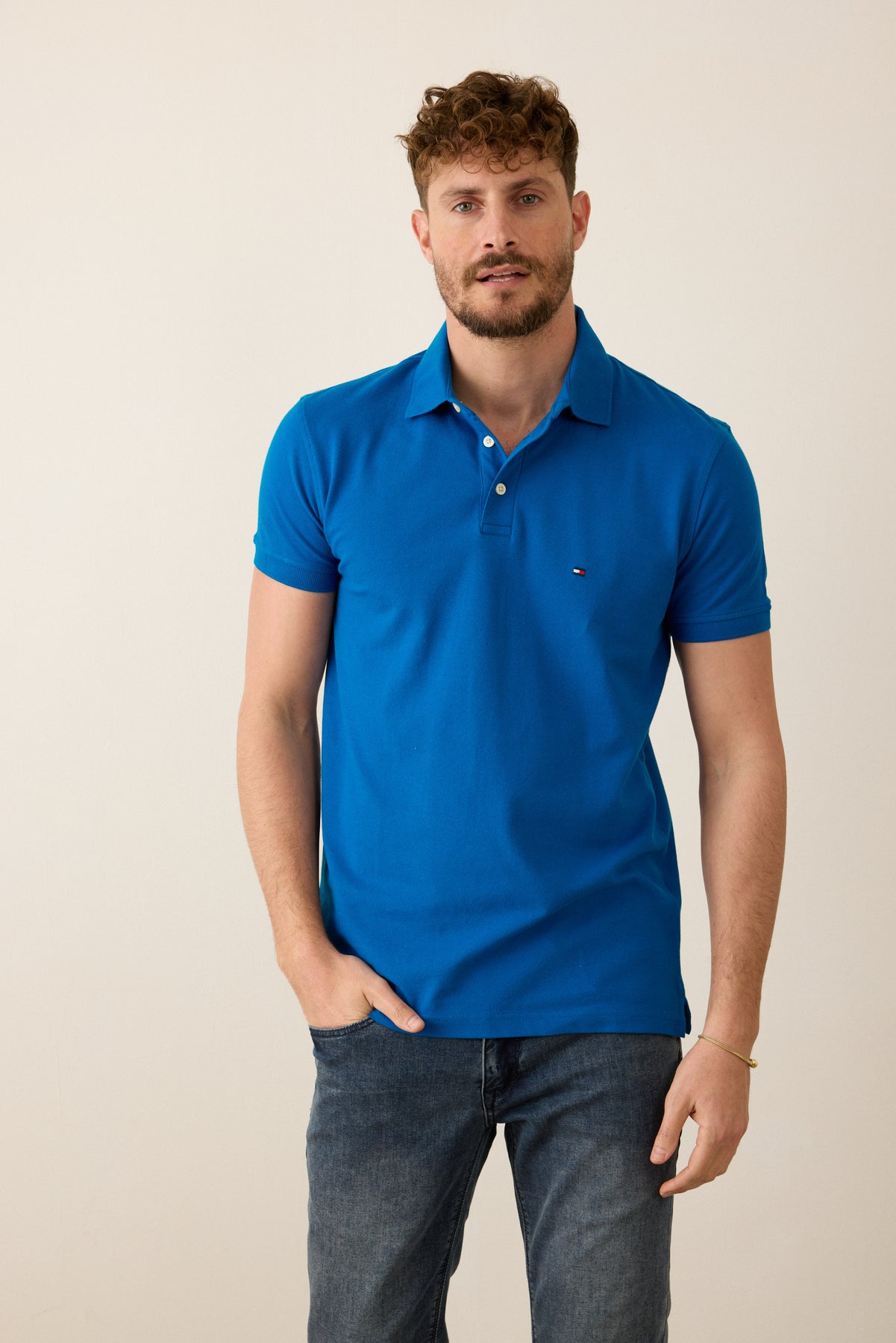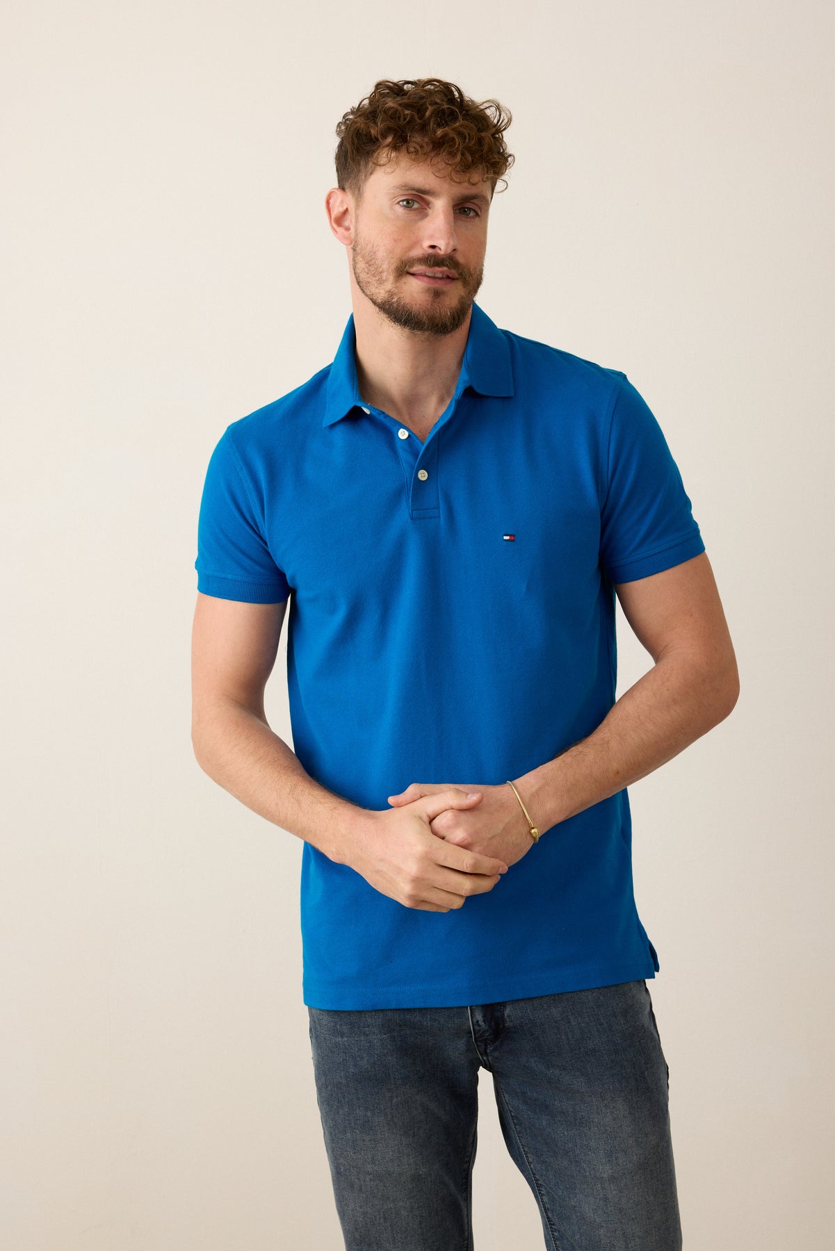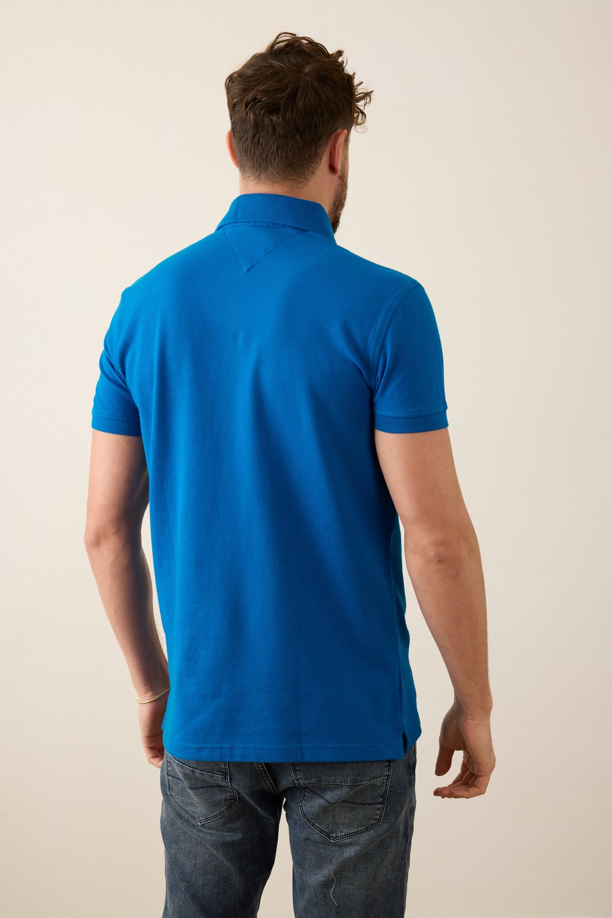 חולצת פולו שרוול קצר בגזרת SLIM - כחול.