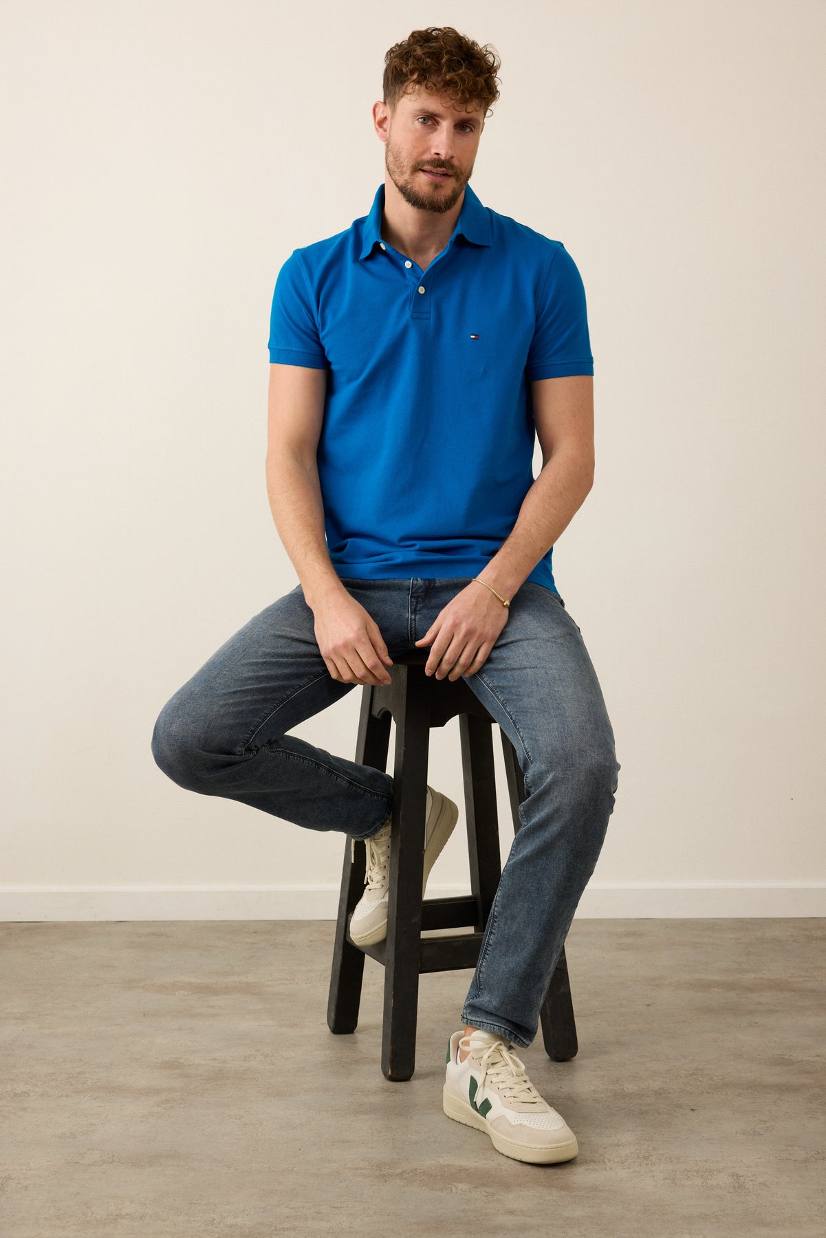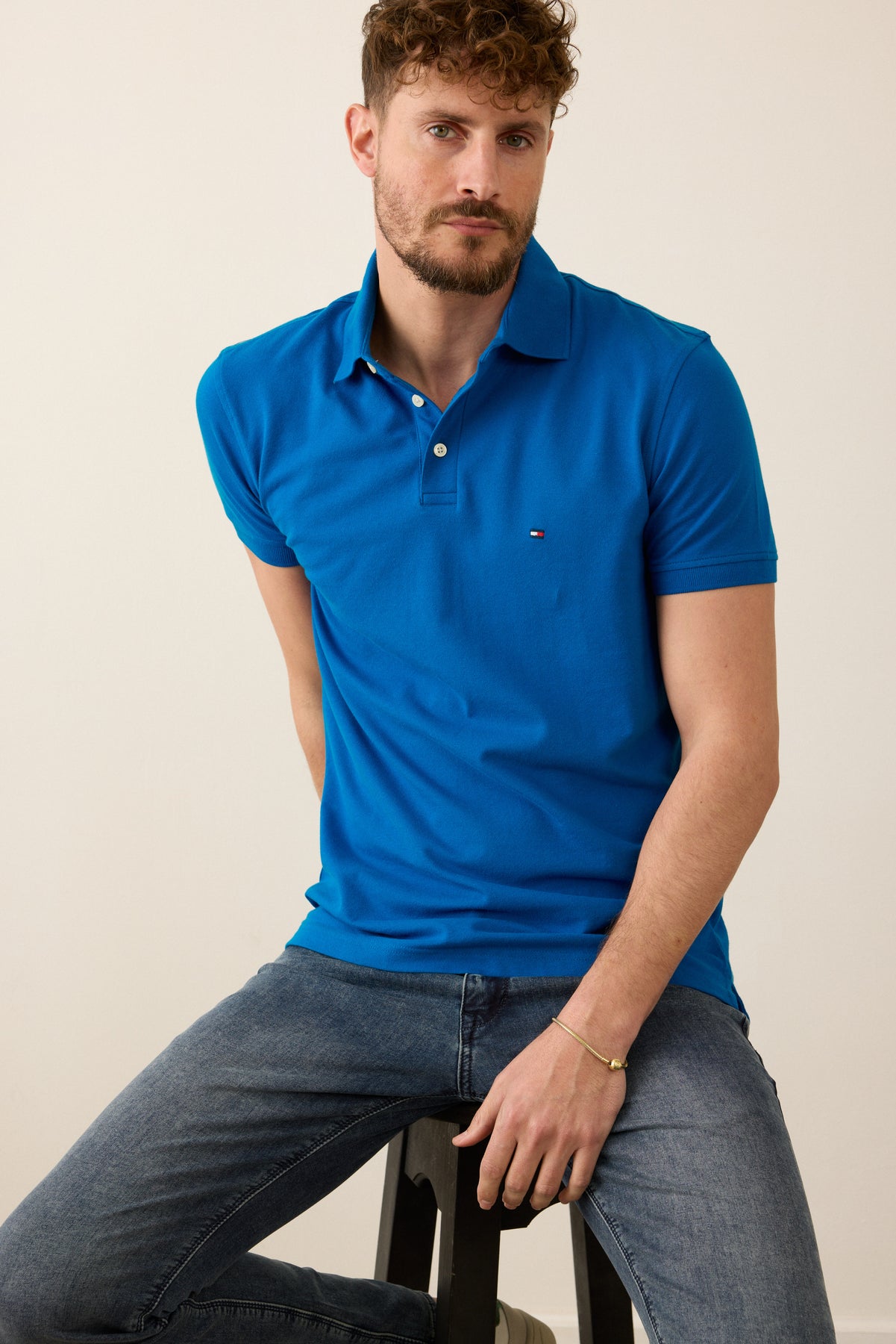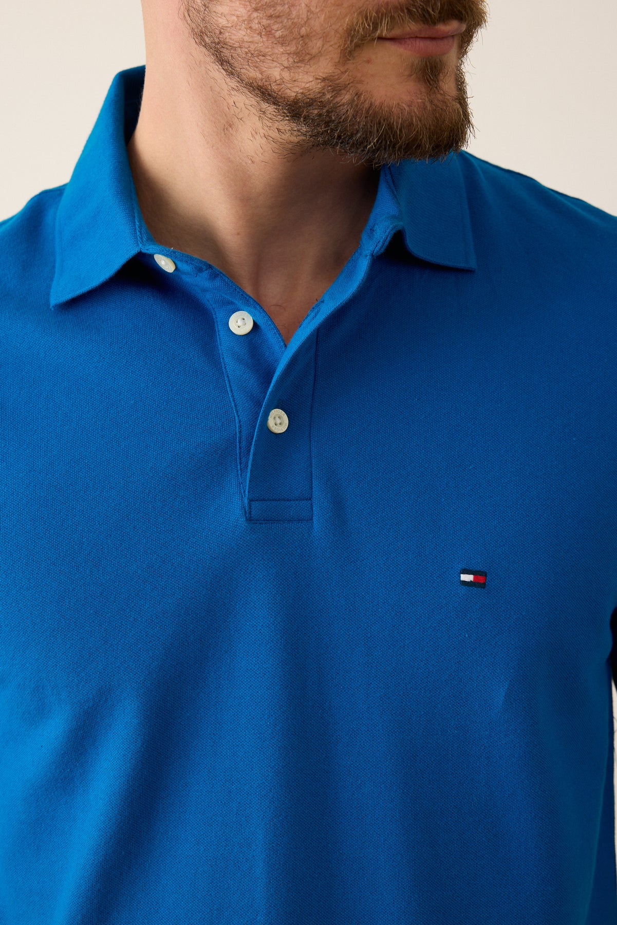 חולצת פולו שרוול קצר בגזרת SLIM - כחול.