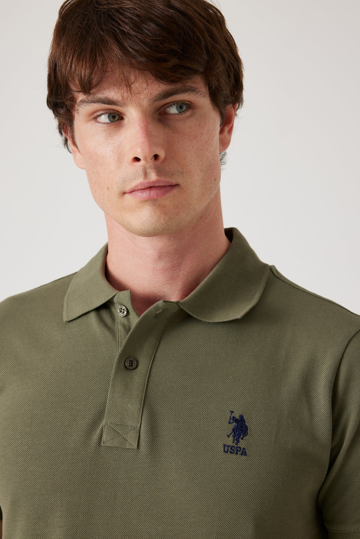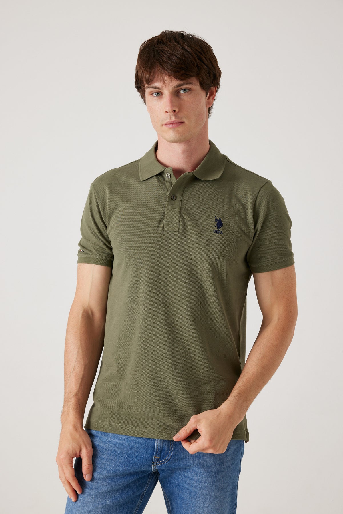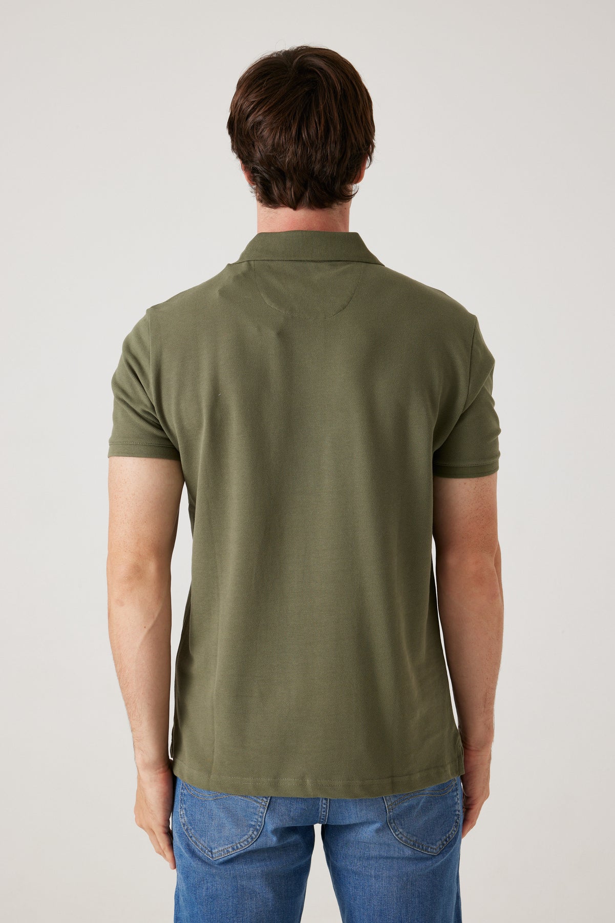 חולצת פולו שרוול קצר בגזרת REGULAR- חאקי הרכב הבד: 49% כותנה 51% פוליאסטר
